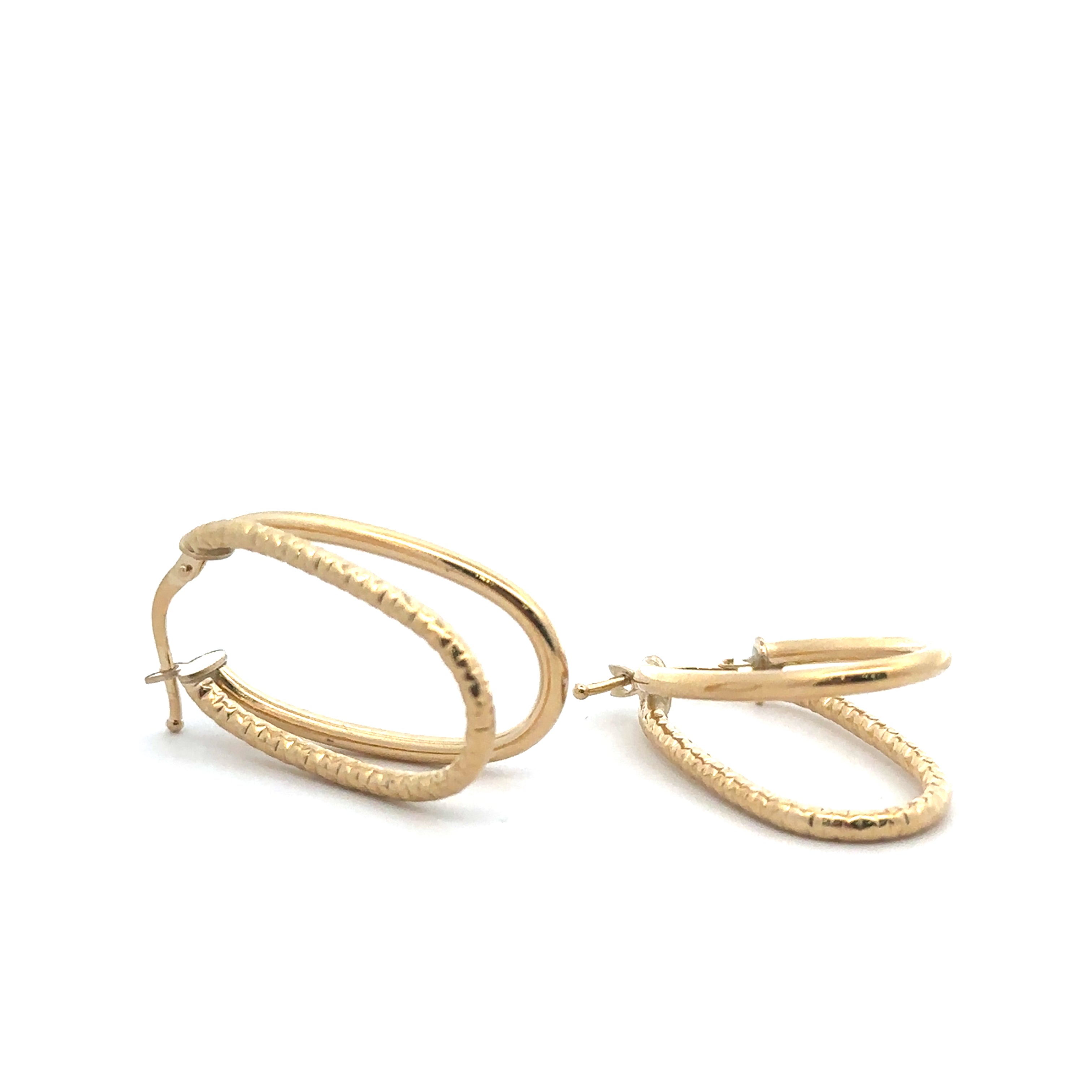 Experience the thrill of taking risks with our 10k Yellow Gold Elongated Double Hoops. Their daring design will elevate any outfit and make a bold statement. These hoops are made of high quality 10k yellow gold, ensuring a lasting shine and luxurious look. Dare to be different with our elongated double hoops!
