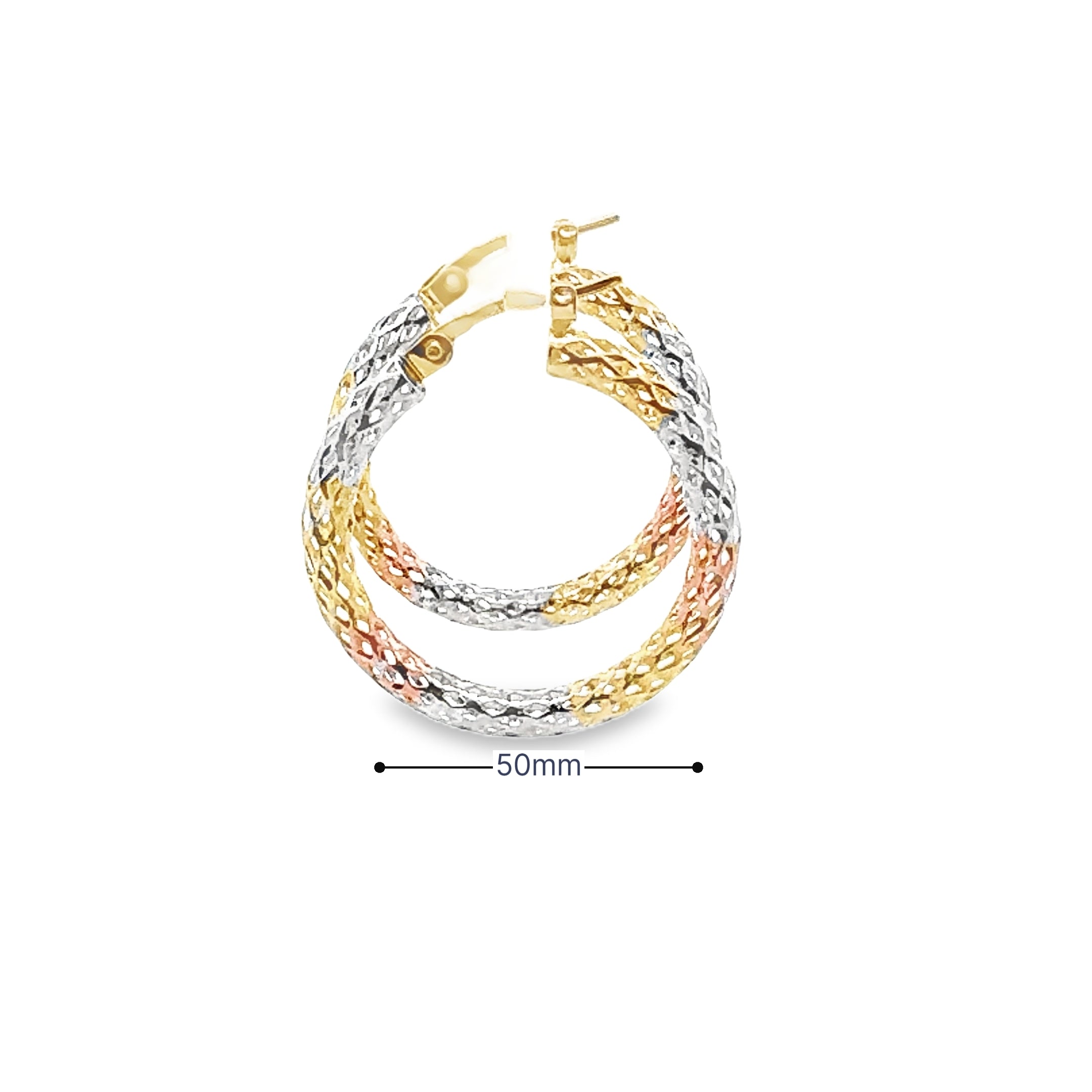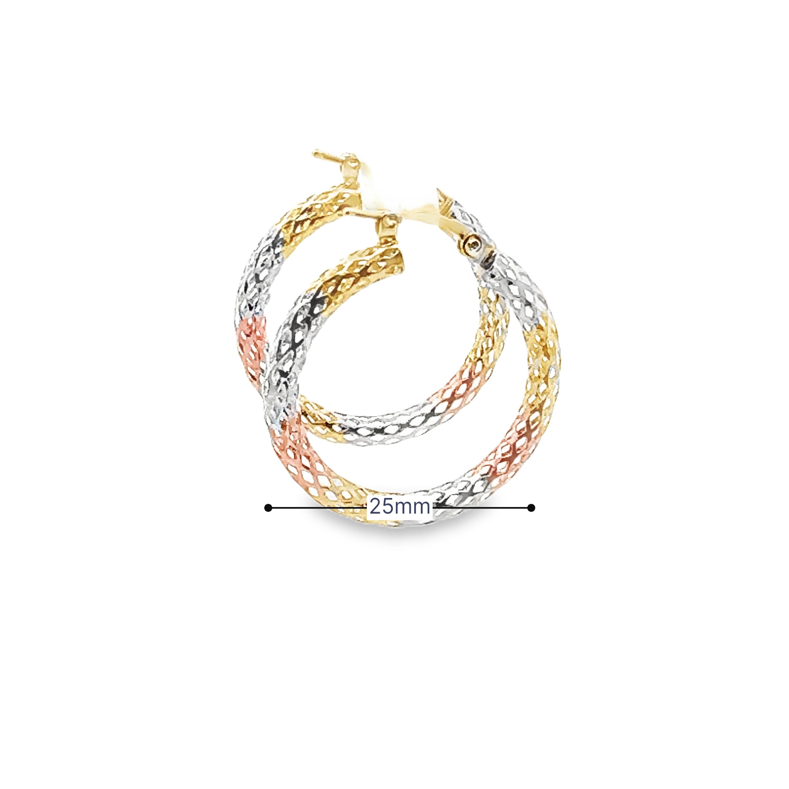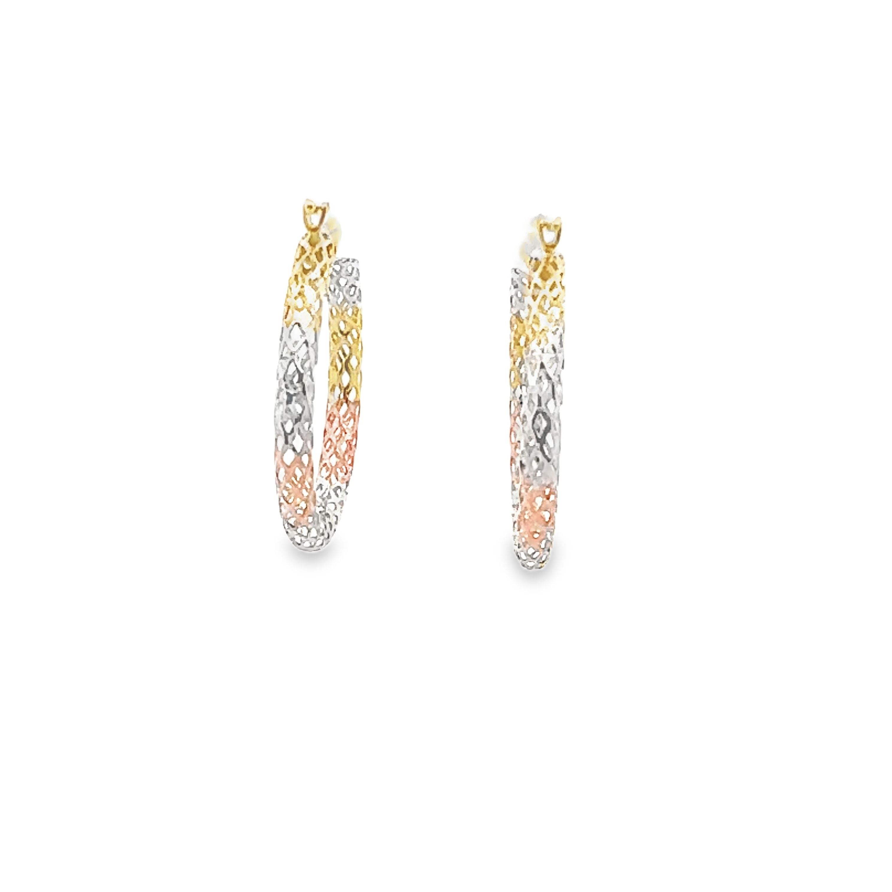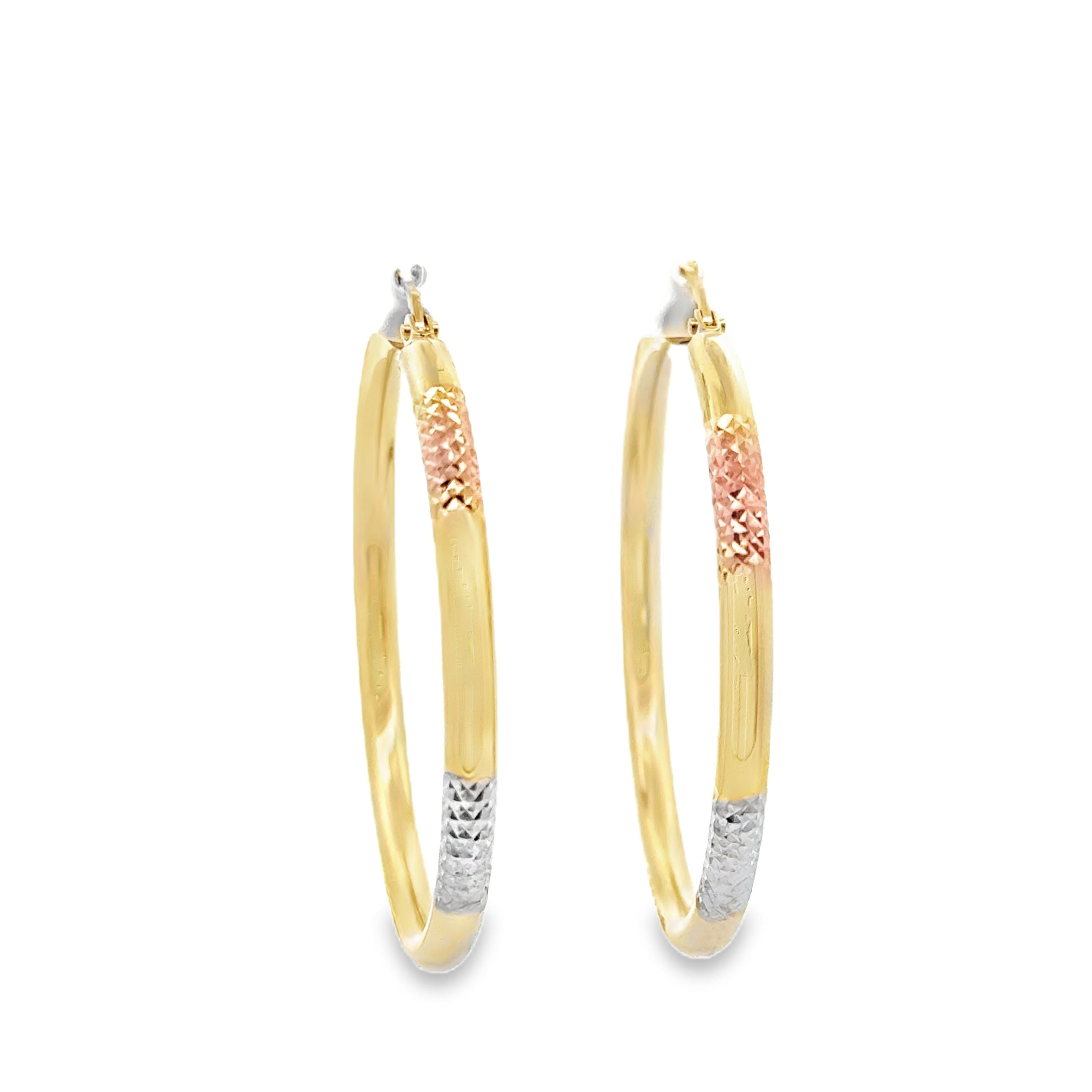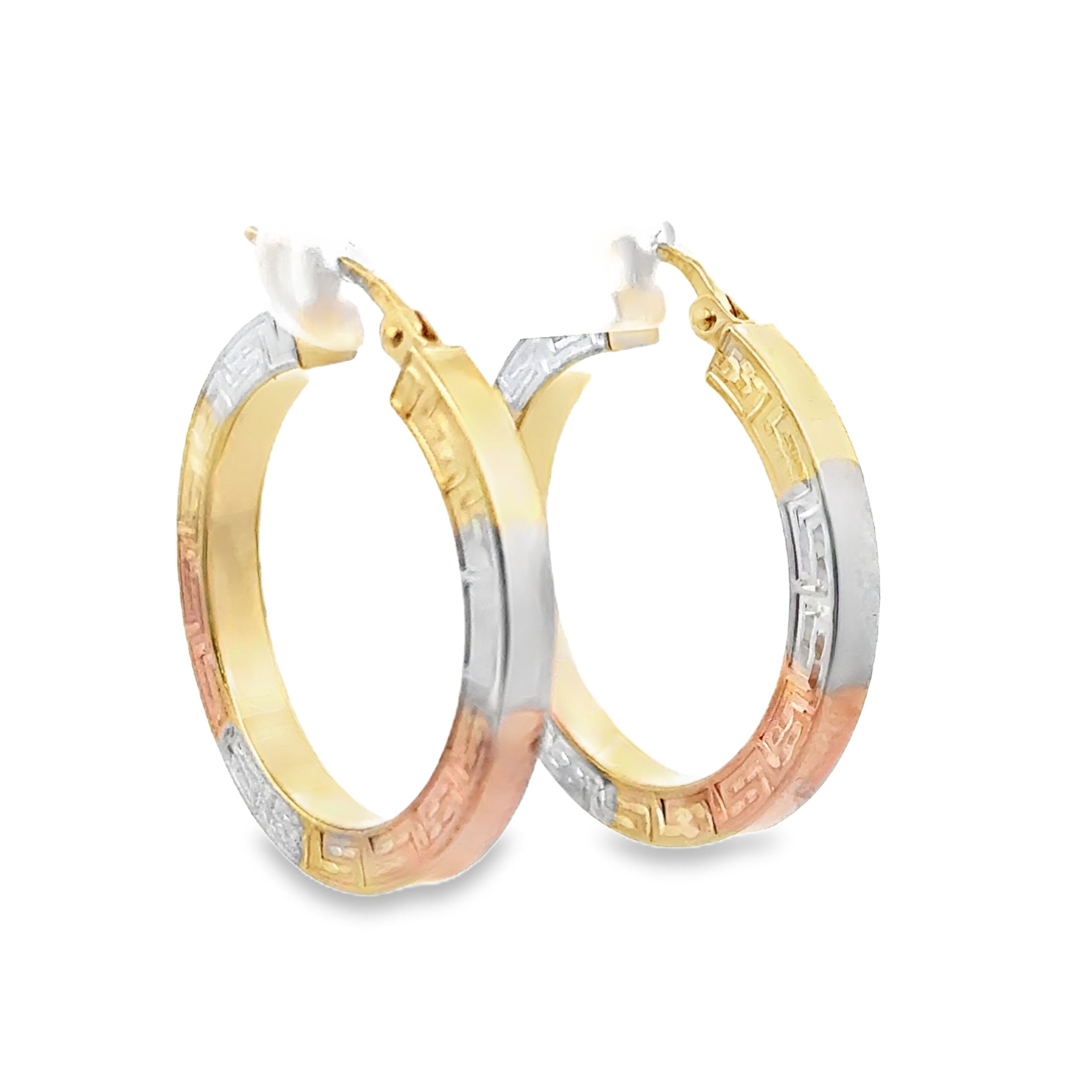 10K Gold 3 Color Medusa Hoop Earrings 25mm