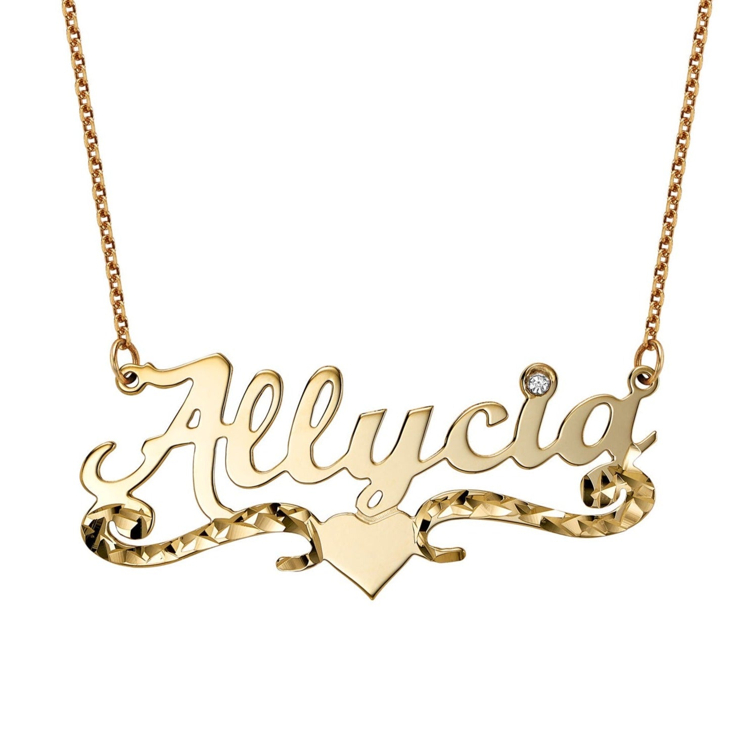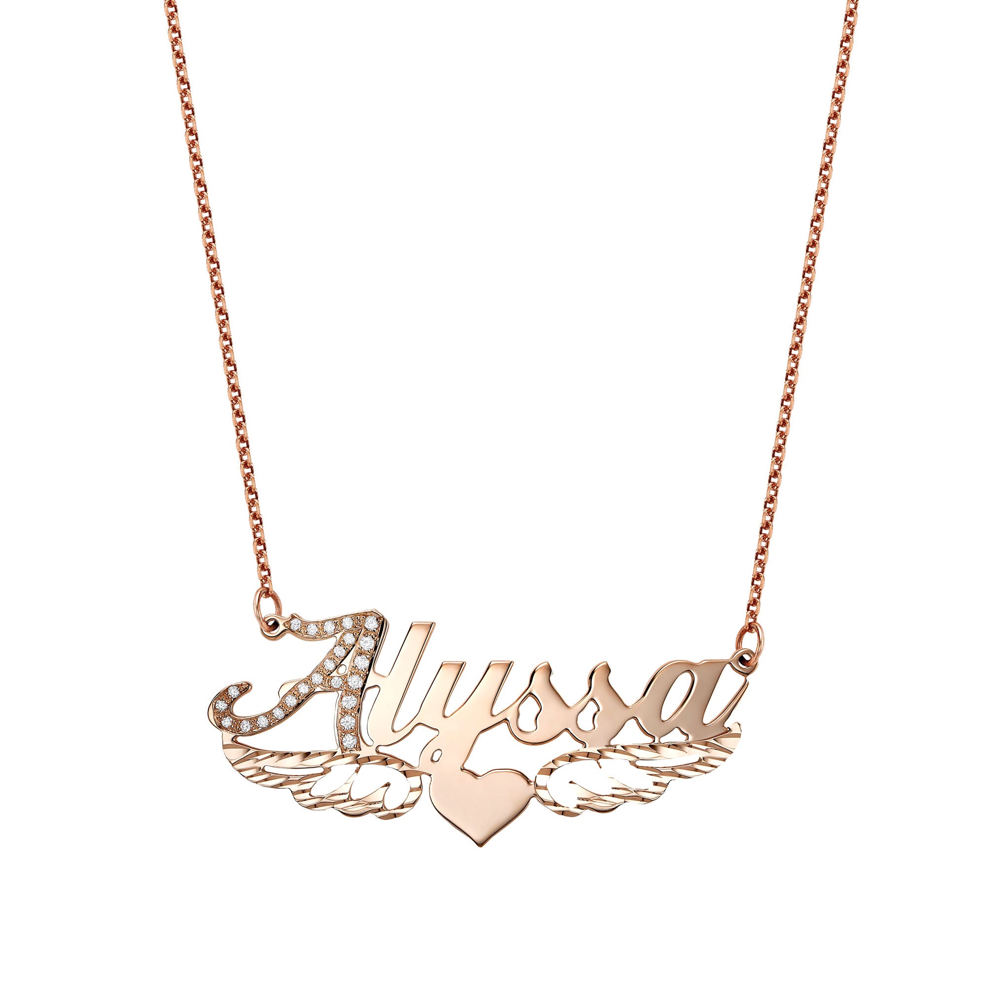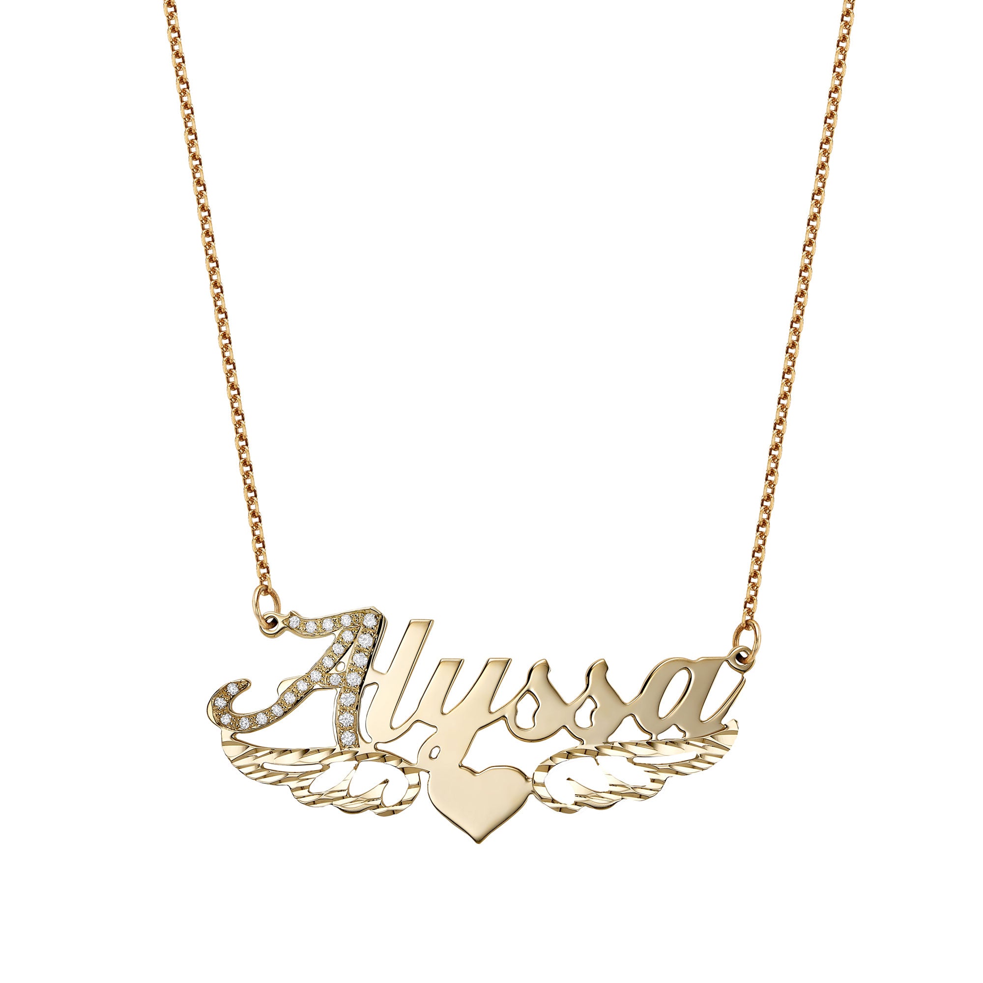 Angel Heart Name Necklace Solid Gold