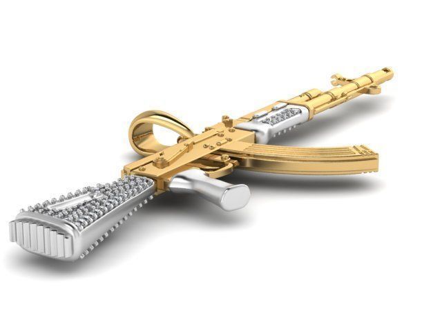 AK47 Machine Gun 14K Gold Men Pendant