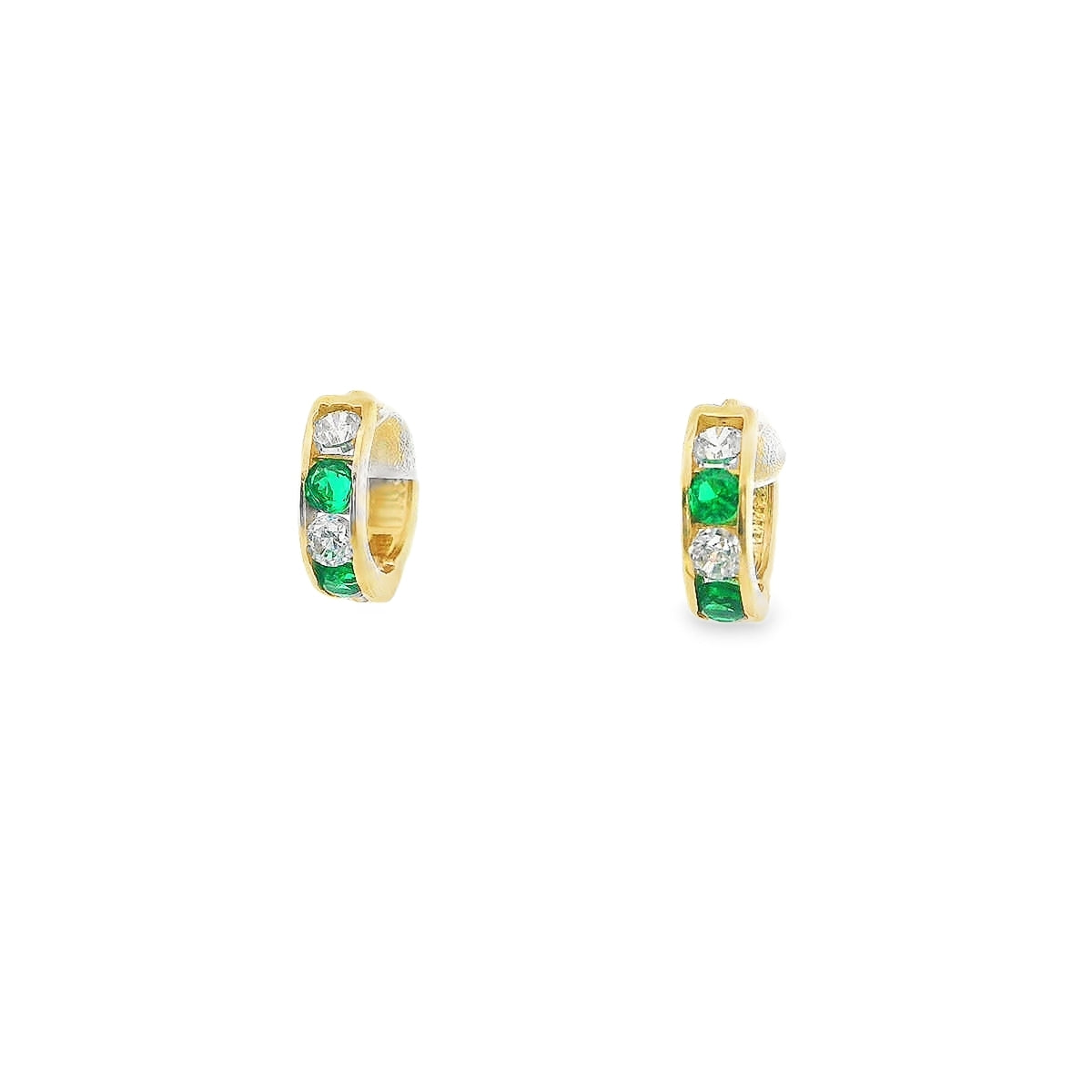 Baby Green CZ Huggies Earrings 10K Gold