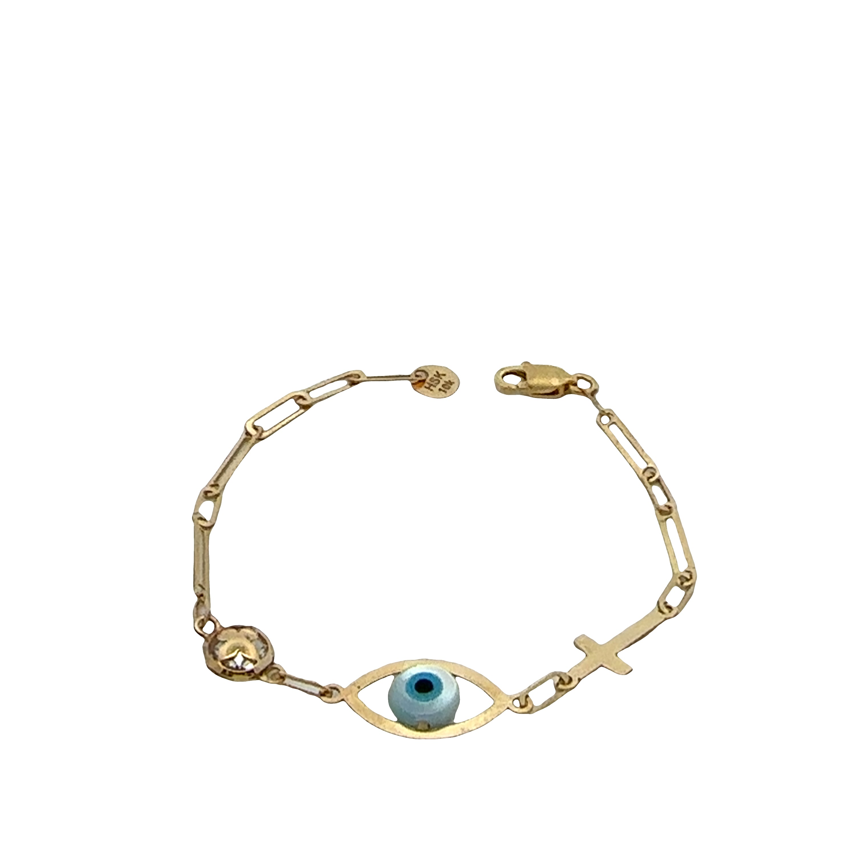 Baby Bracelet 10K Blue Eye & Cross link