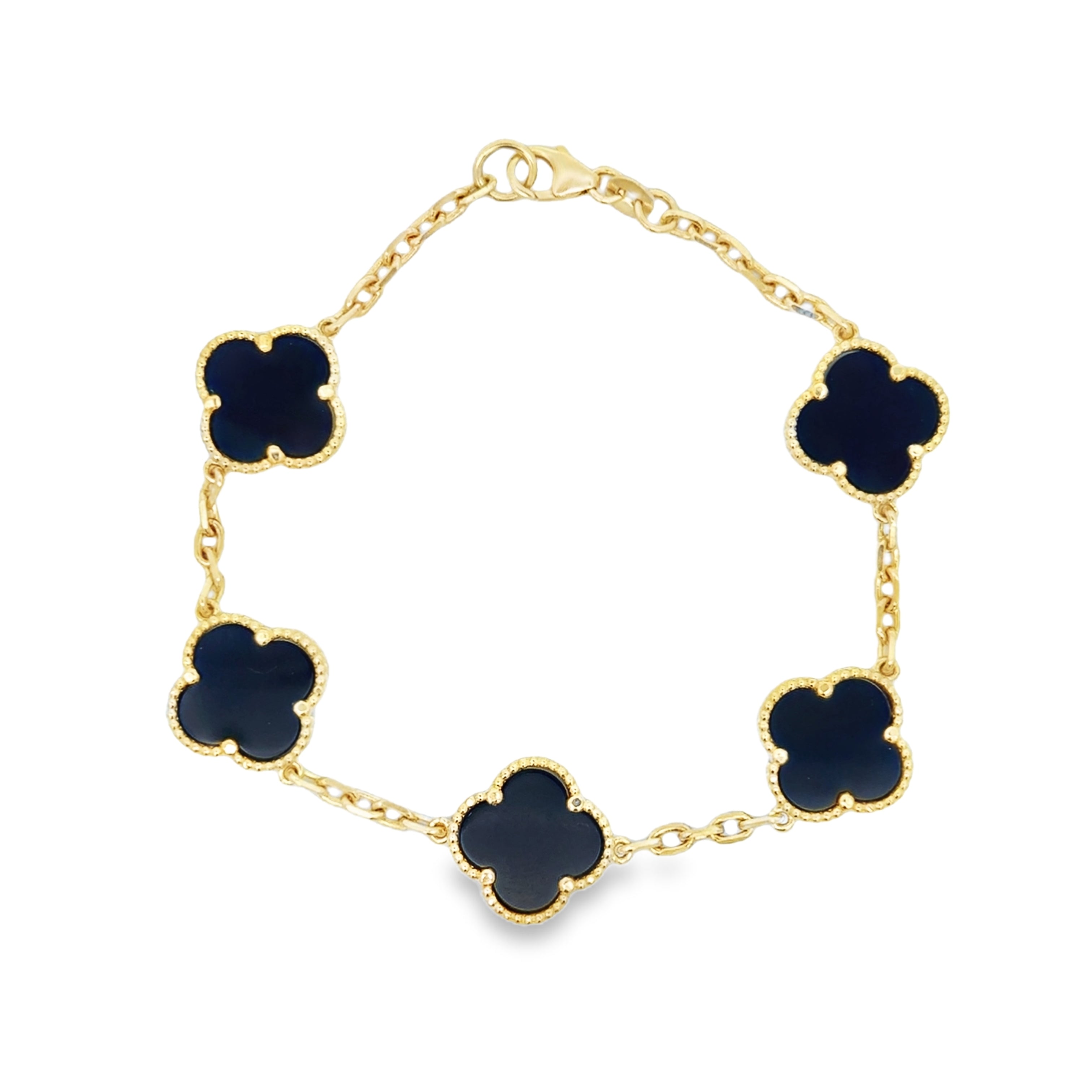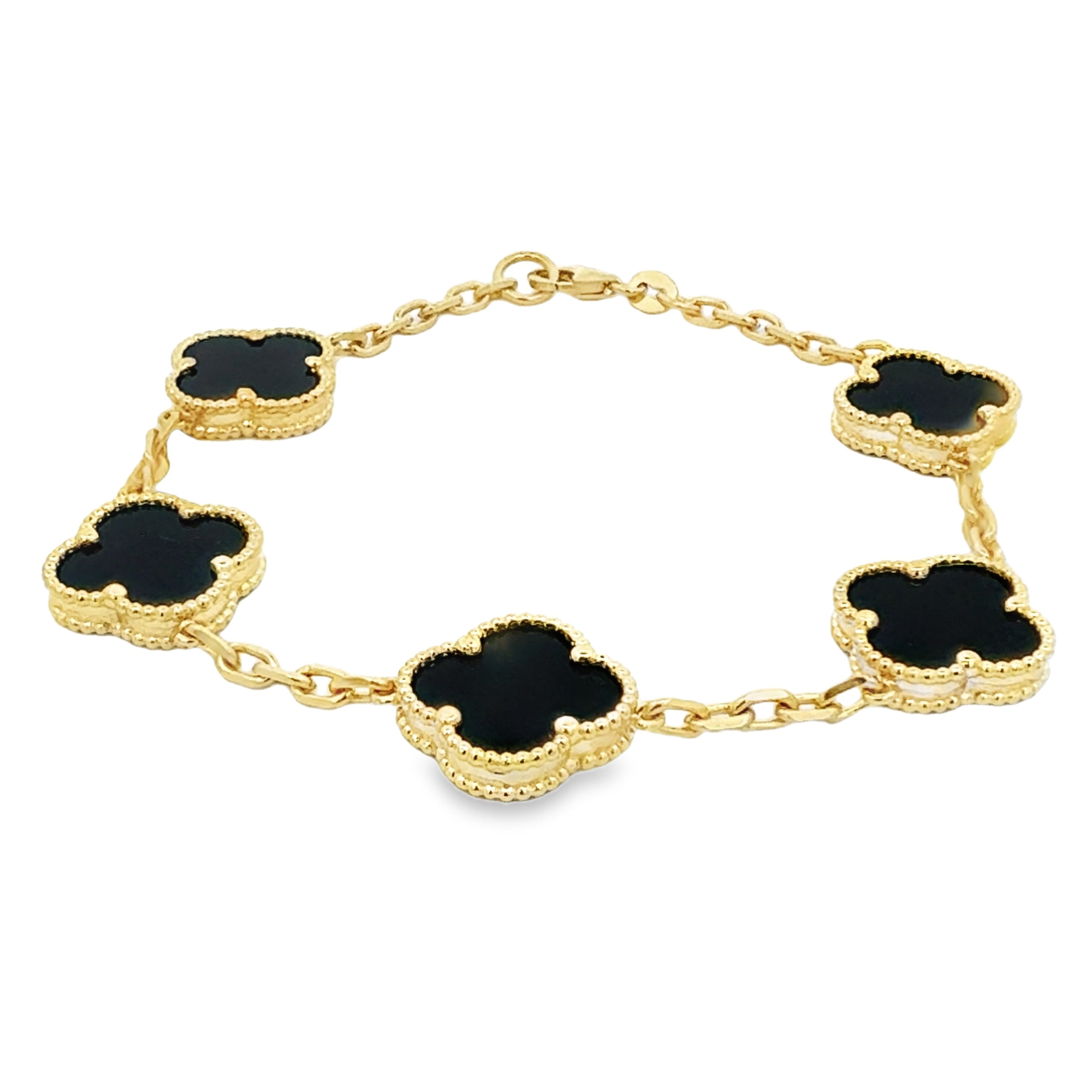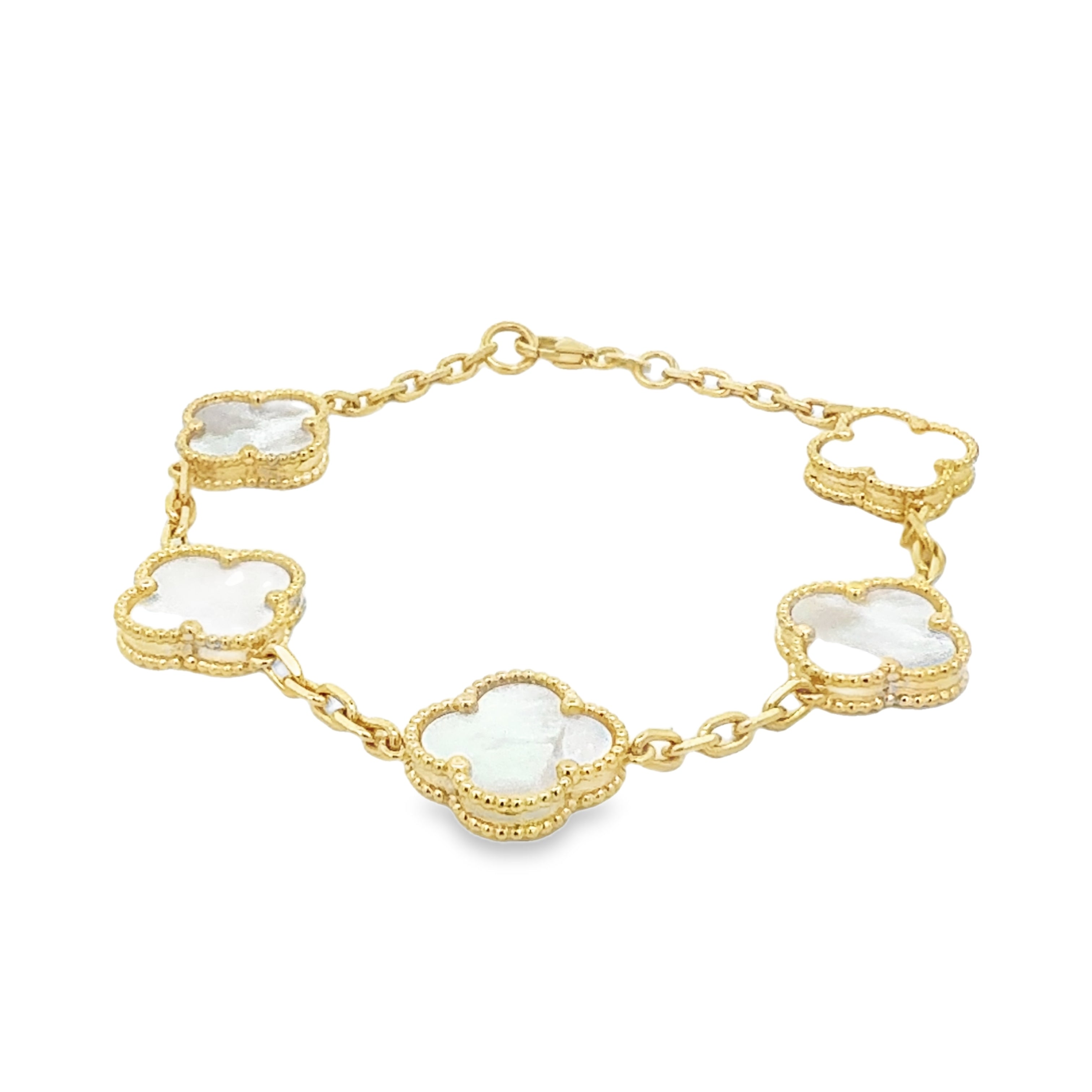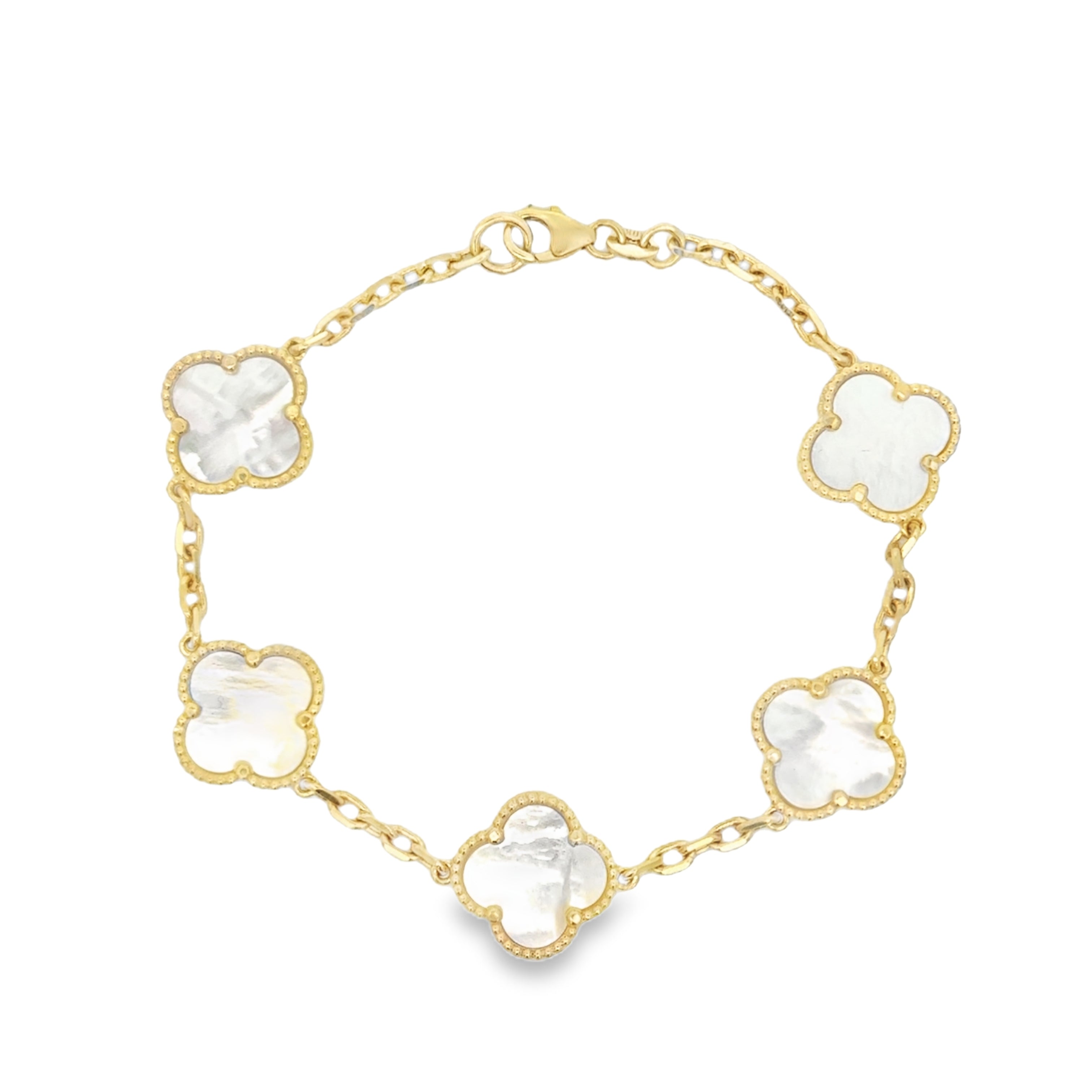 10K Gold Large White Mother of Pearl Clover Bracelet