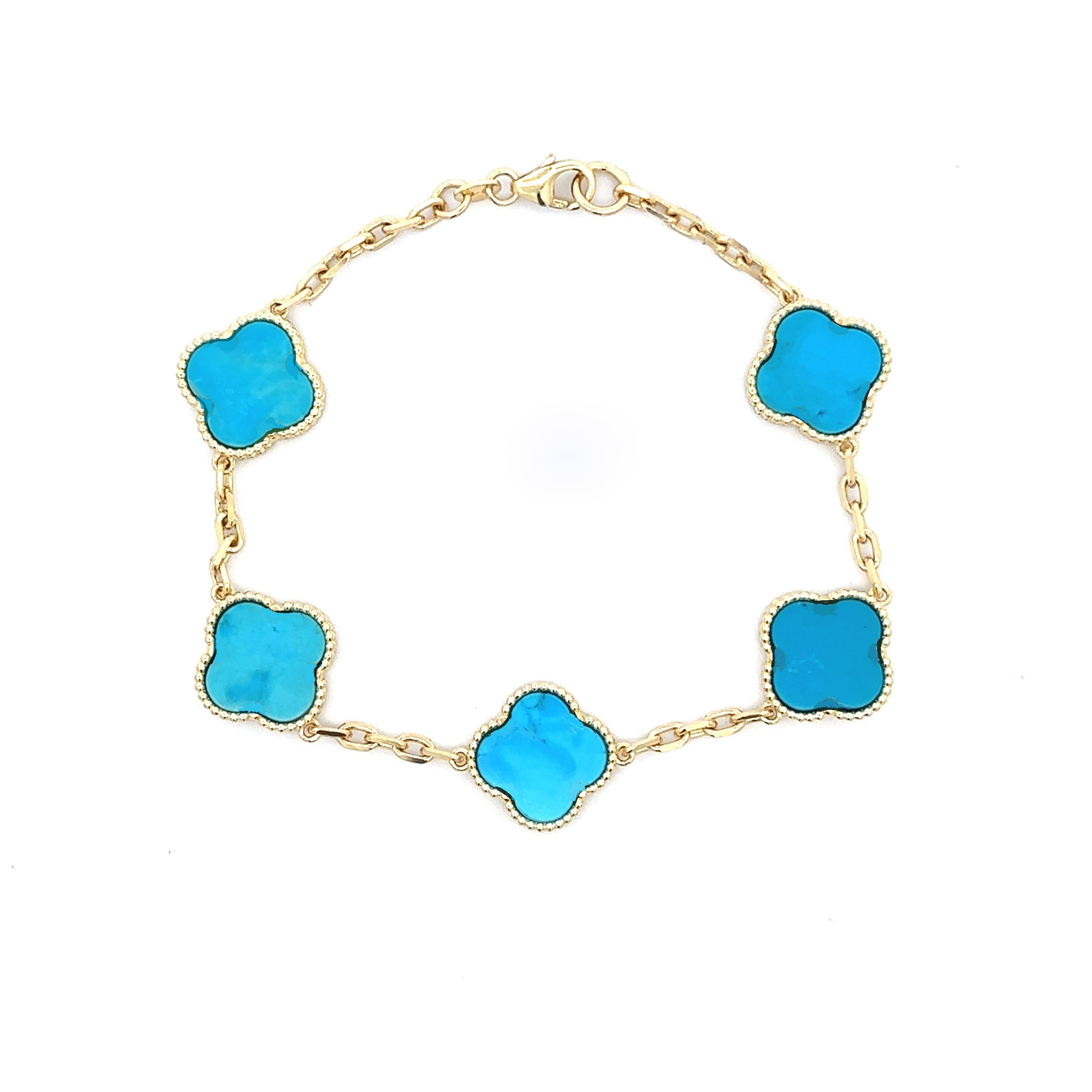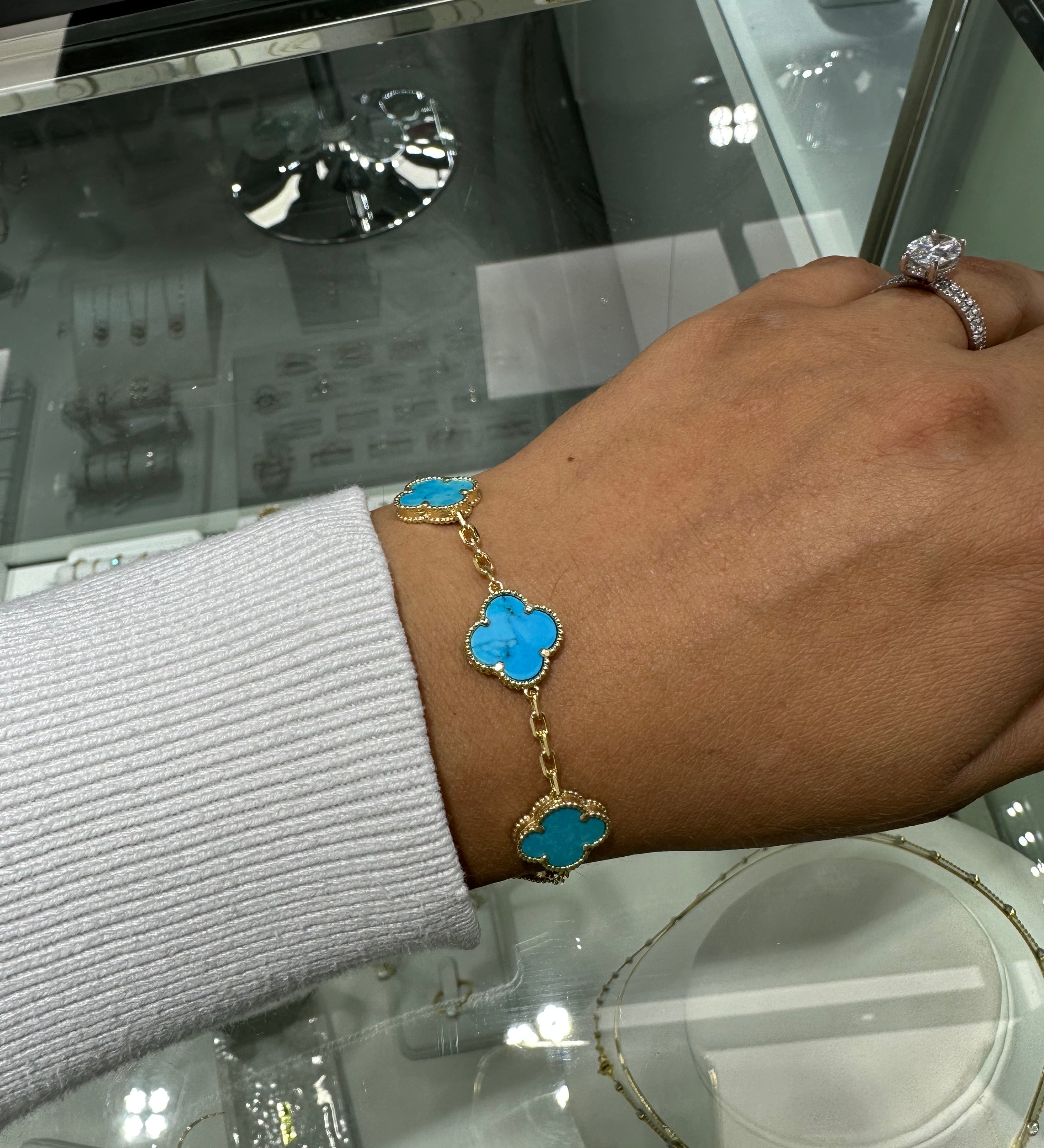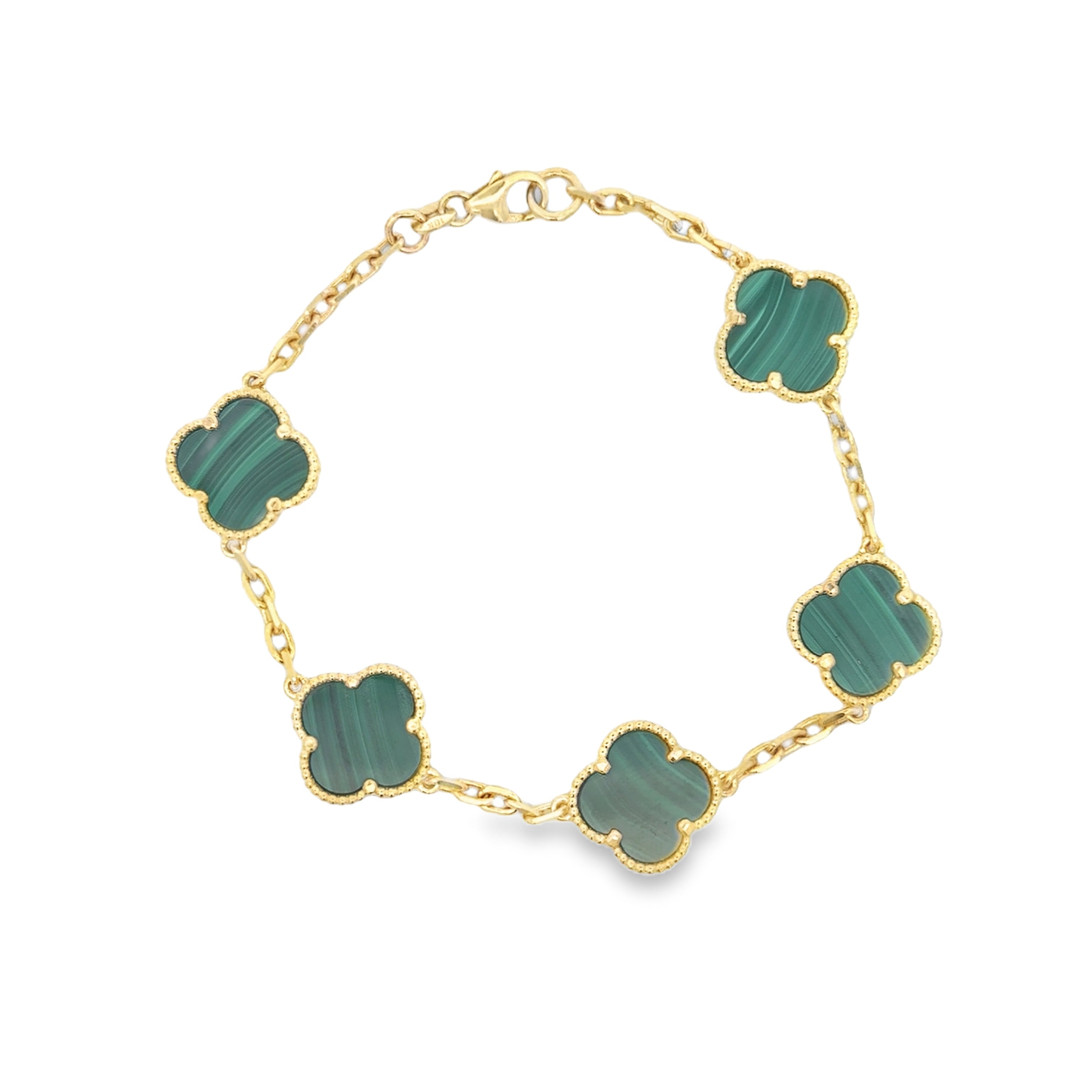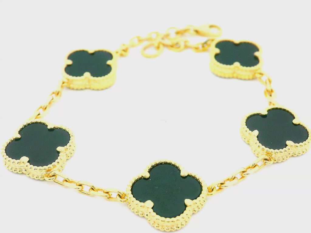 10K Gold Large White Mother of Pearl Clover Bracelet