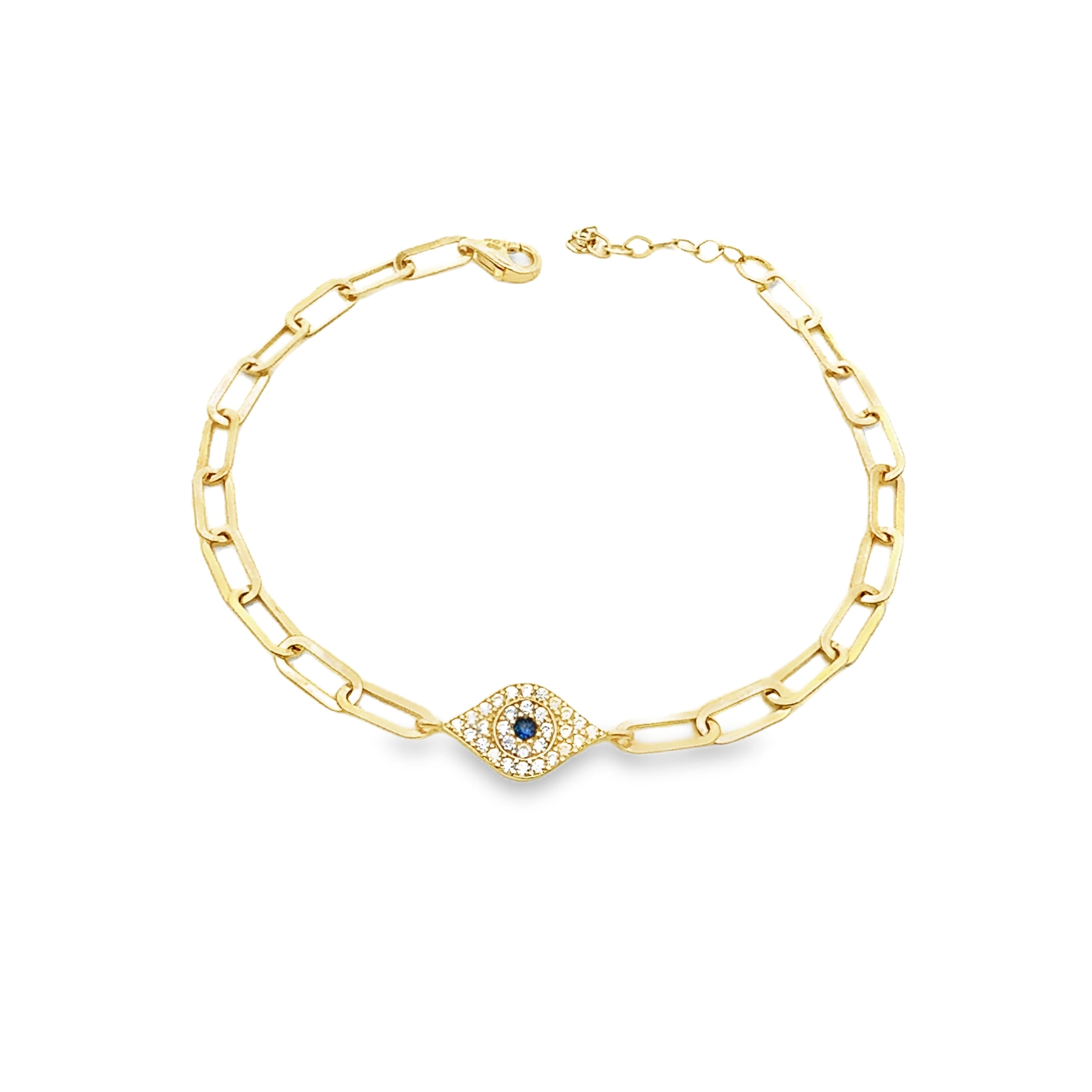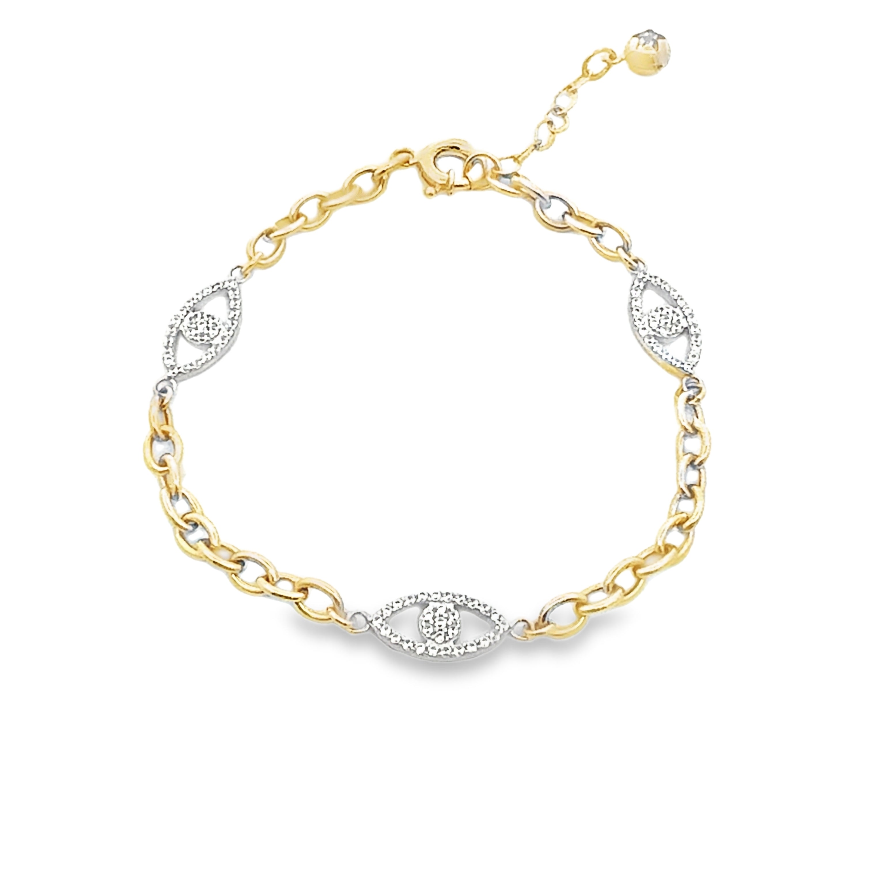 10K Gold Link Evil Eye CZ Bracelet- Ladies