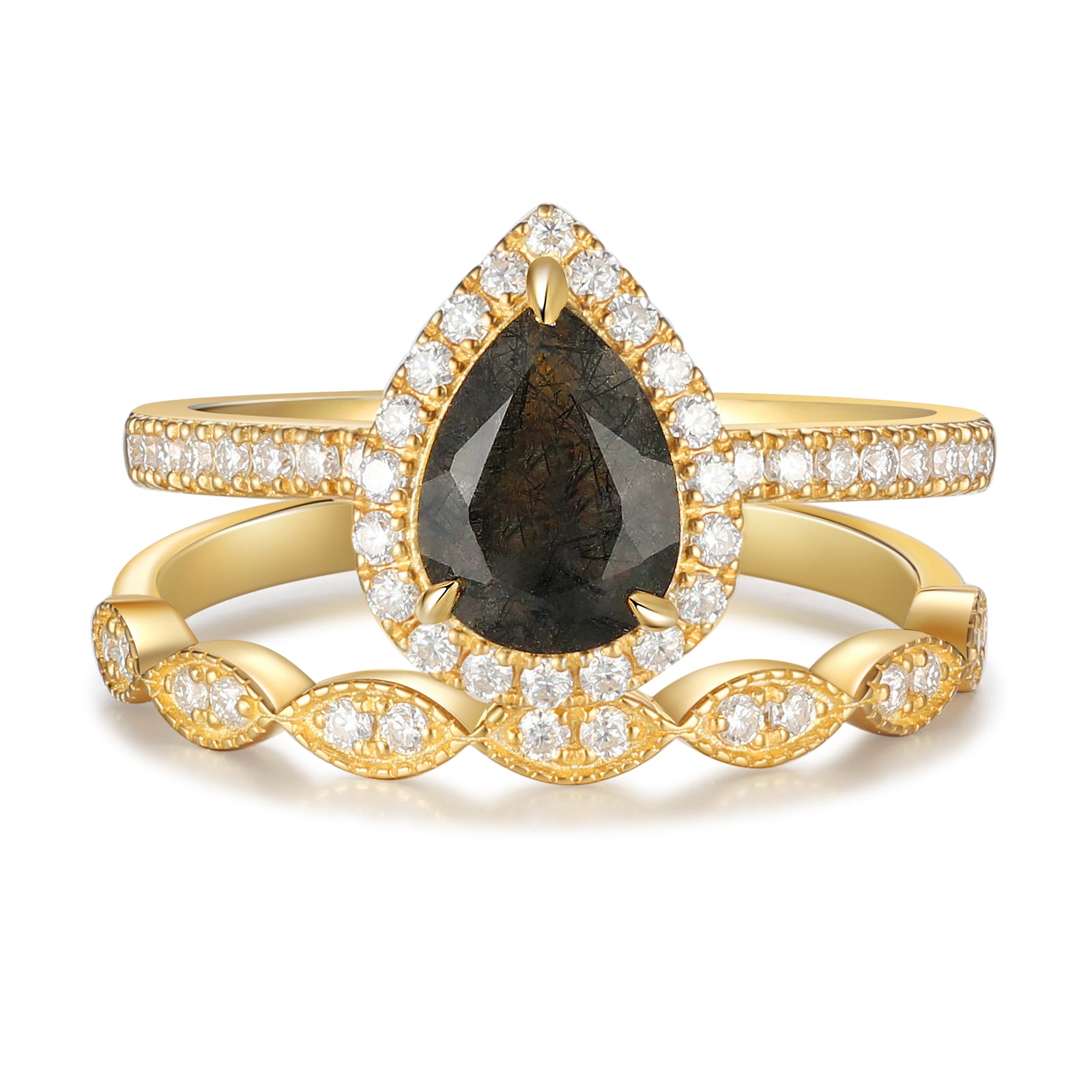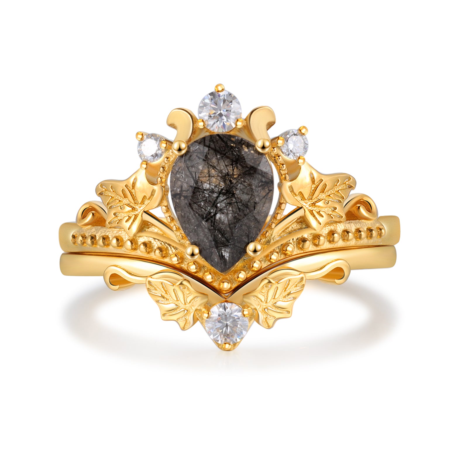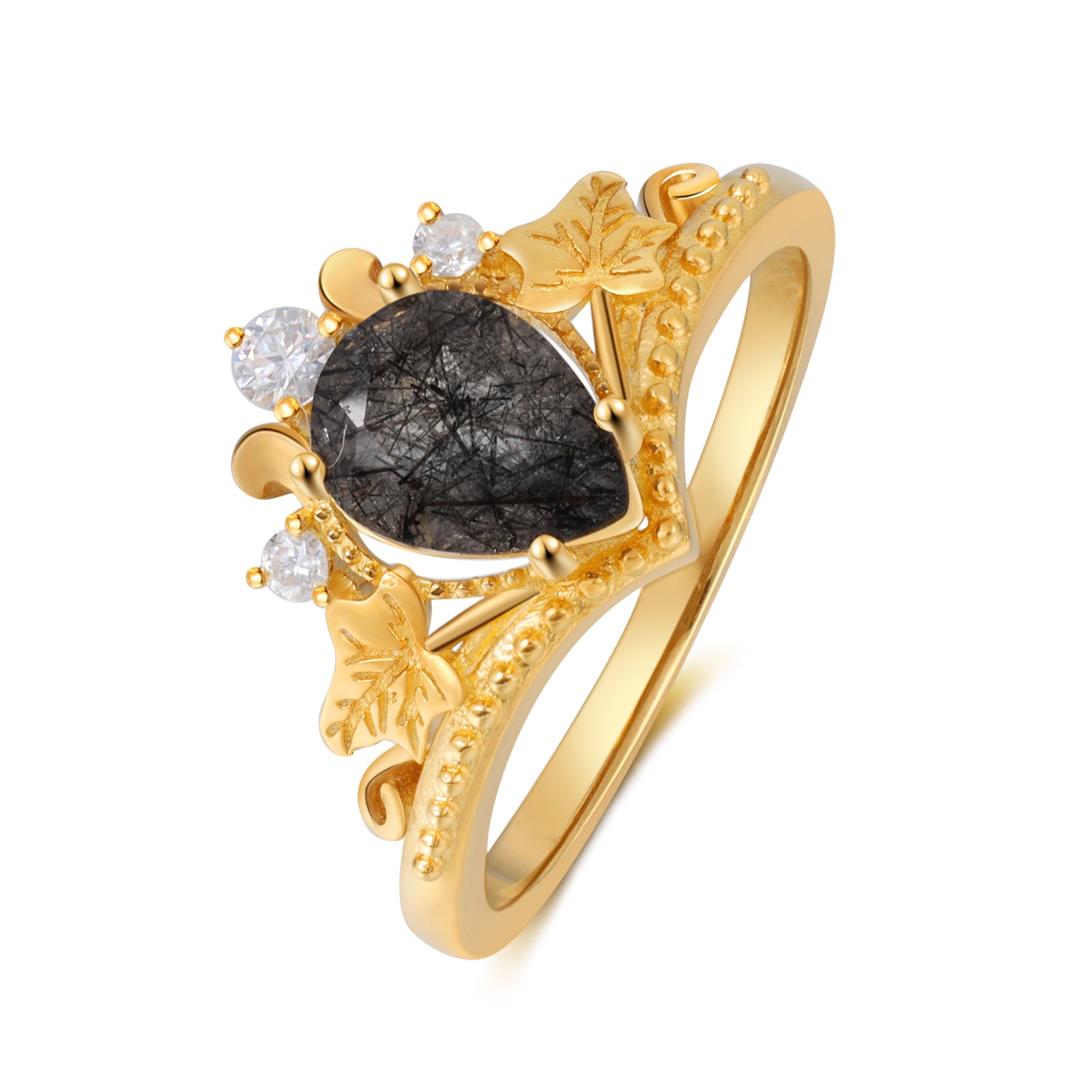 Natural Black Rutilated Quartz Ring 14 & 18K Gold