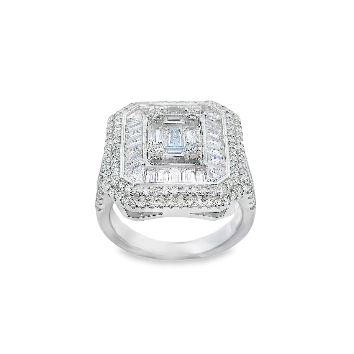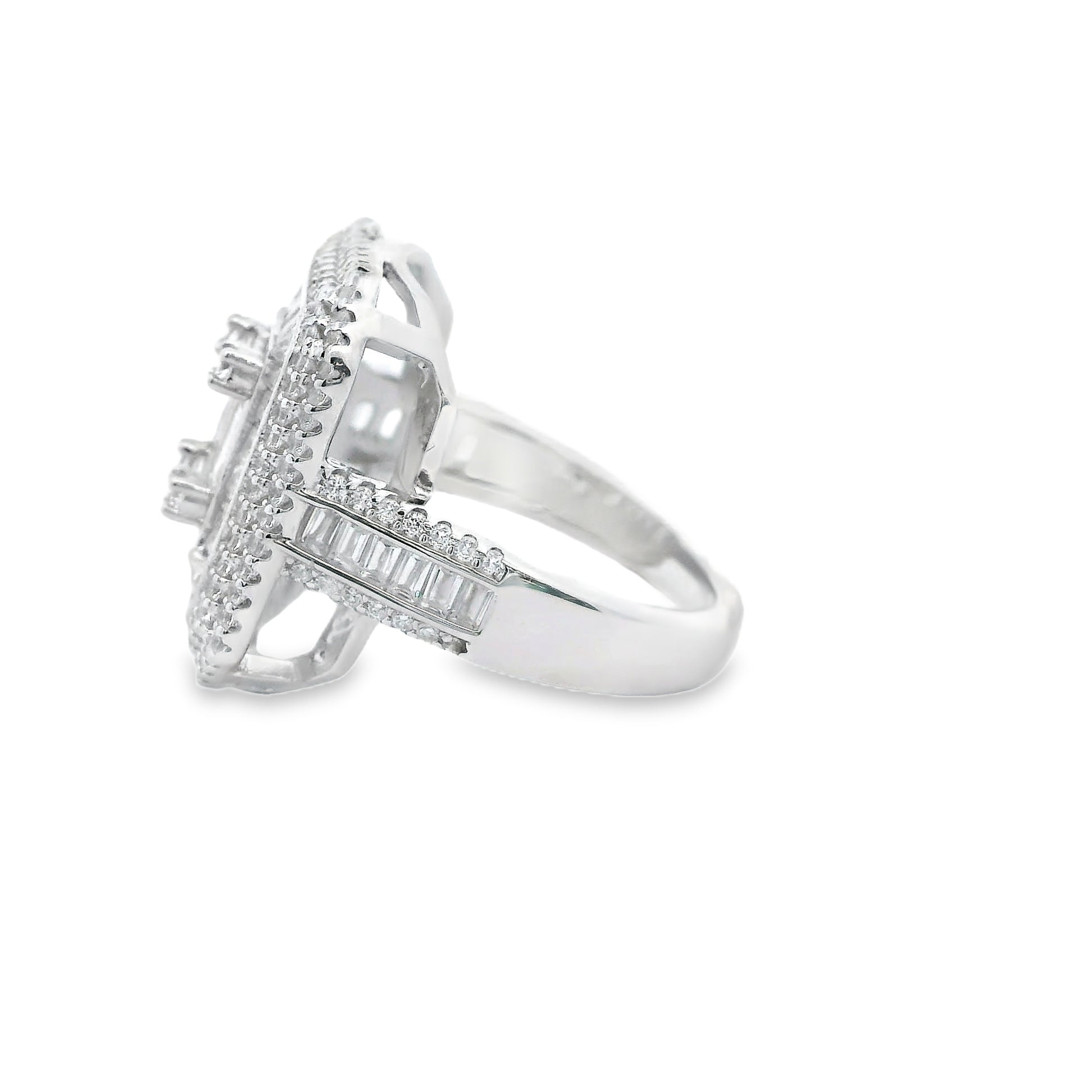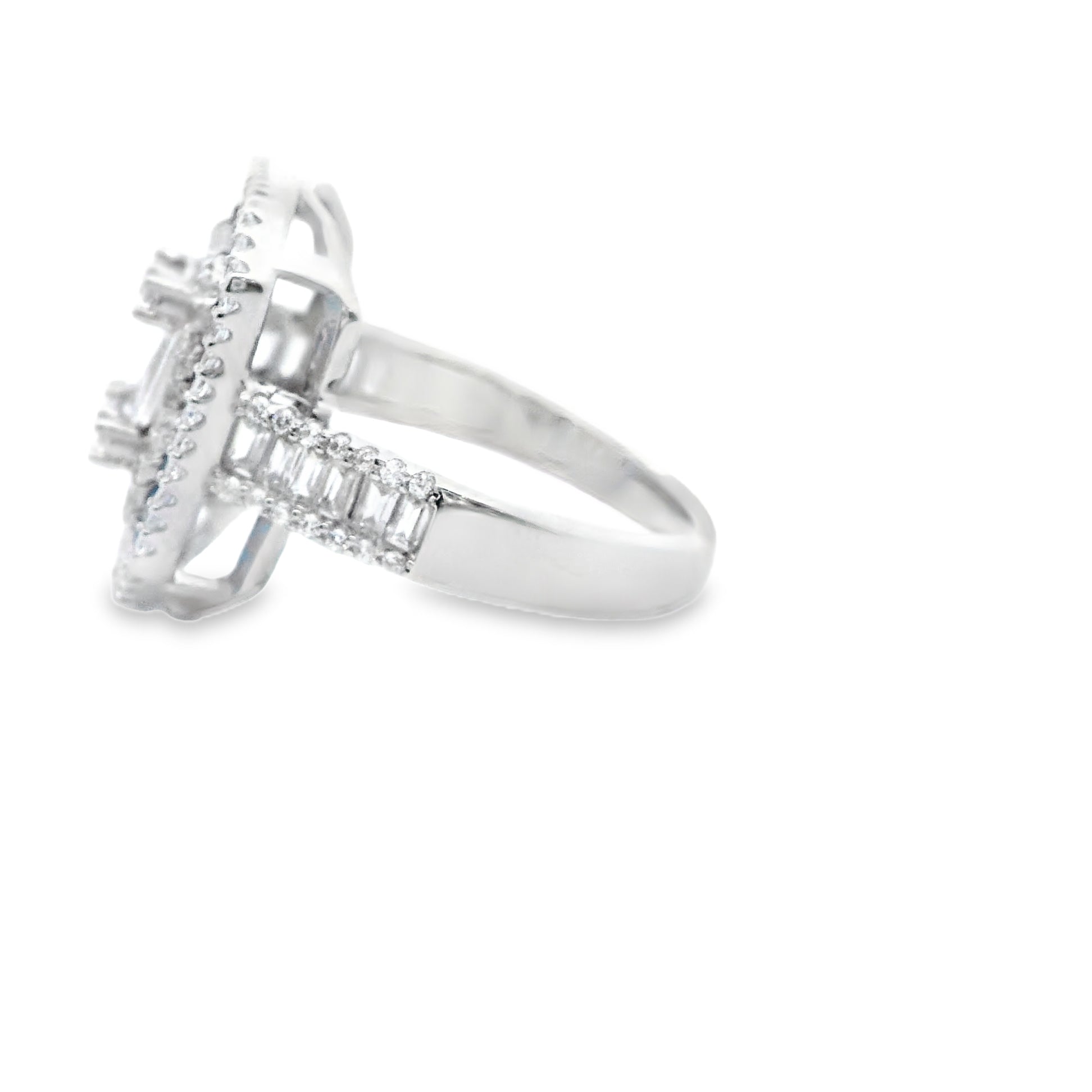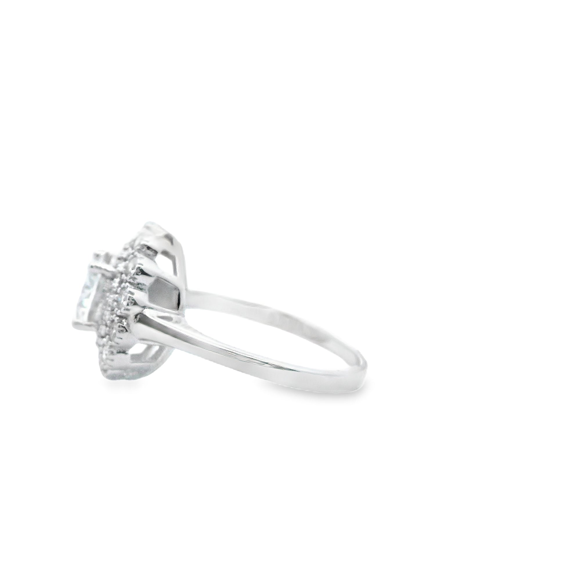 Women 925 Silver Rhodium Ring-Flower Moissanite