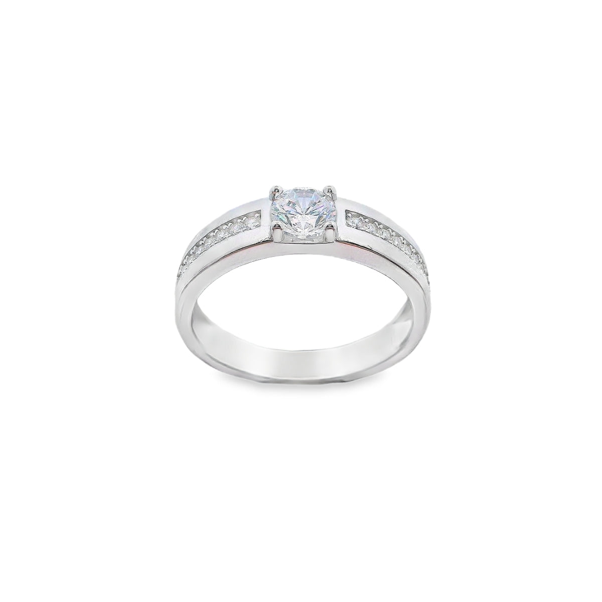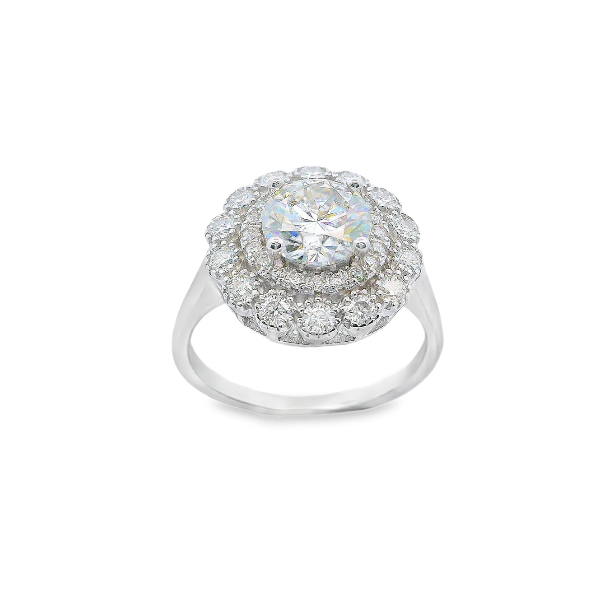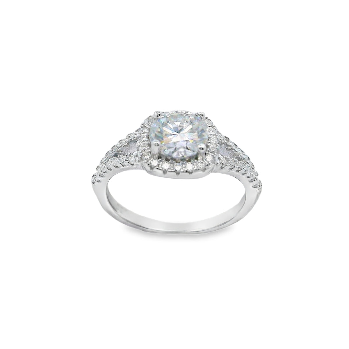 Women 925 Silver Rhodium Ring-Round Moissanite
