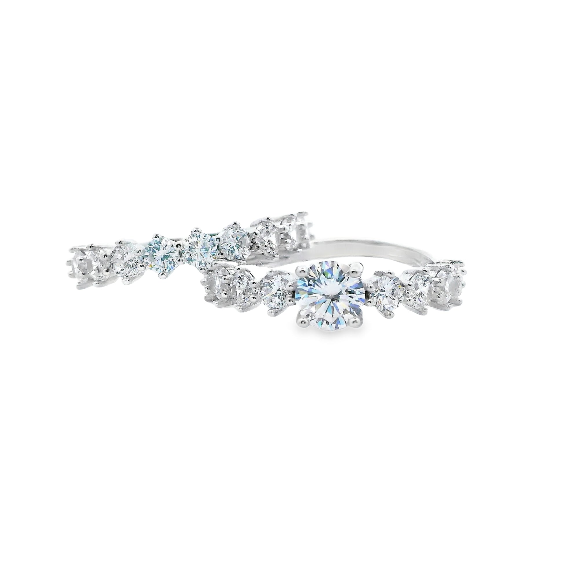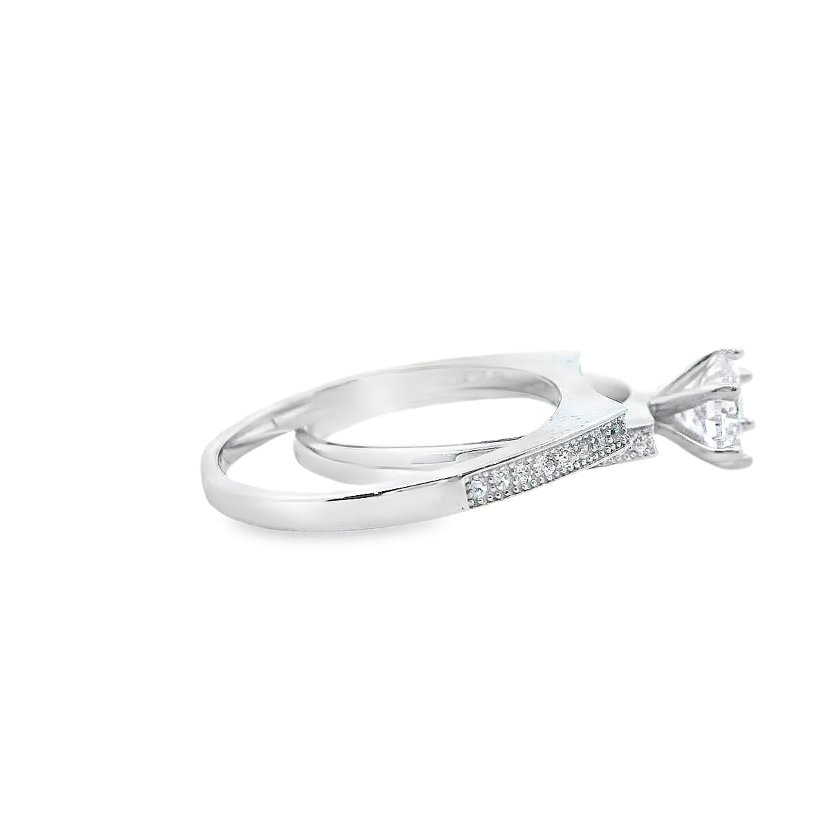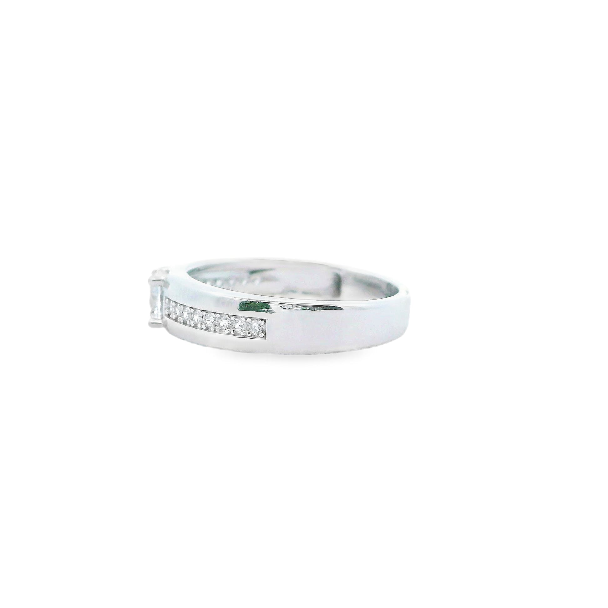 Women 925 Silver Rhodium Ring-Round Moissanite