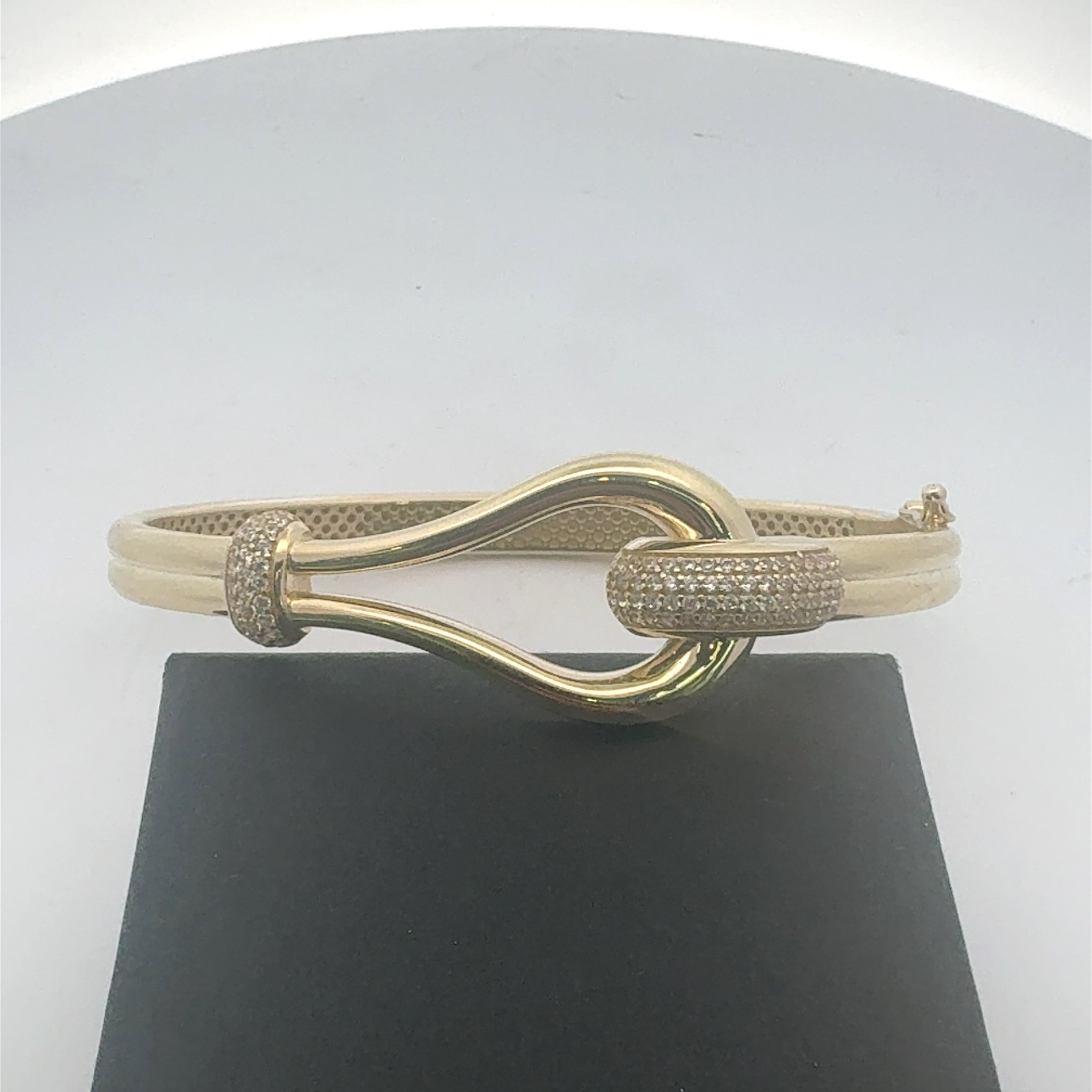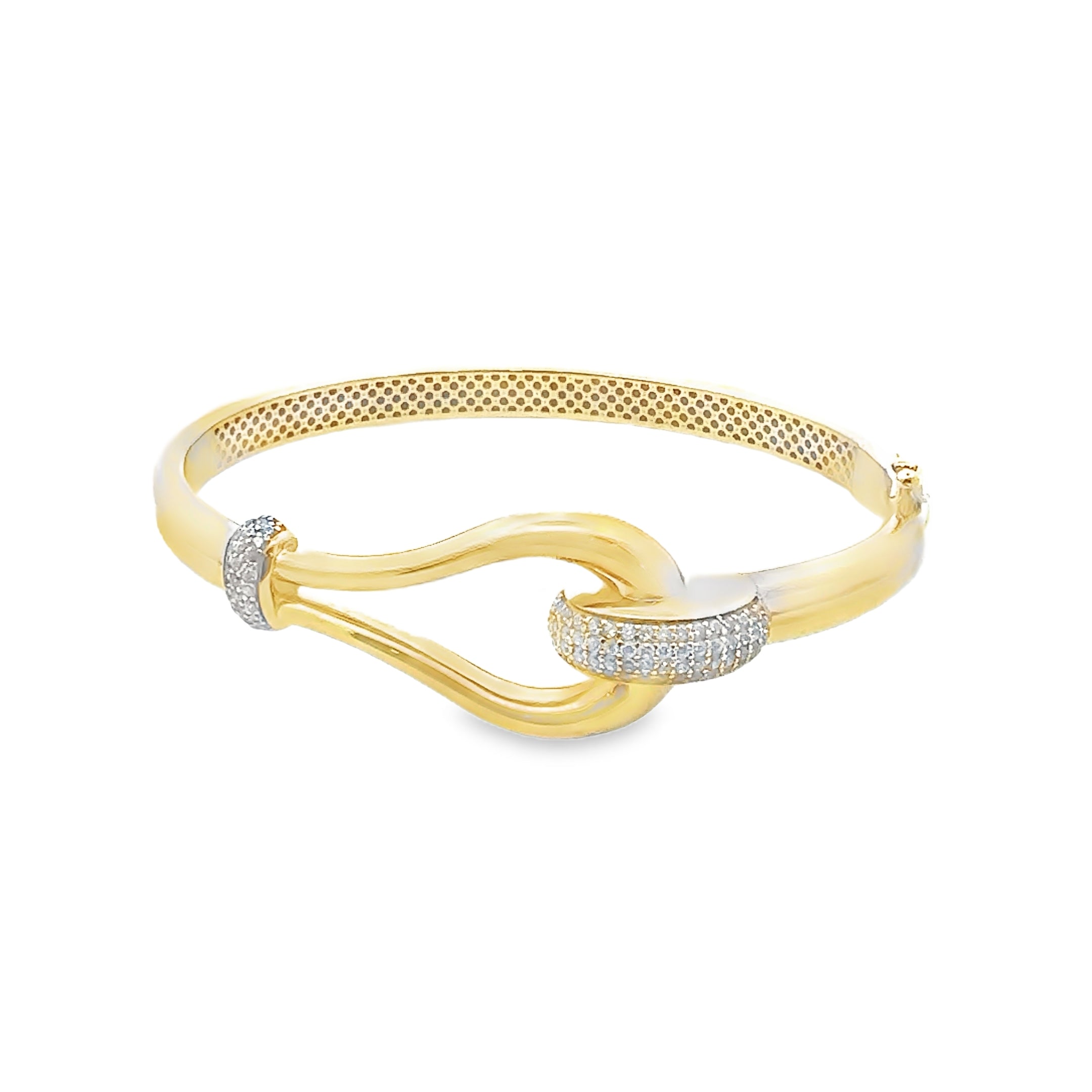 Yellow Gold Bangle Adorned with Round Brilliant Diamonds- 10K