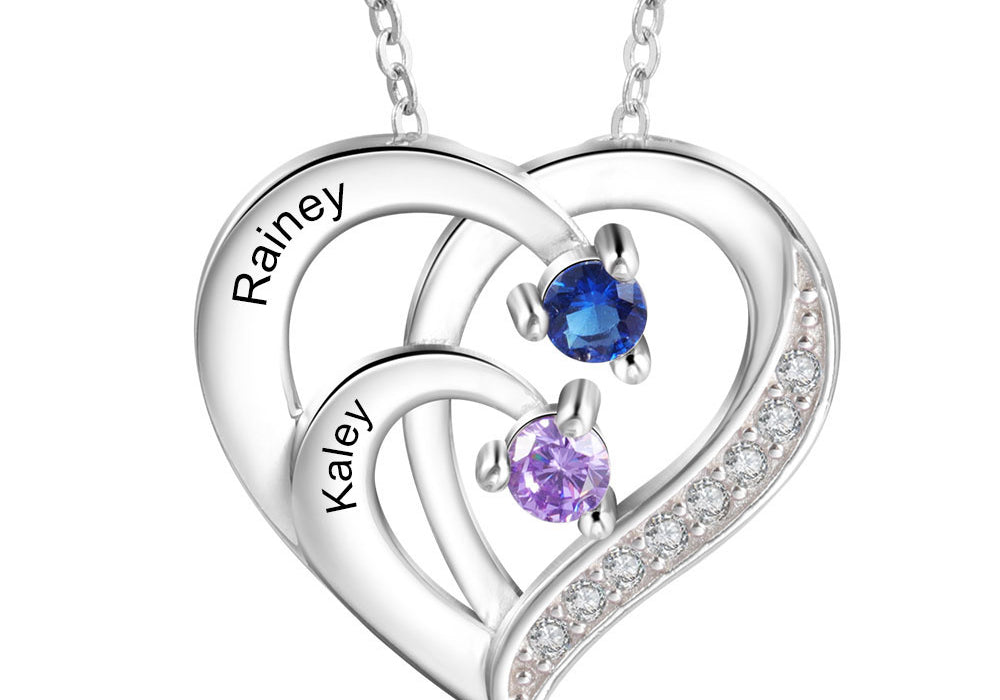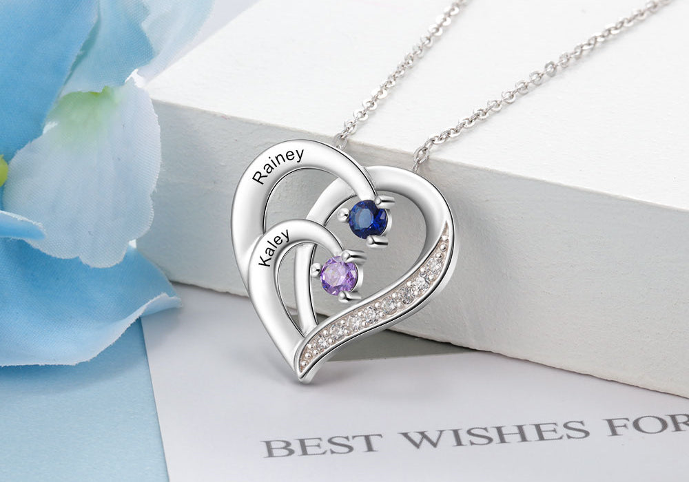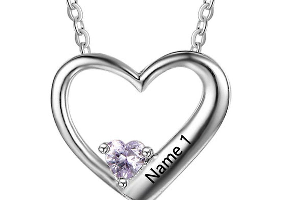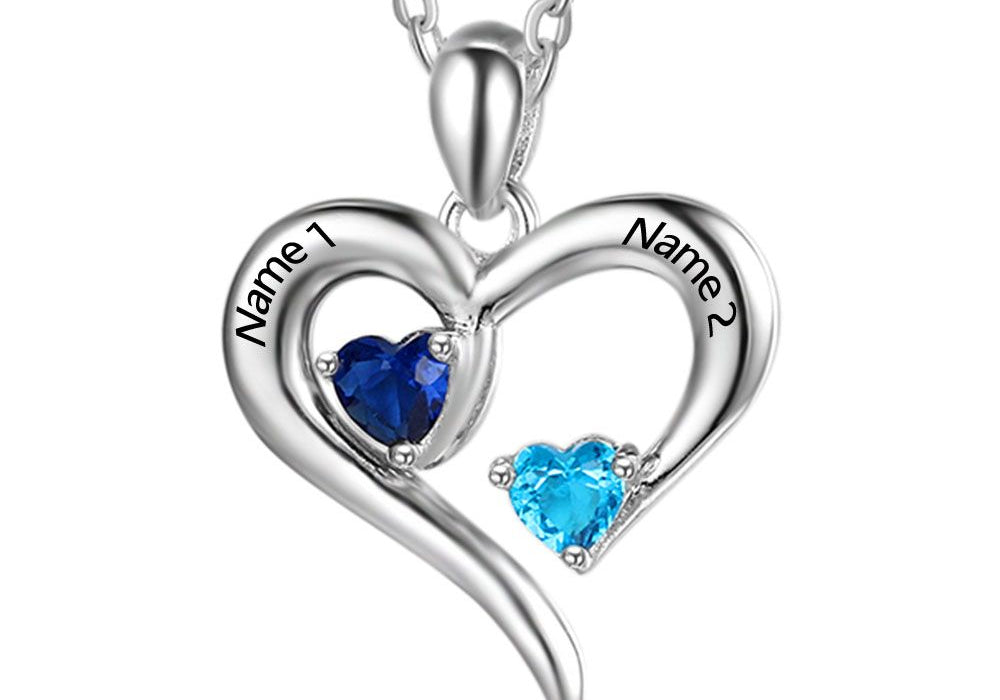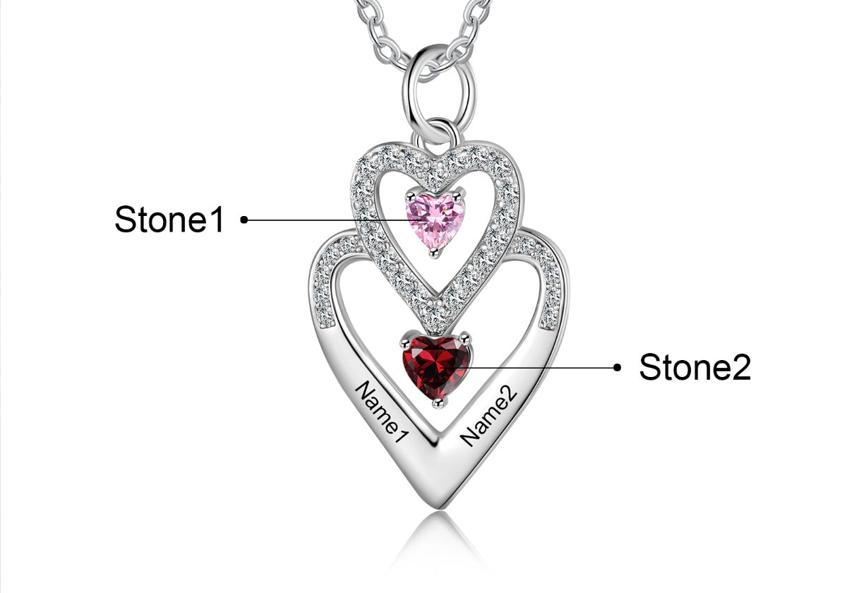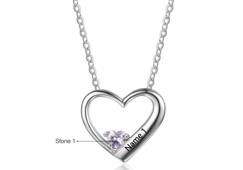 Birthstone Heart Shape Pendant Necklace 1 to 6 Names
