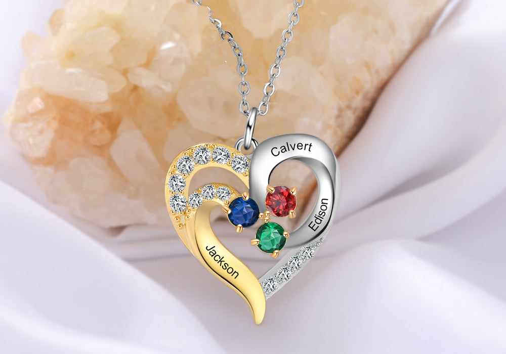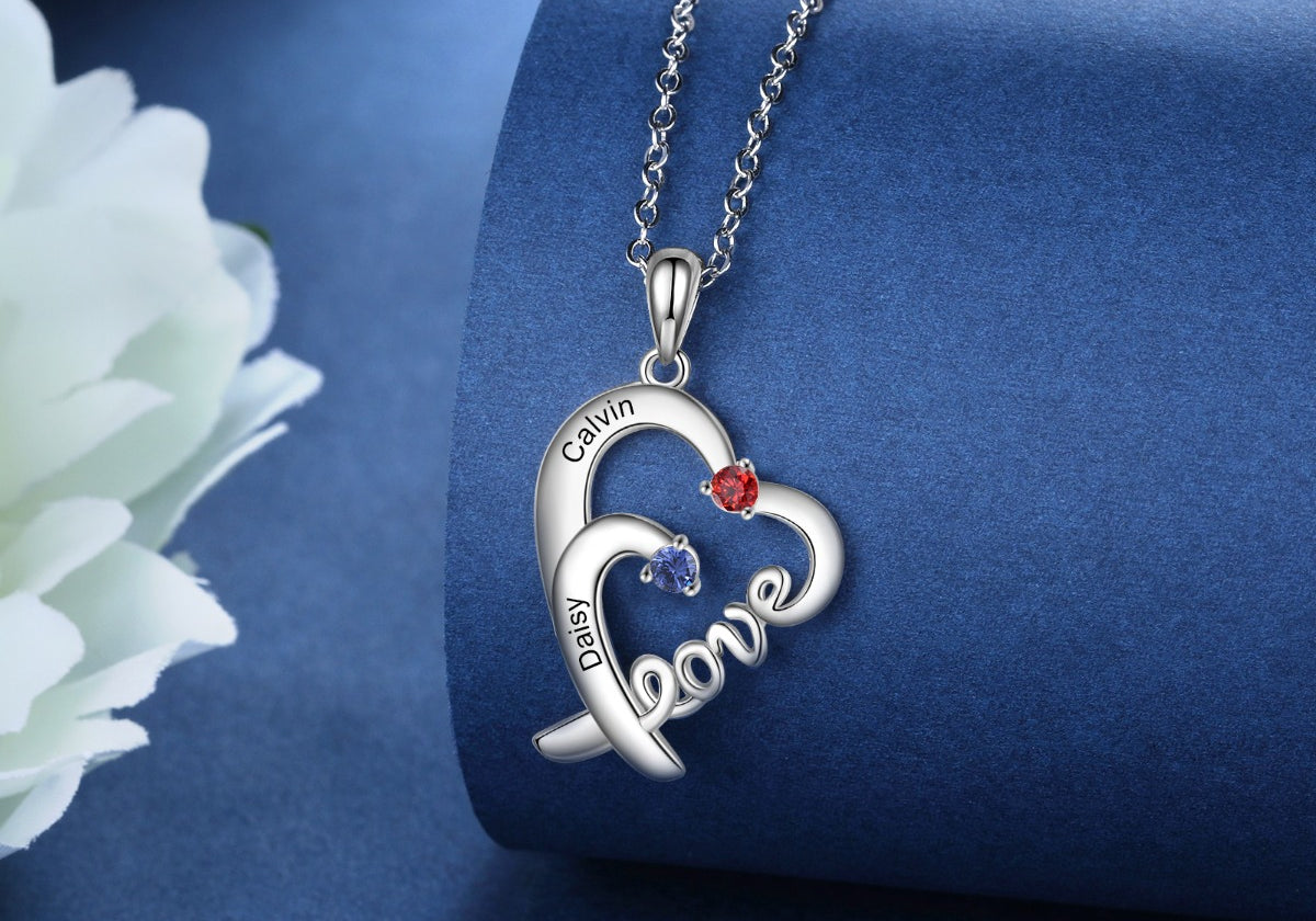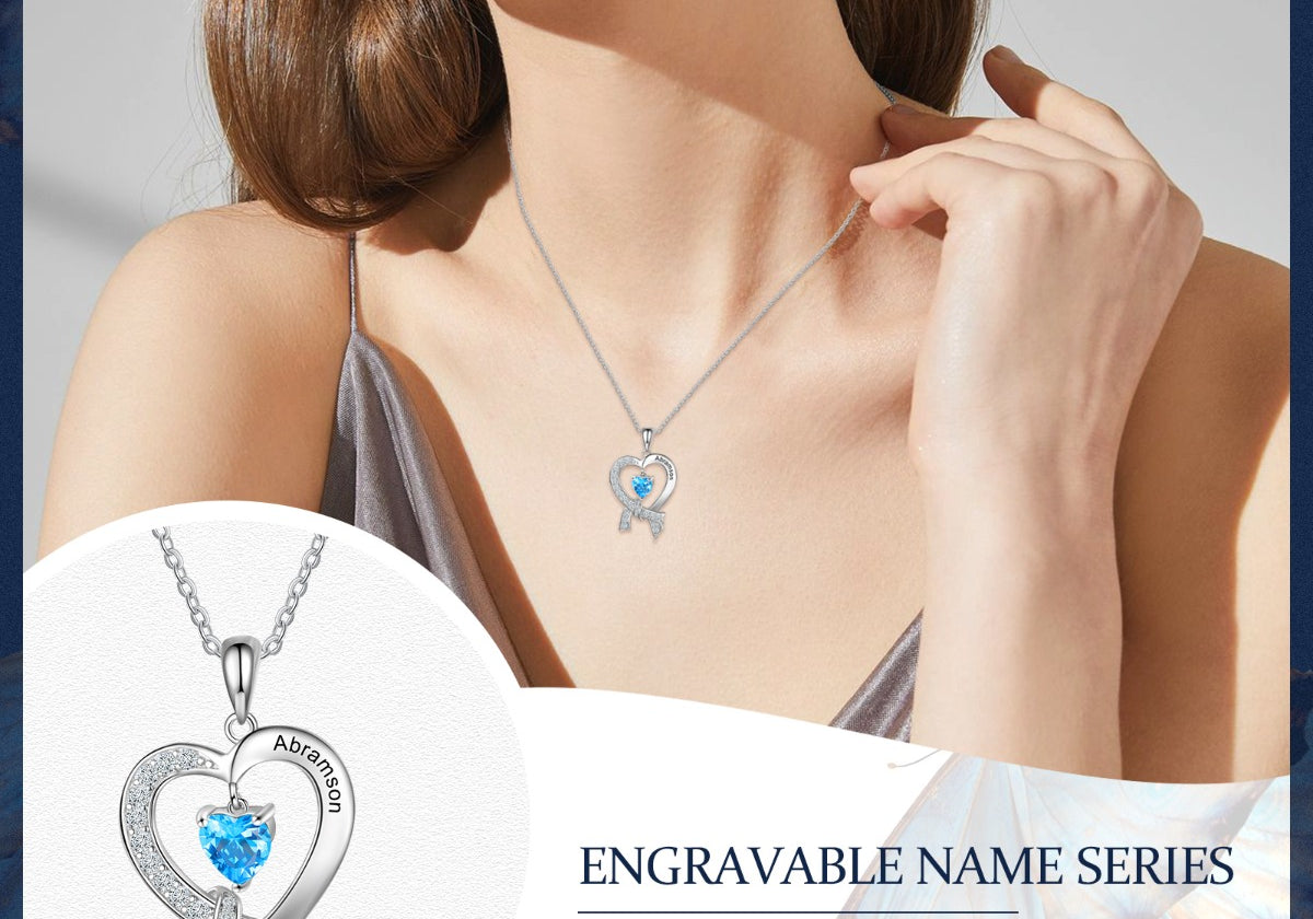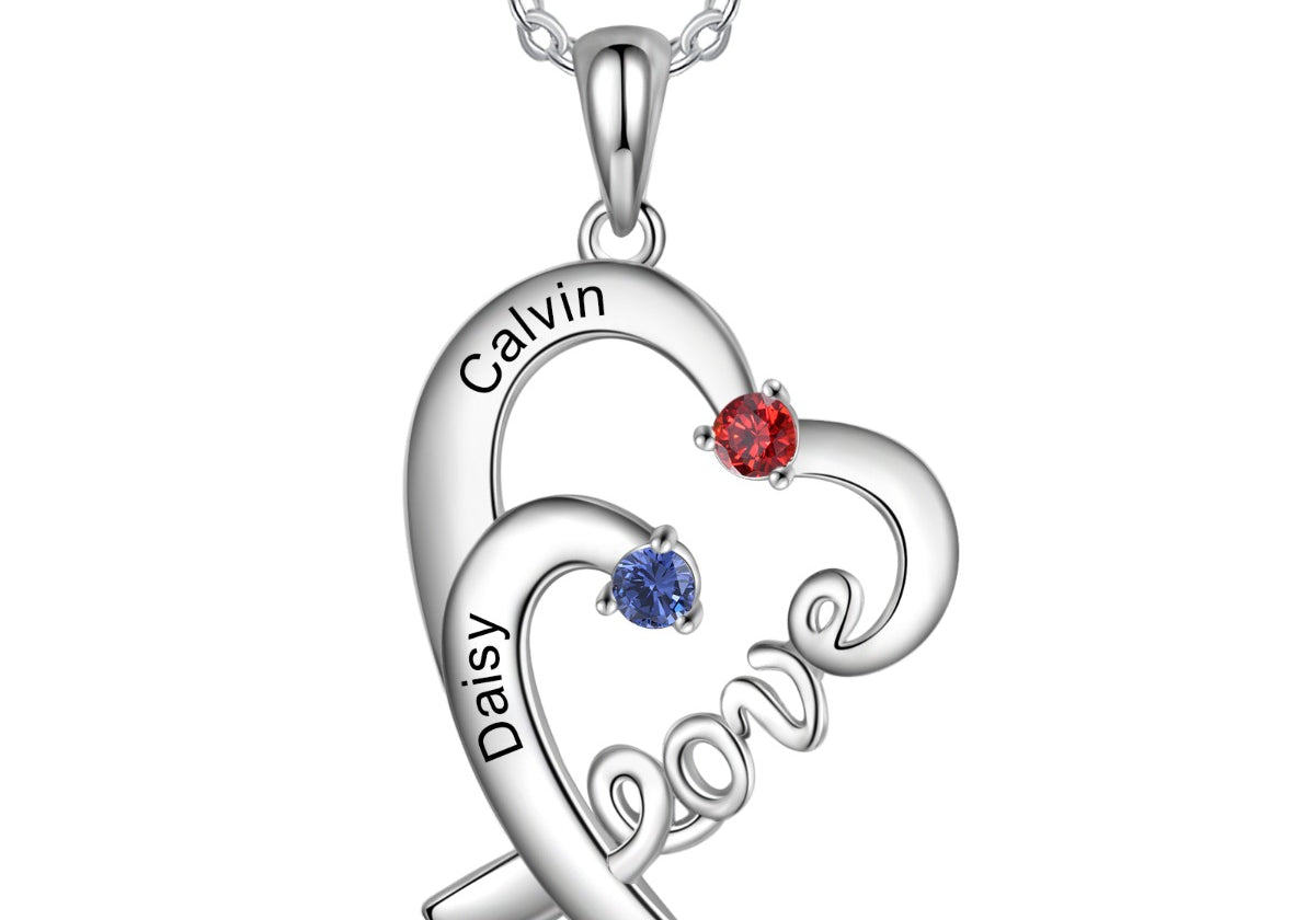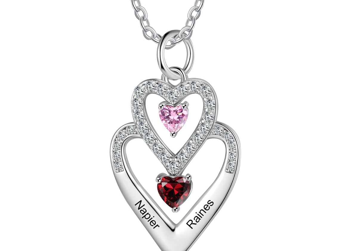 Birthstone Heart Shape Pendant Necklace 1 to 6 Names