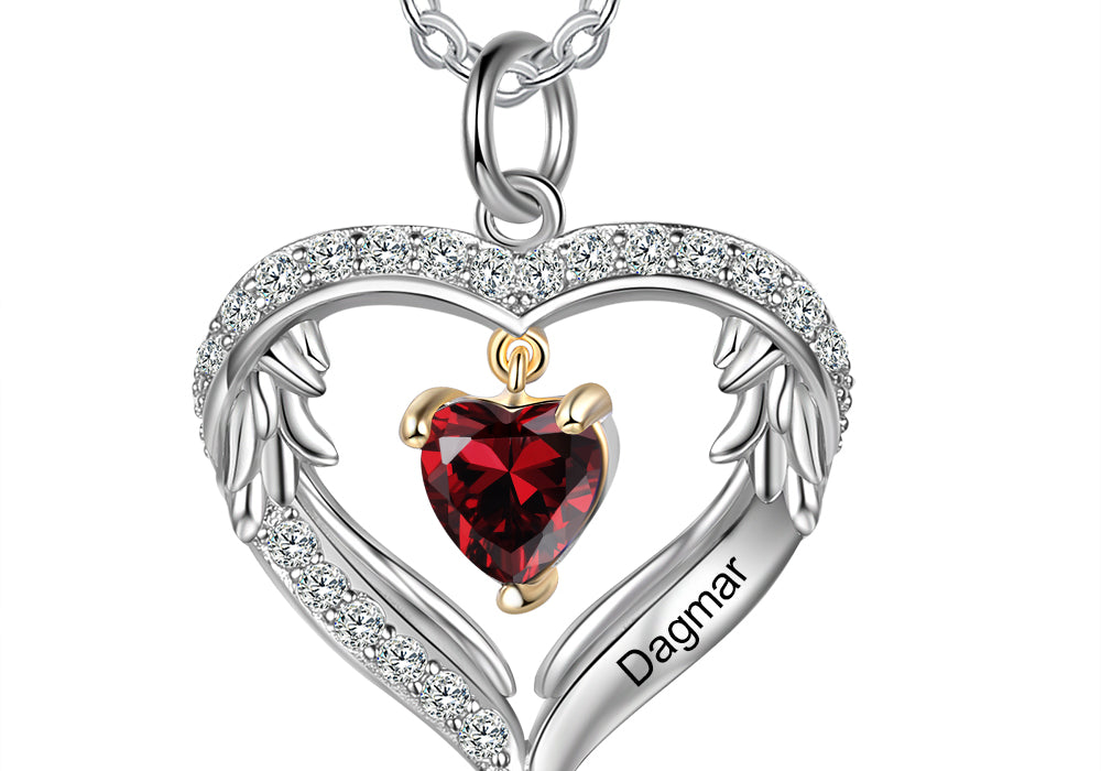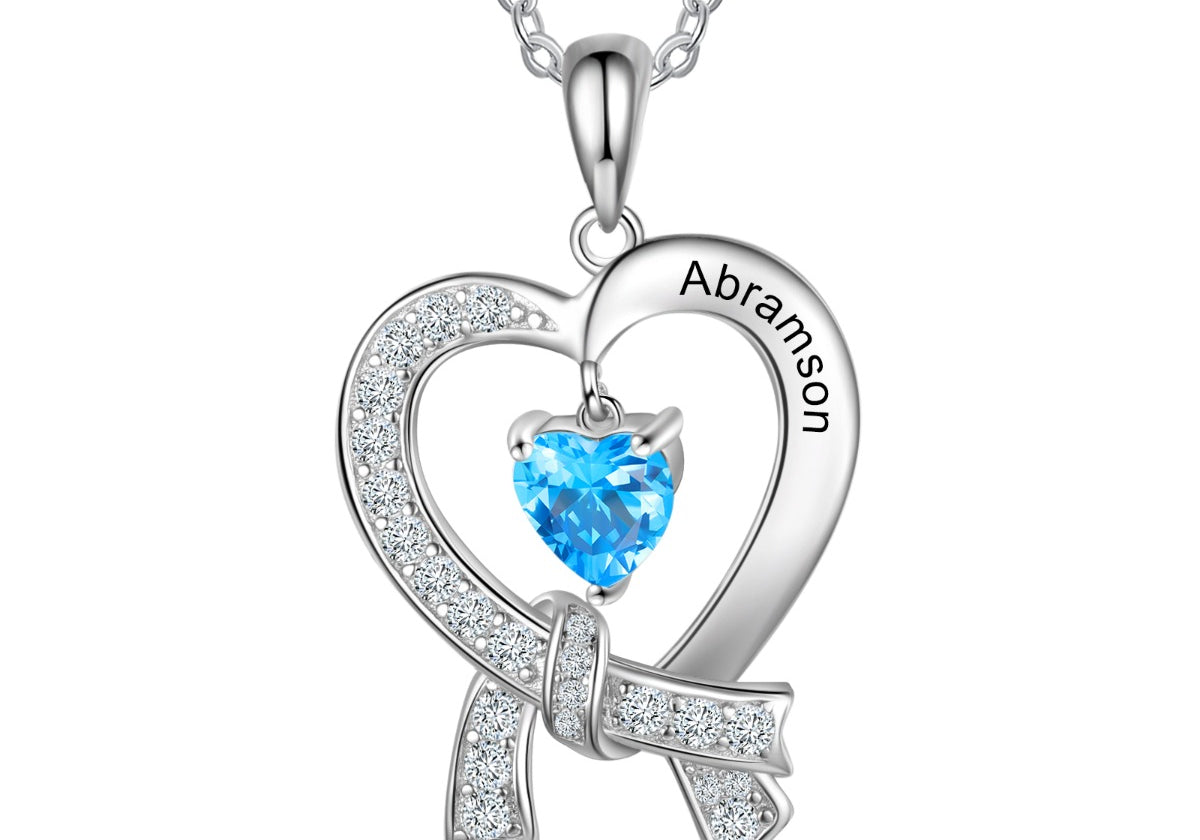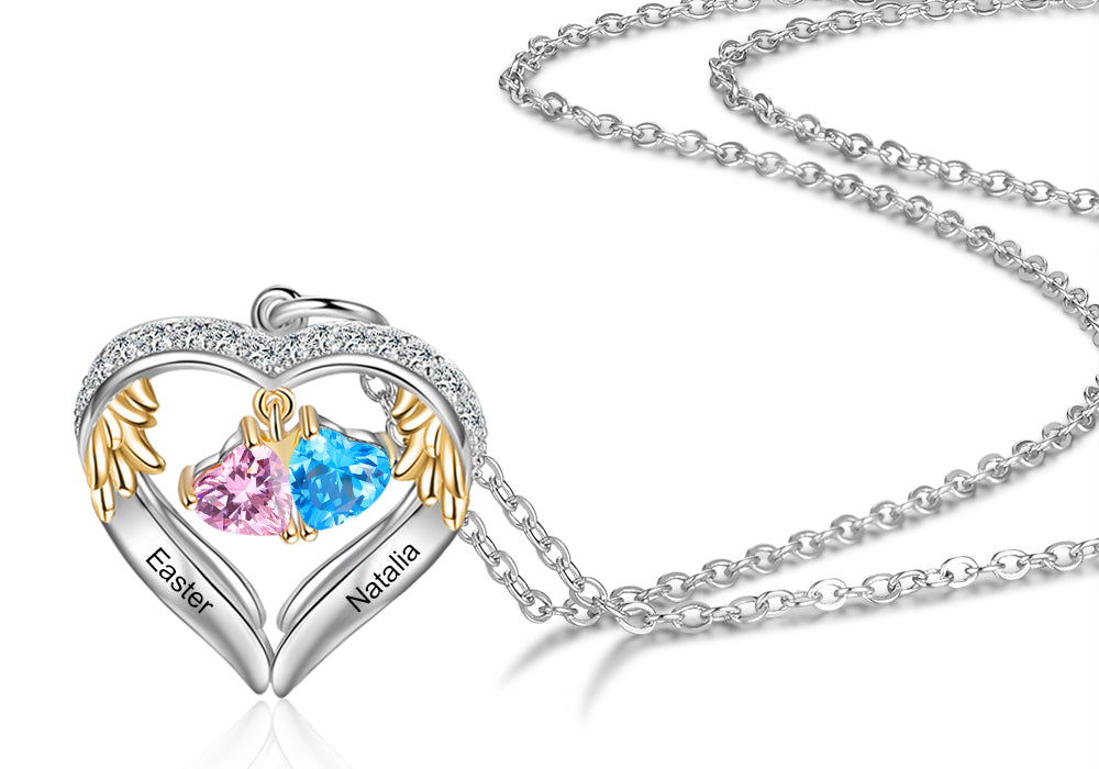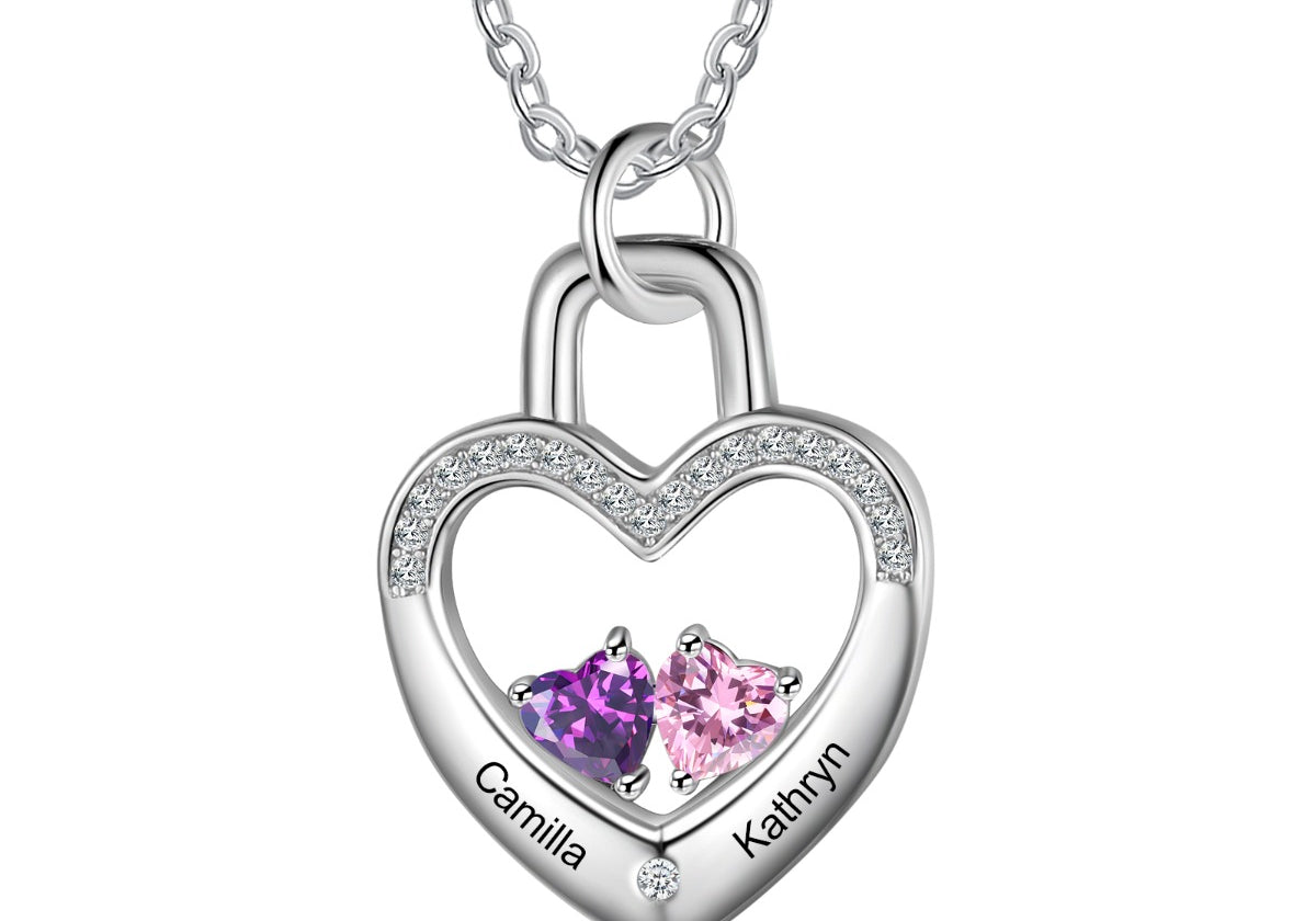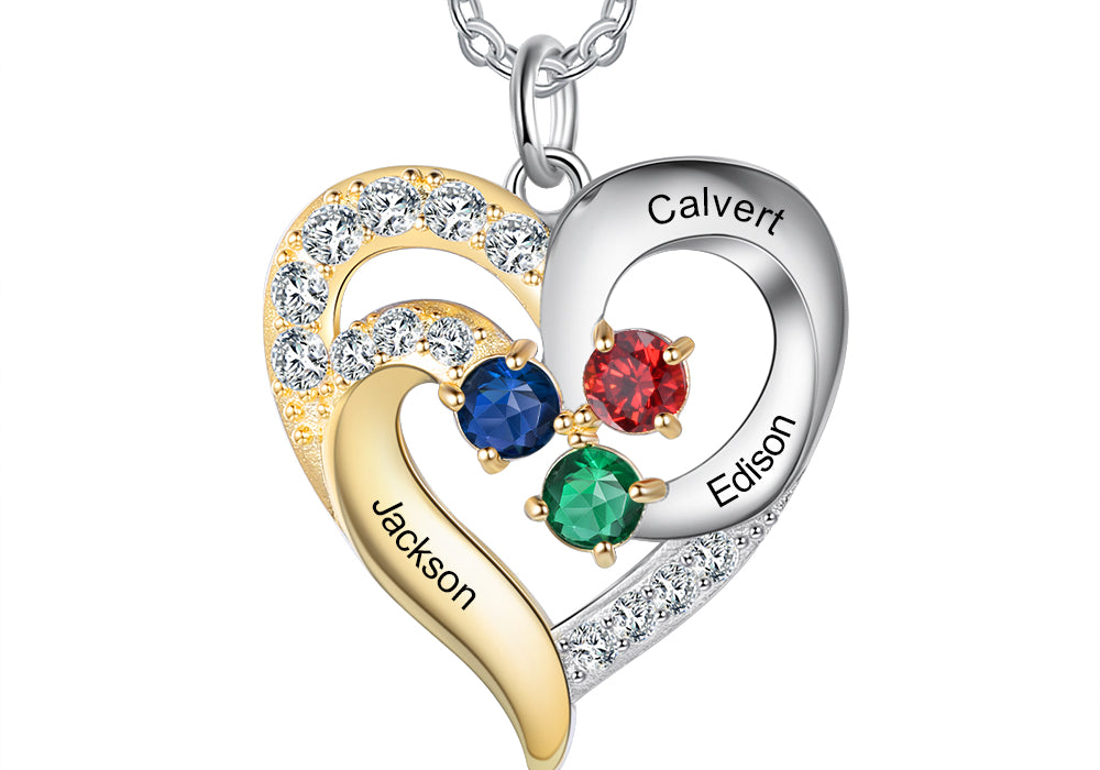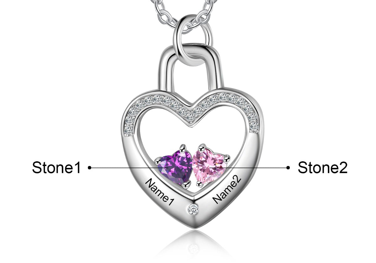 Birthstone Heart Shape Pendant Necklace 1 to 6 Names