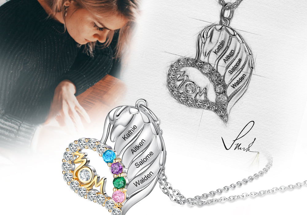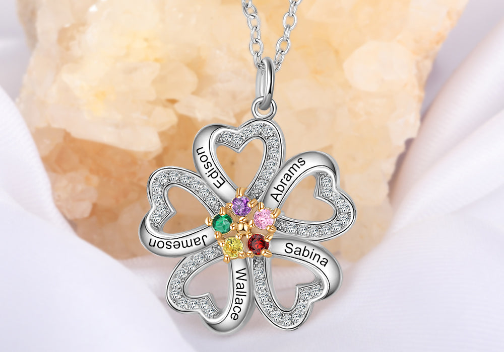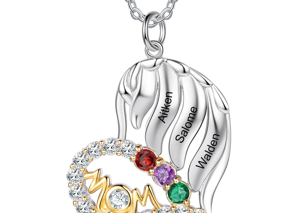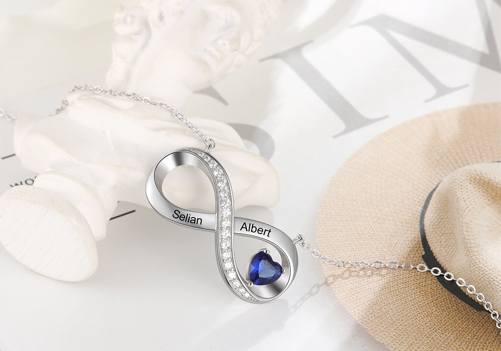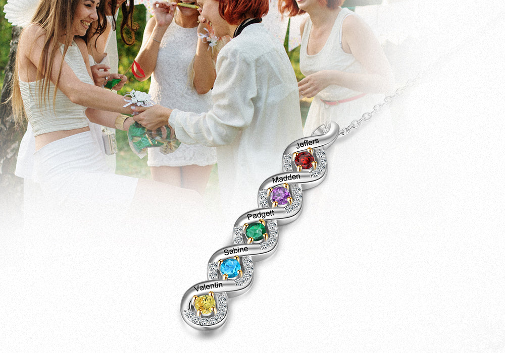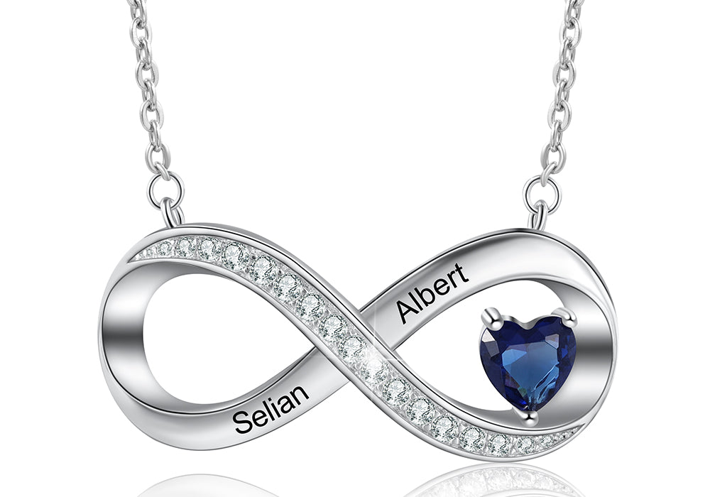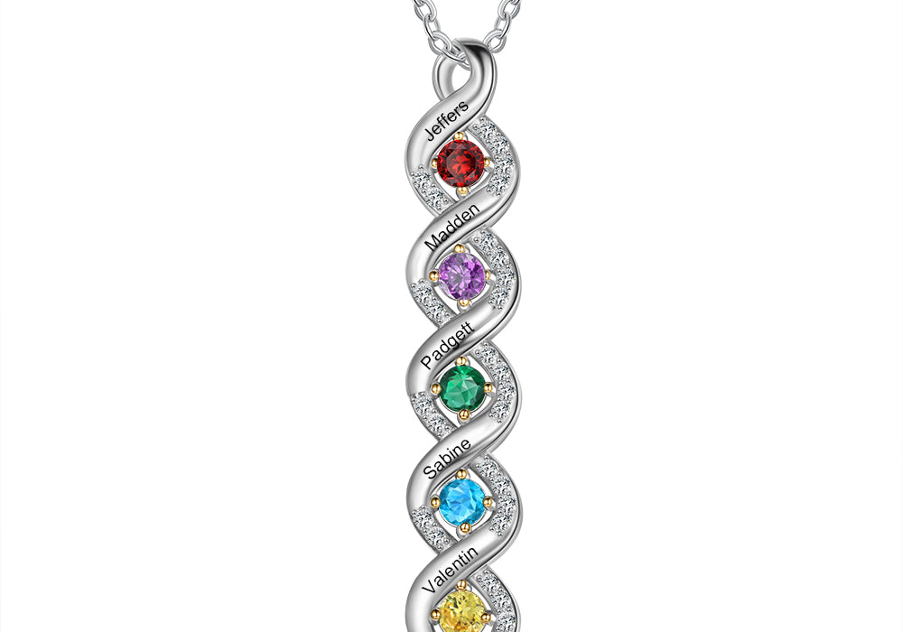 Birthstone Heart Shape Pendant Necklace 1 to 6 Names