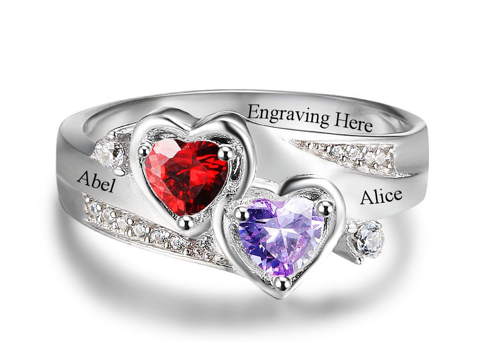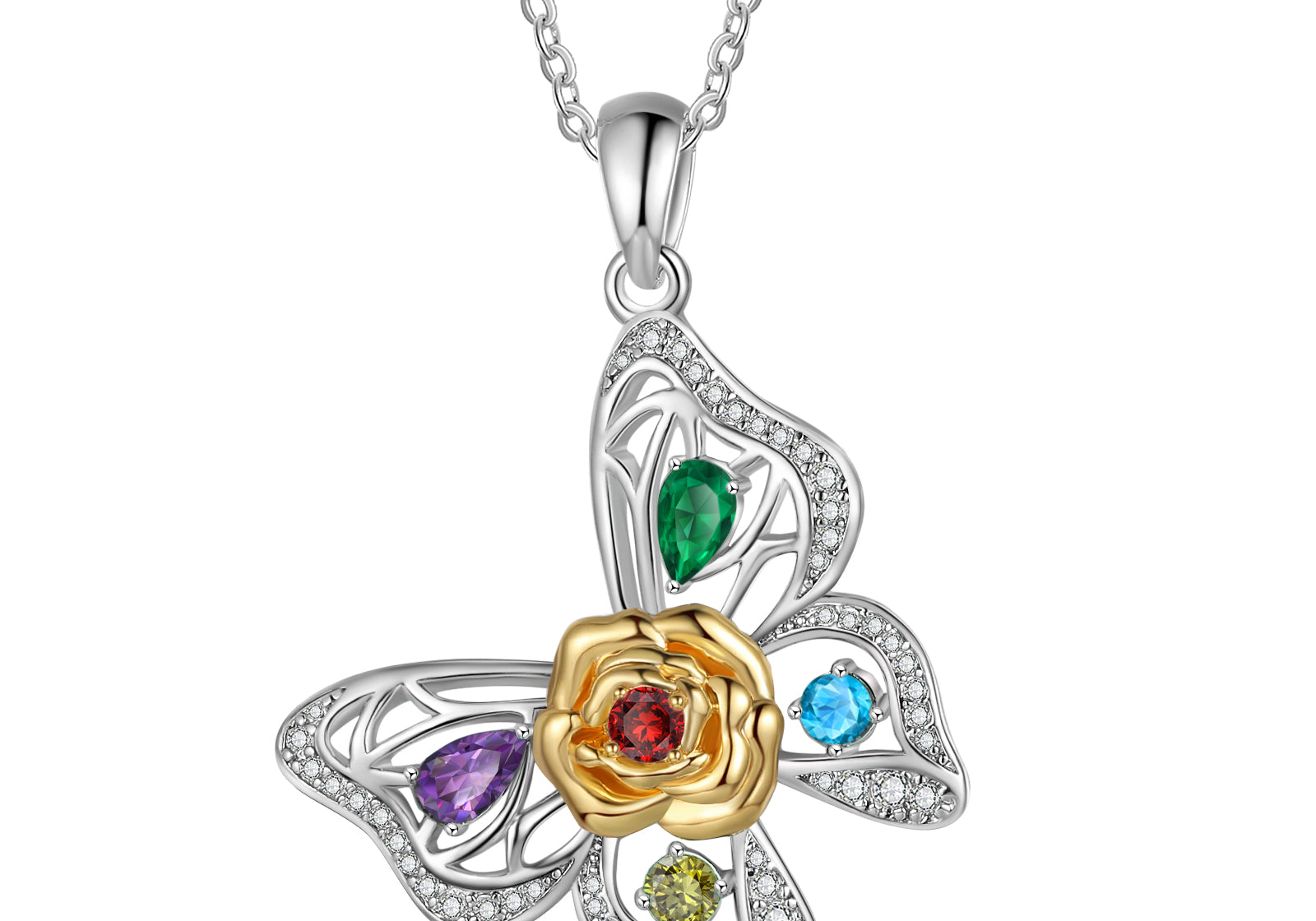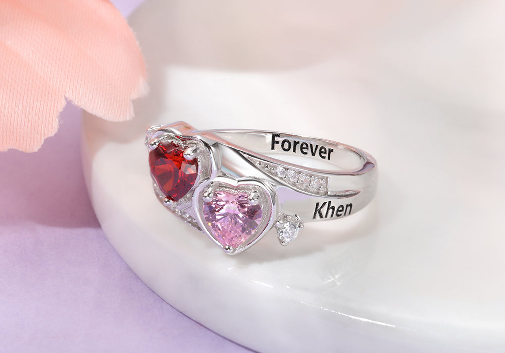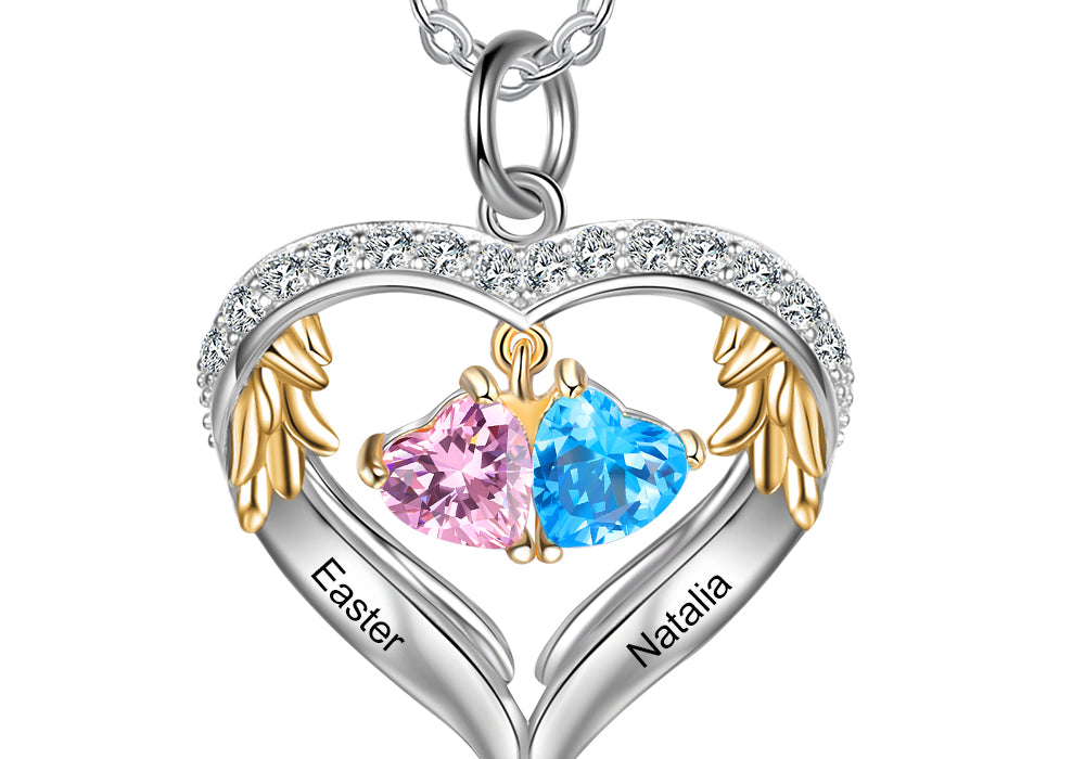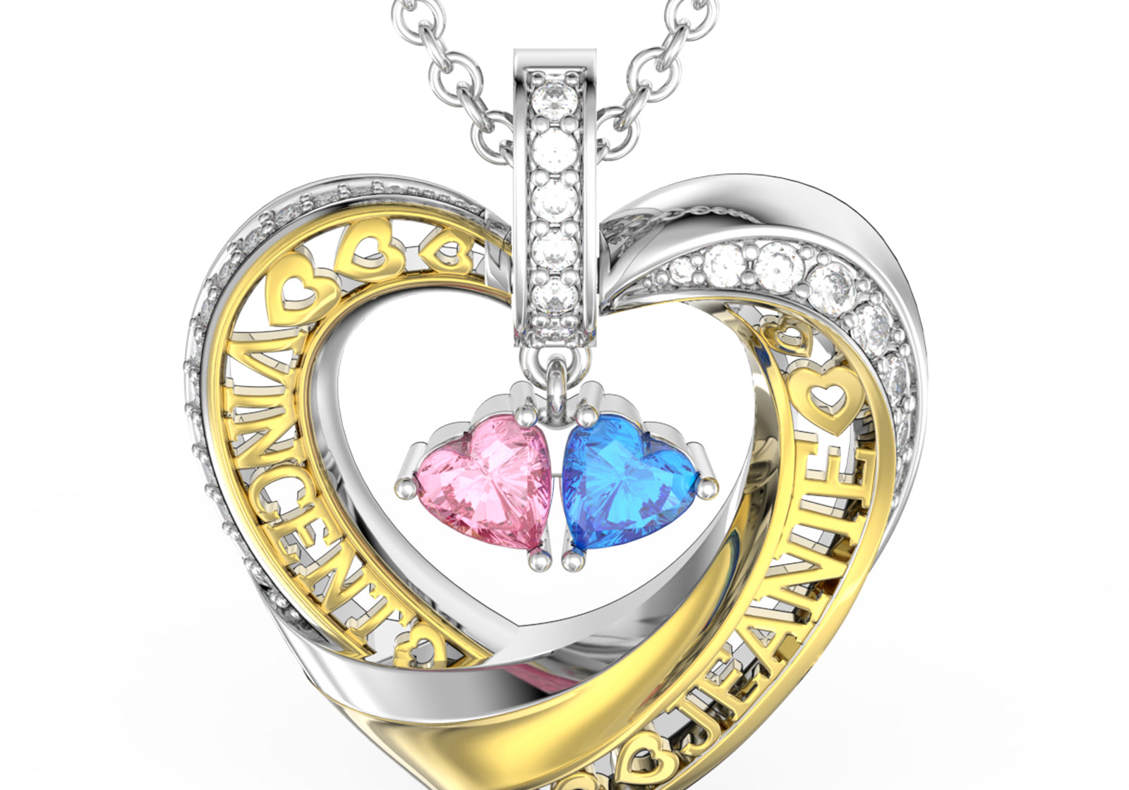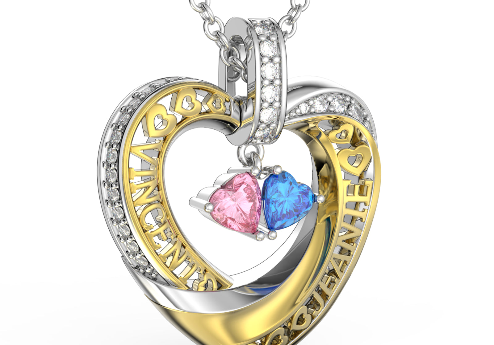Birthstone & Engraved Two Tone Heart Necklace 1 to 4 Stones.