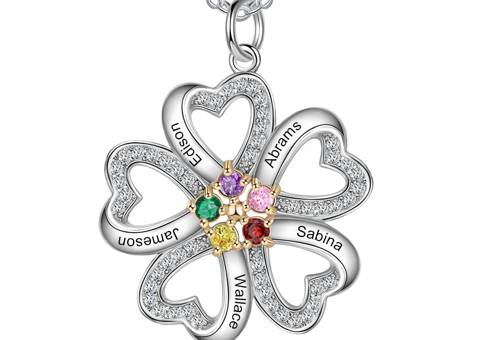Heart Shape Flower Pendant Necklace 5 to 6 Stones