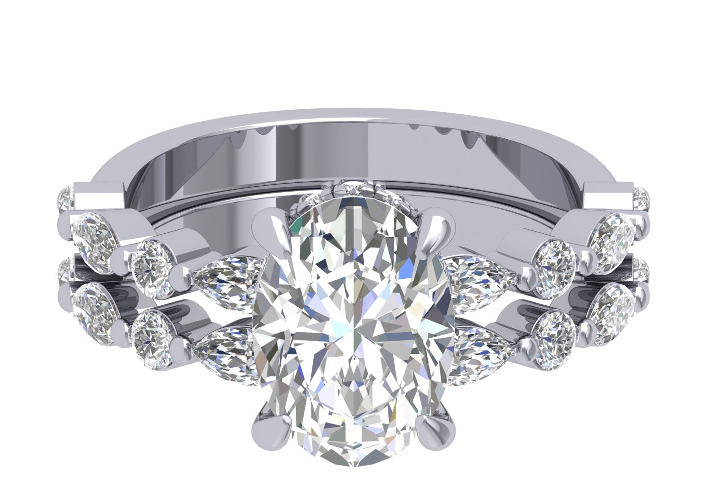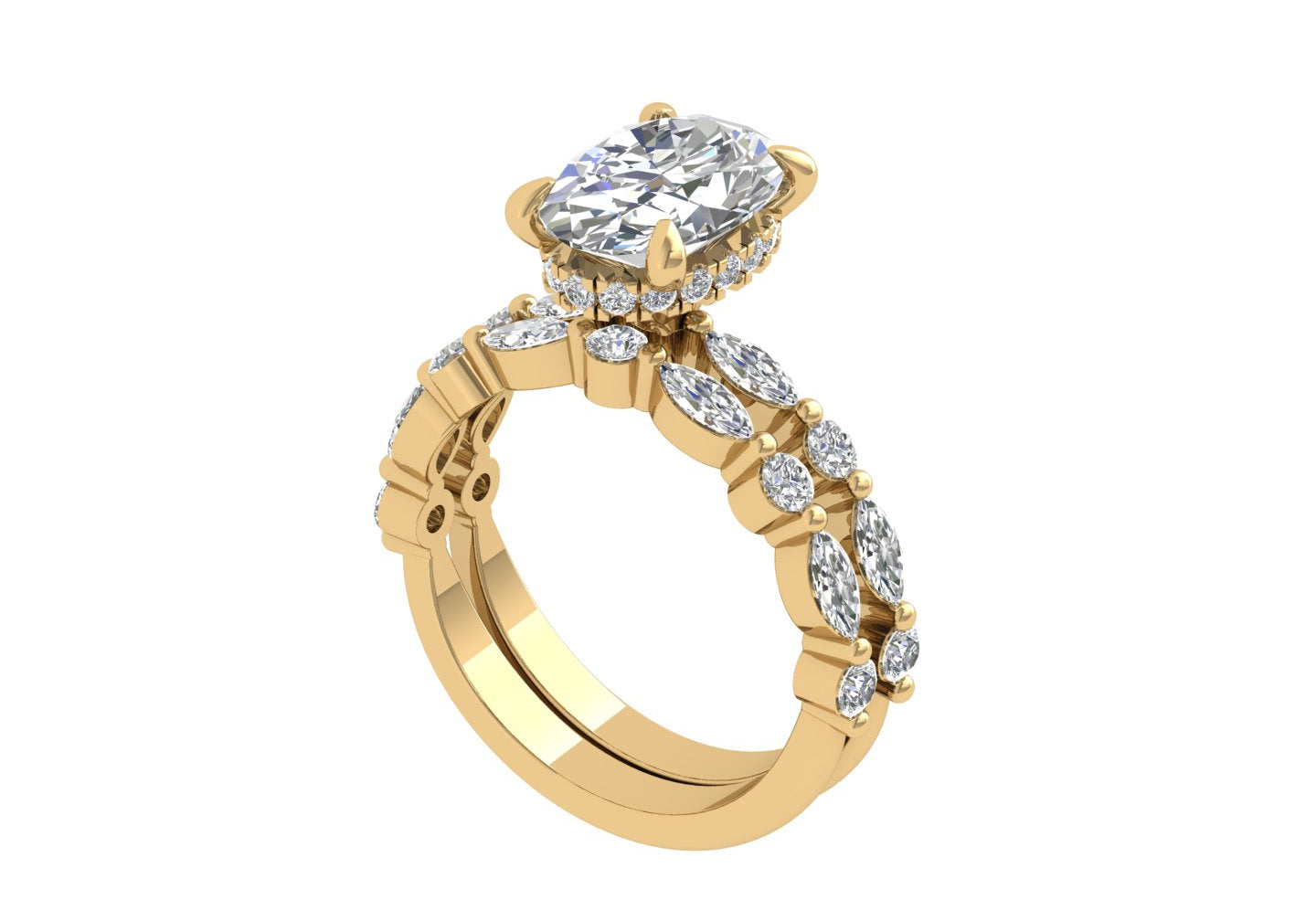 14K Oval Hidden Halo Diamond Engagement Ring-Joanna