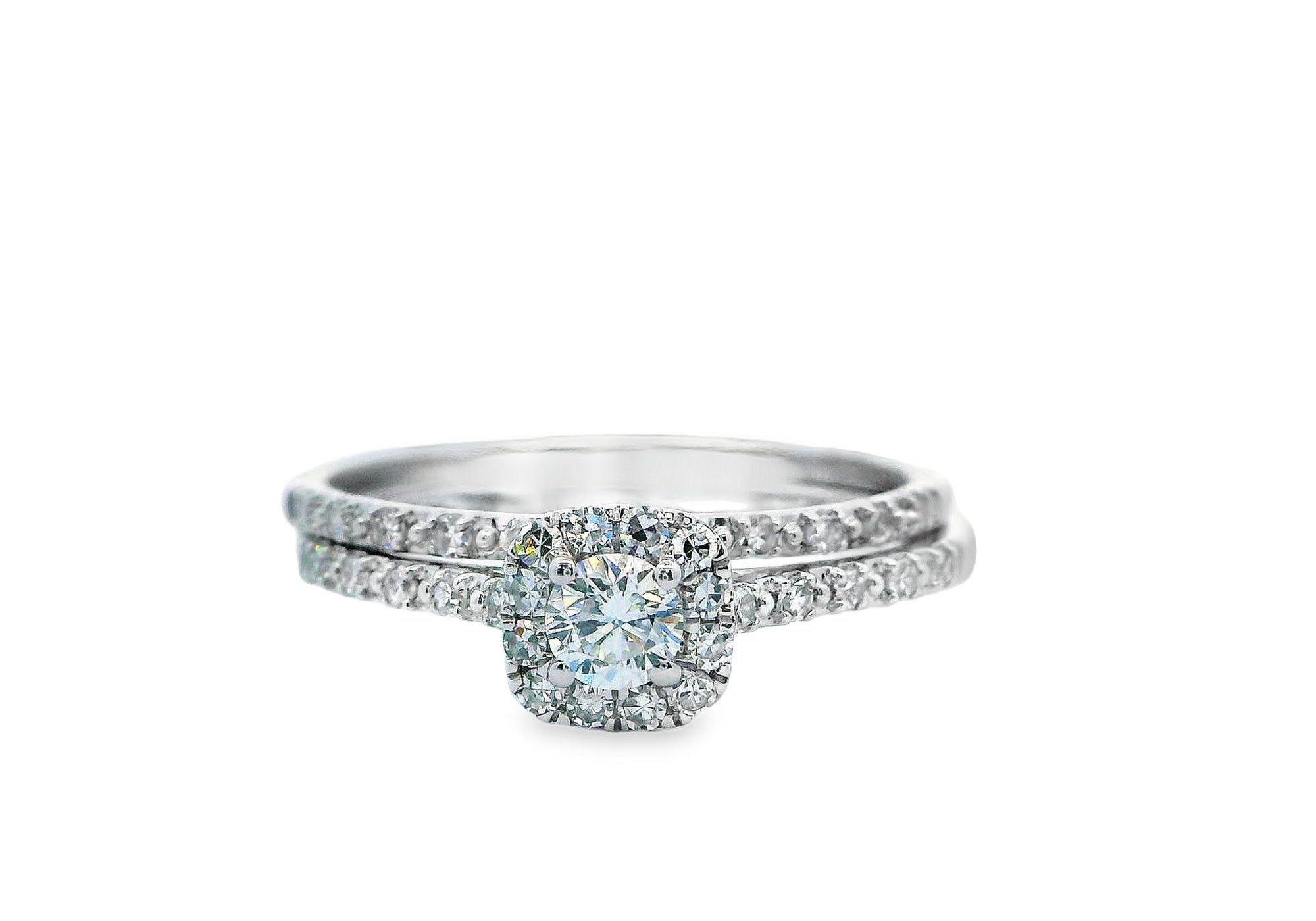 10K Dainty Diamond Halo Bridal Set-Cosmina