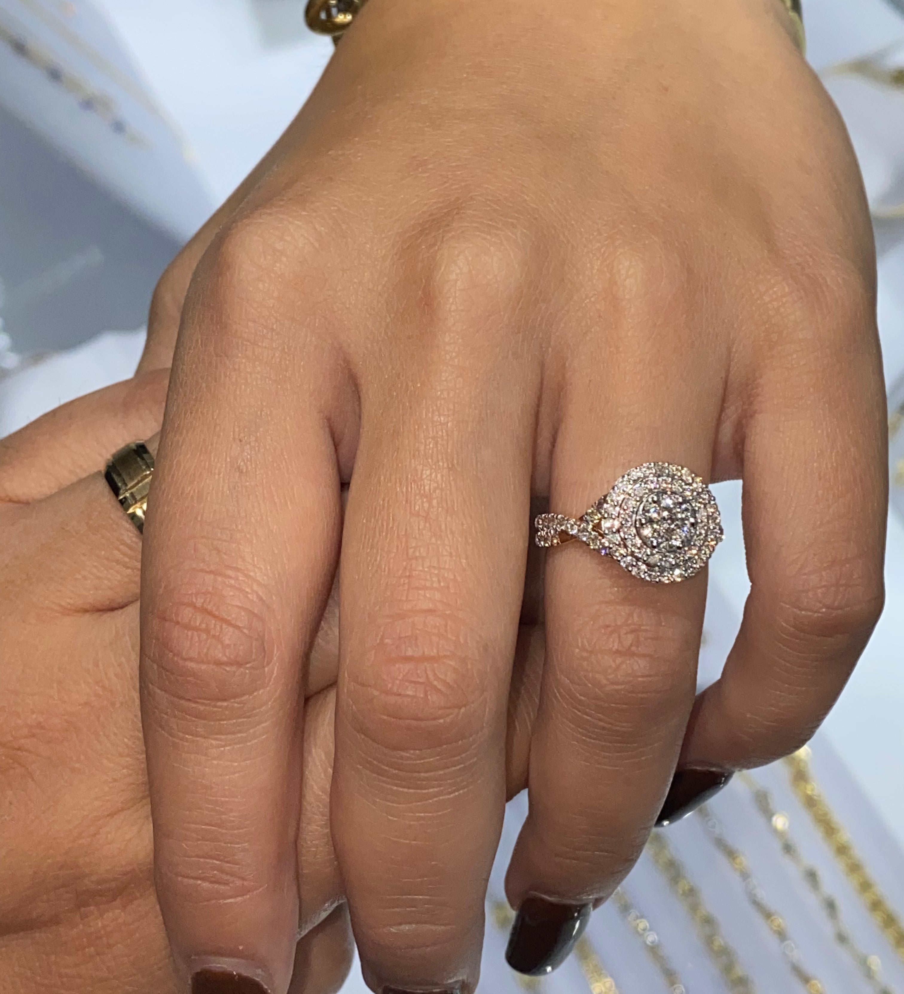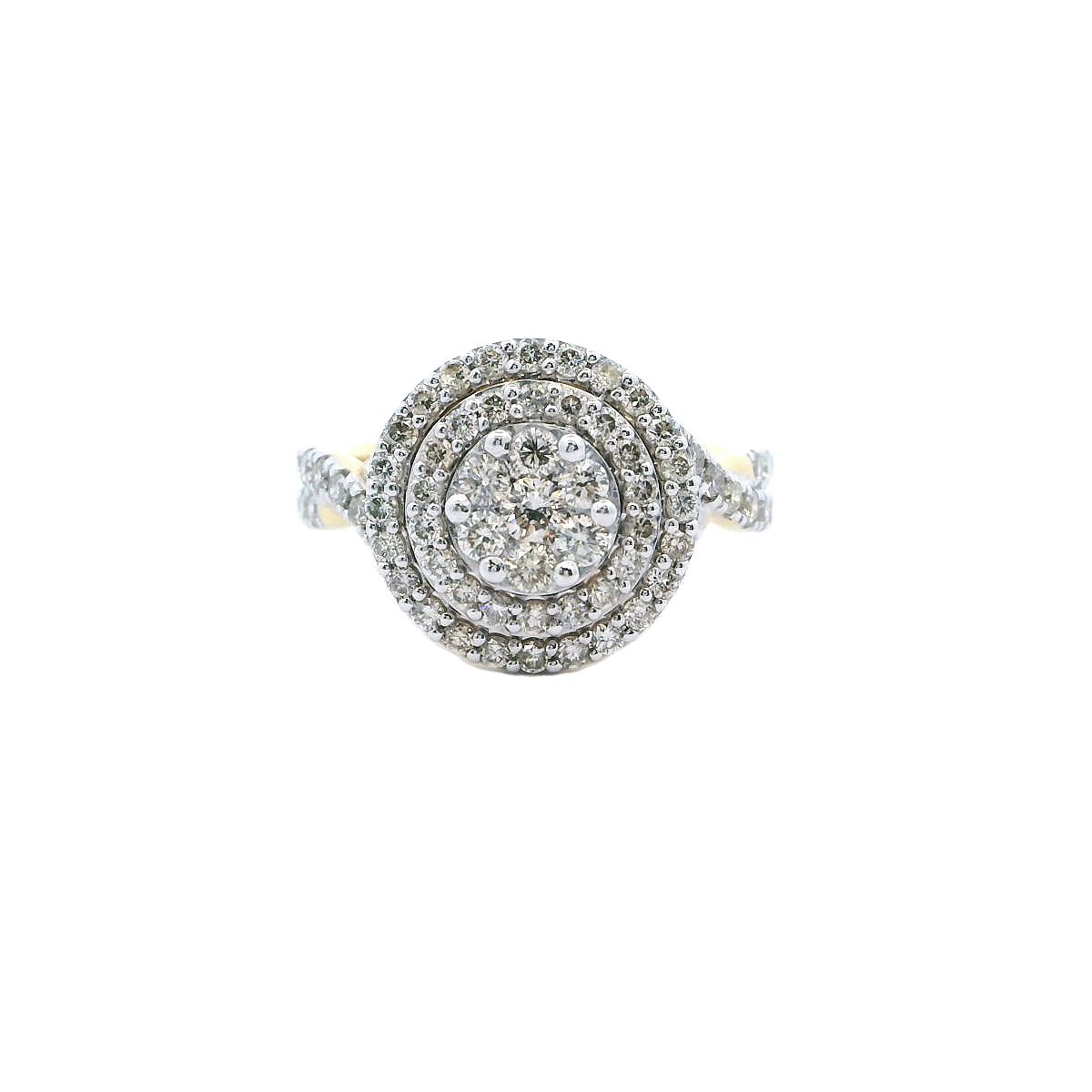 Double Halo 1 Carat Diamonds in 14kt Yellow Gold