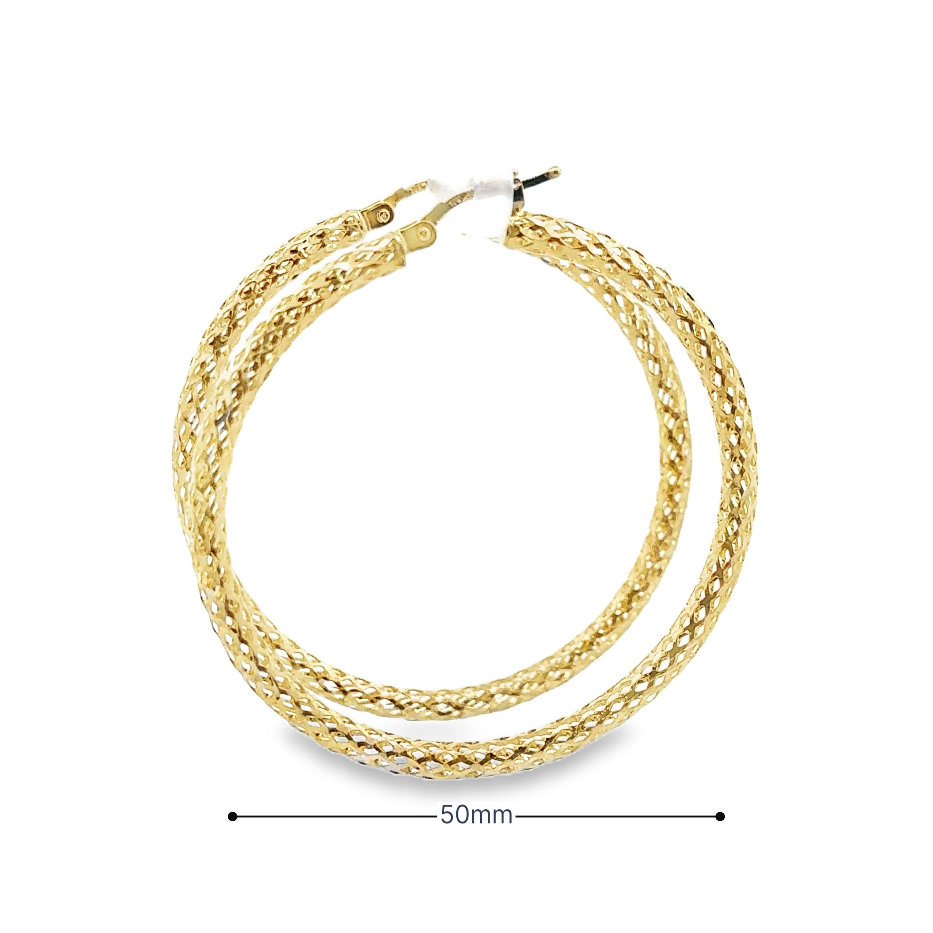 These stunning gold hoop earrings feature an intricate lattice design, adding a touch of elegance to any outfit. Their lightweight construction ensures comfort while making a bold fashion statement. Perfect for both casual and formal occasions, these earrings are a must-have addition to your jewelry collection.