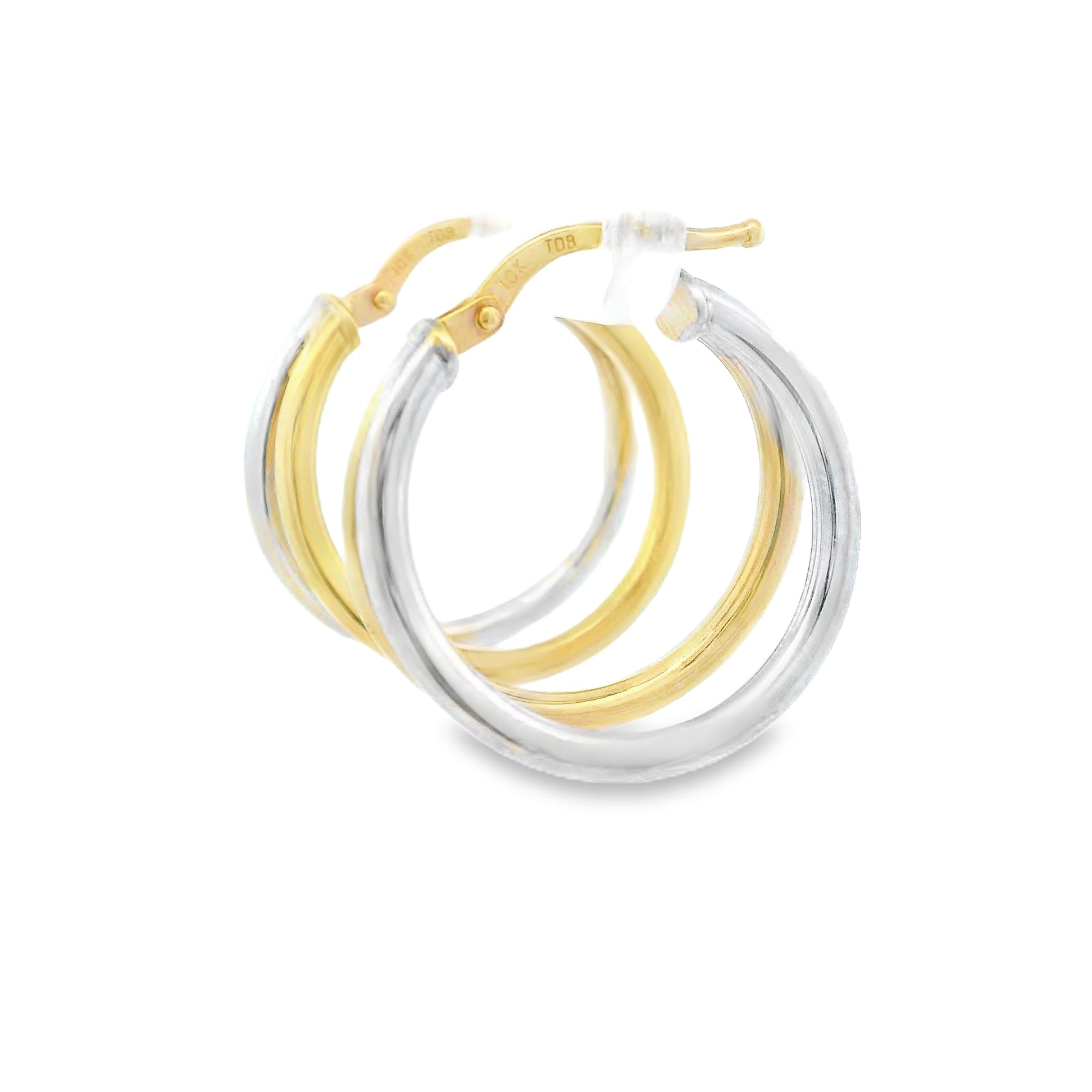 Experience the thrill of taking risks with our 10k Two-Tone Gold Elongated Double Hoops. Their daring design will elevate any outfit and make a bold statement. These hoops are made of high quality 10k yellow & White gold, ensuring a lasting shine and luxurious look. Dare to be different with our elongated double hoops!