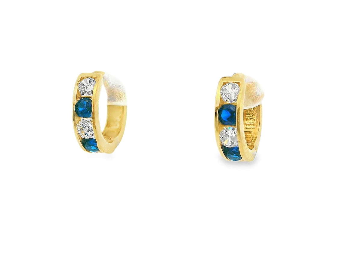 Baby Blue Huggies Earrings 10K Gold Two-Tone