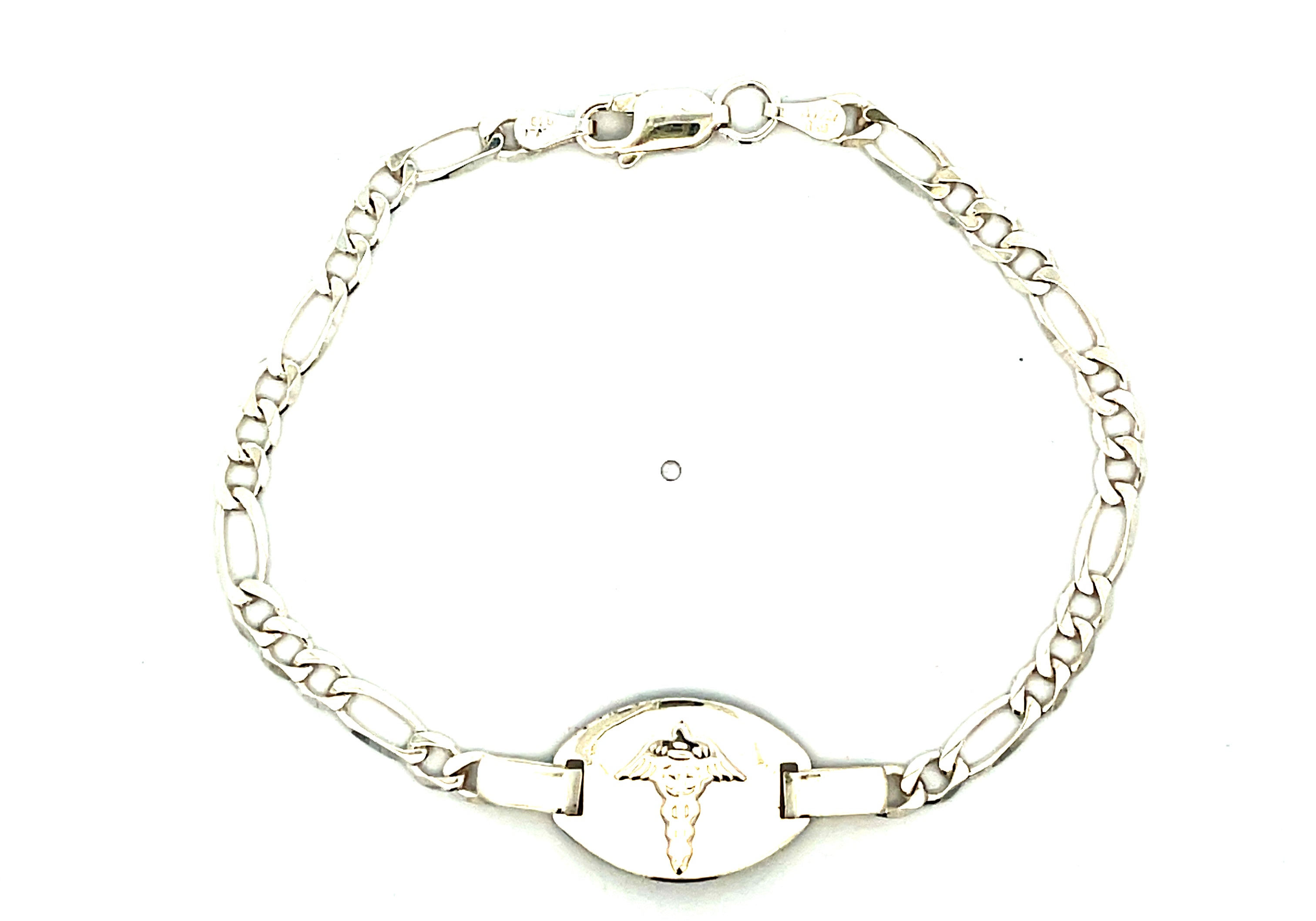 925 Silver Medic Bracelet Figaro Link 4mm -Ladies