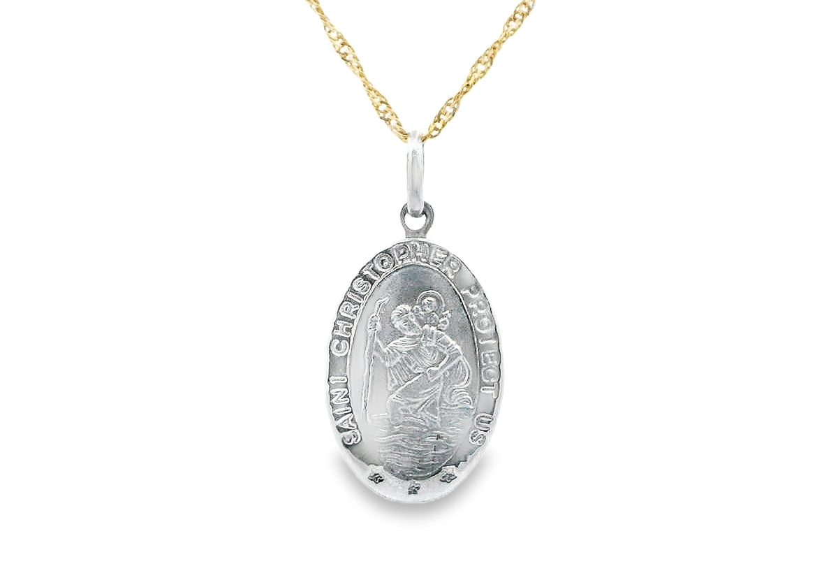 Religious Saint Christopher Pendant 10K White Gold