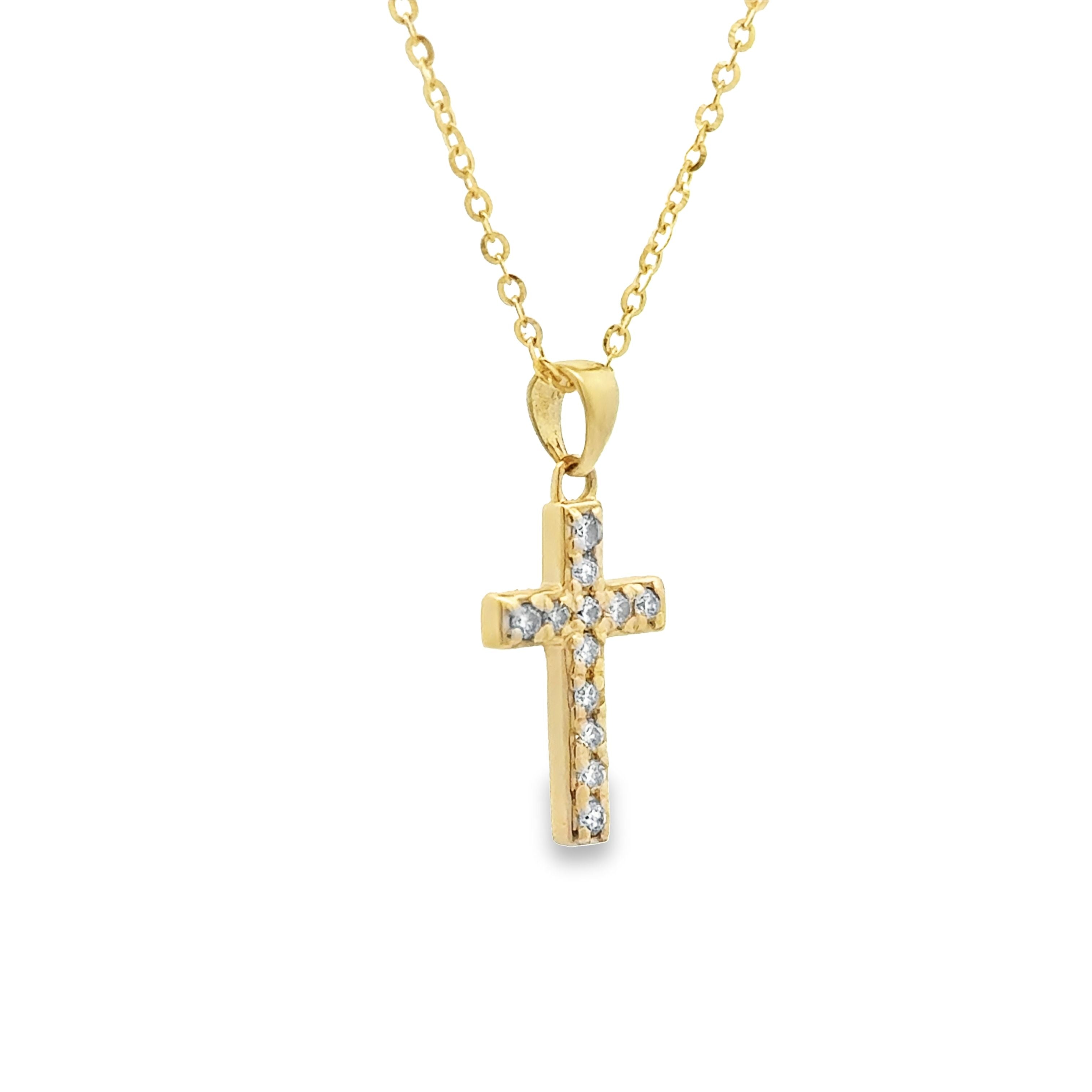 Elevate your style with our exquisite unisex diamond gold cross pendant- a perfect balance of sophistication and luxury. The baguette and round brilliant diamonds brilliantly enhance the beauty of this cross, making it a must-have for any fashion-forward individual. Own this timeless piece and make a statement that will last a lifetime.