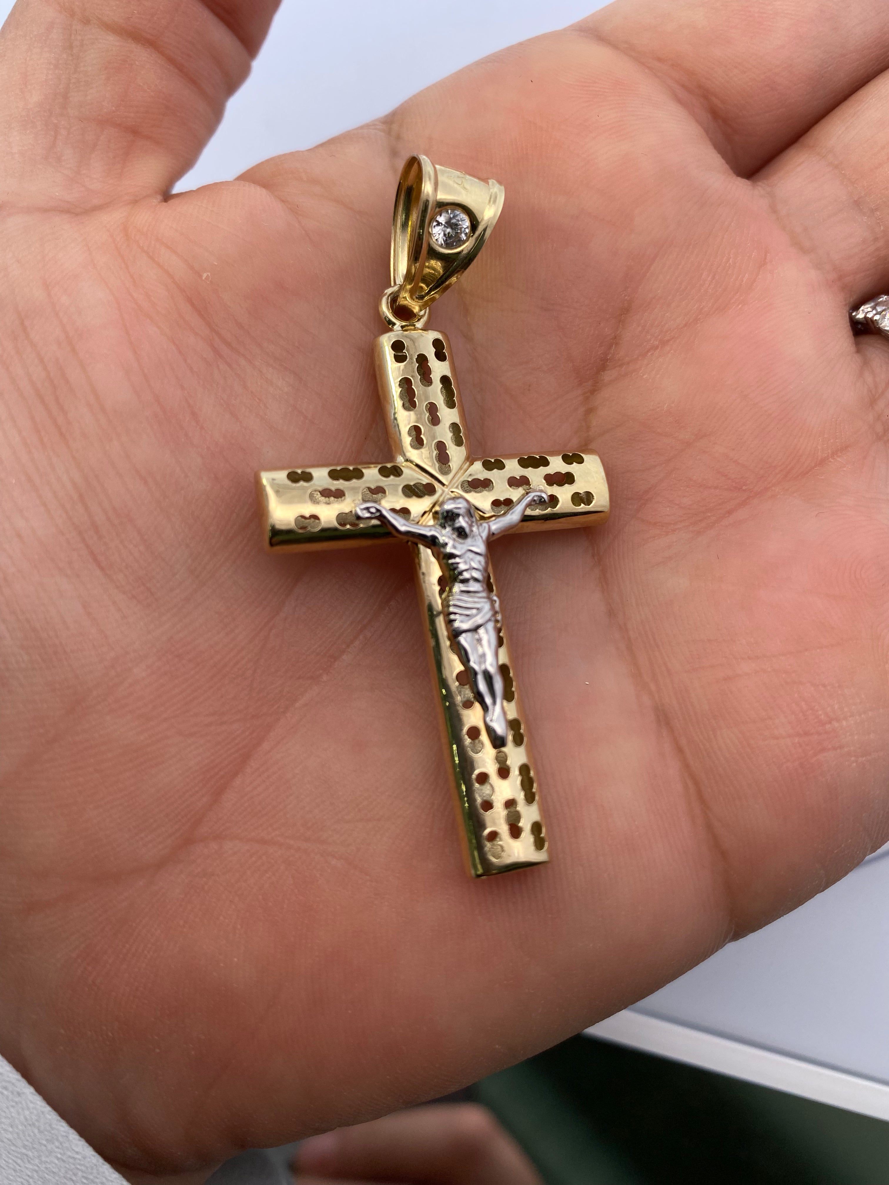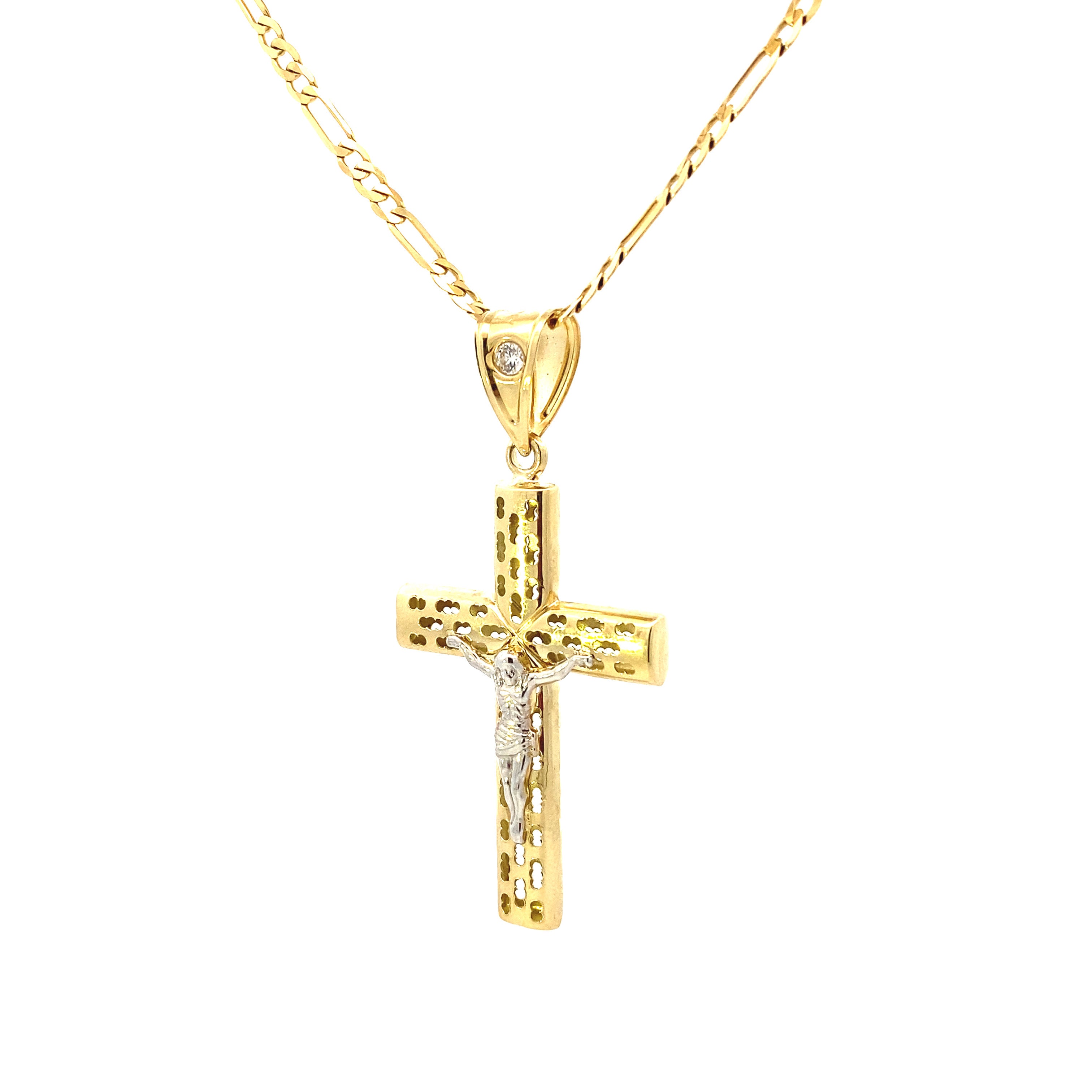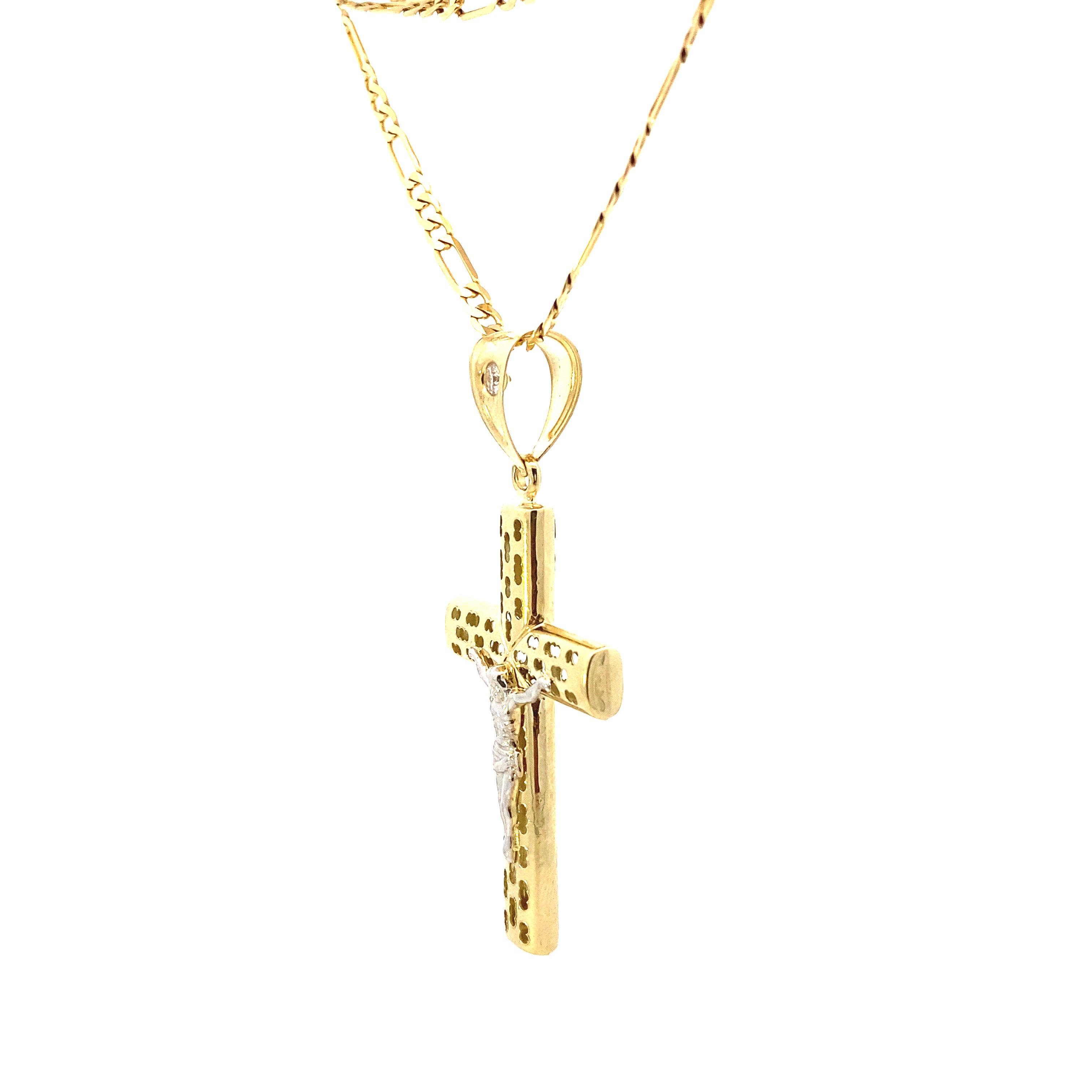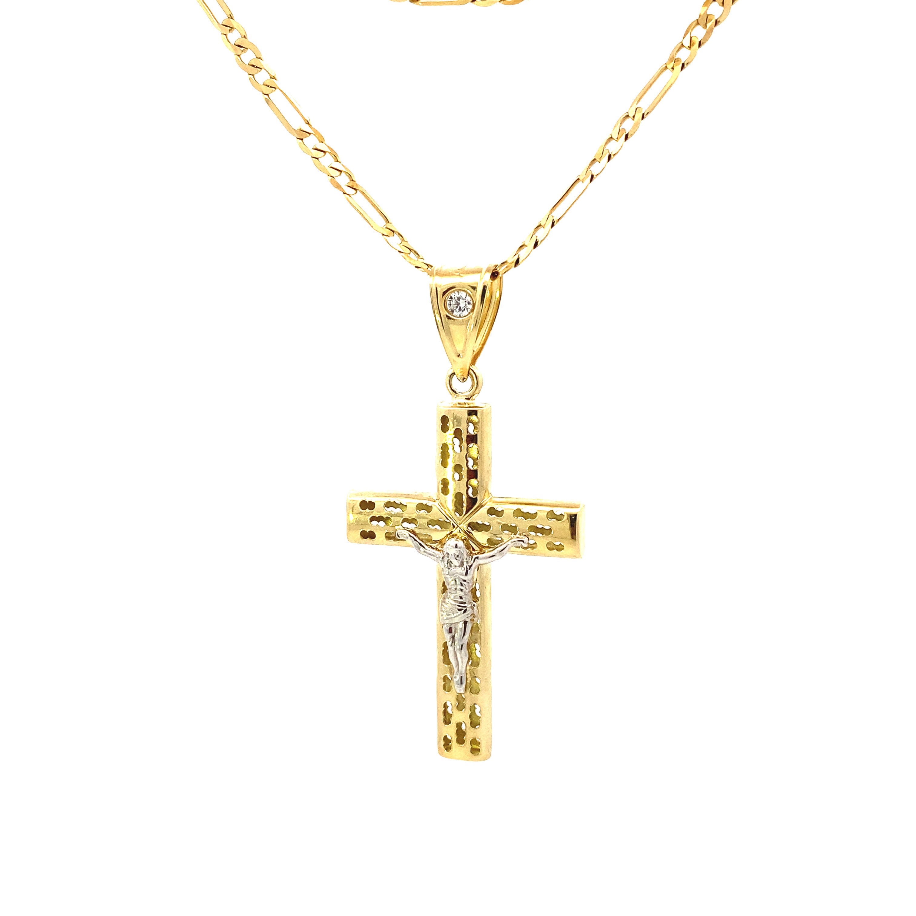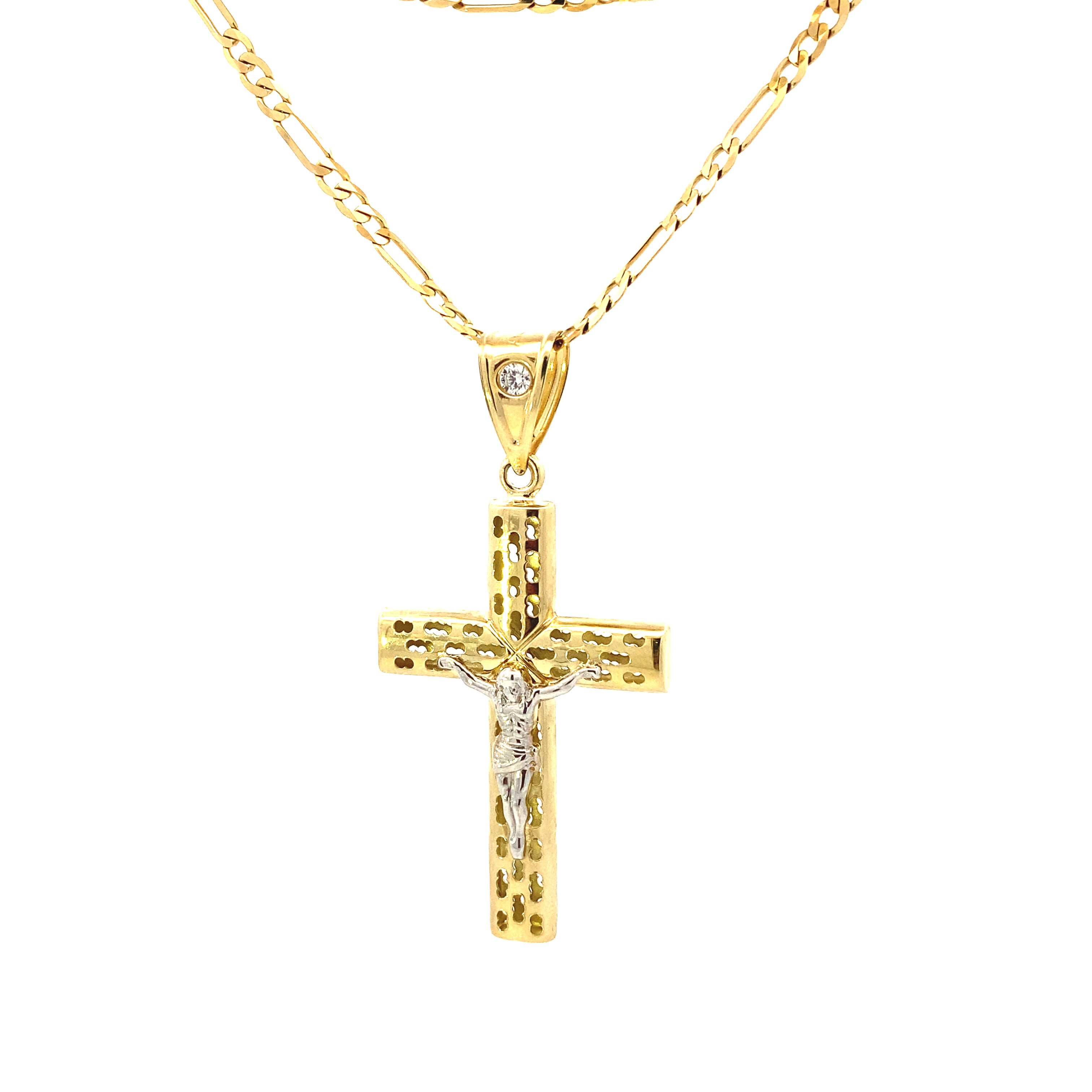 Dotted Cross Jesus Pendant 10K Gold