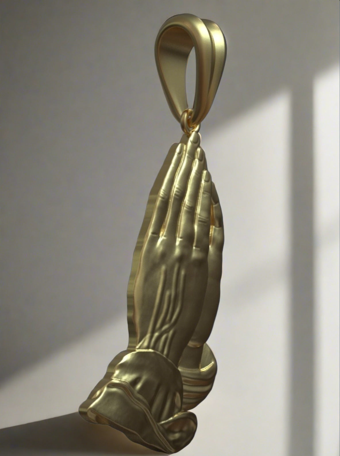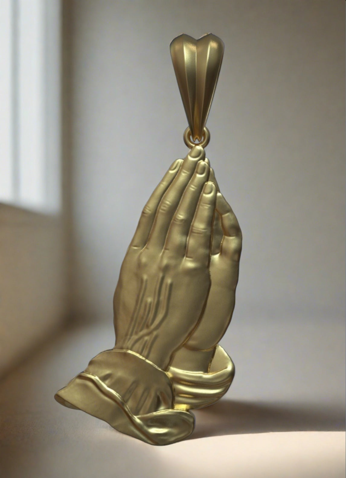 Elevate your style and spirituality with our 14K Praying Hands Gold Pendant. Crafted with intricate detail, this pendant serves as a powerful reminder of your faith. Its shining gold finish adds a touch of elegance to any outfit. Perfect for meaningful gifts or personal use.