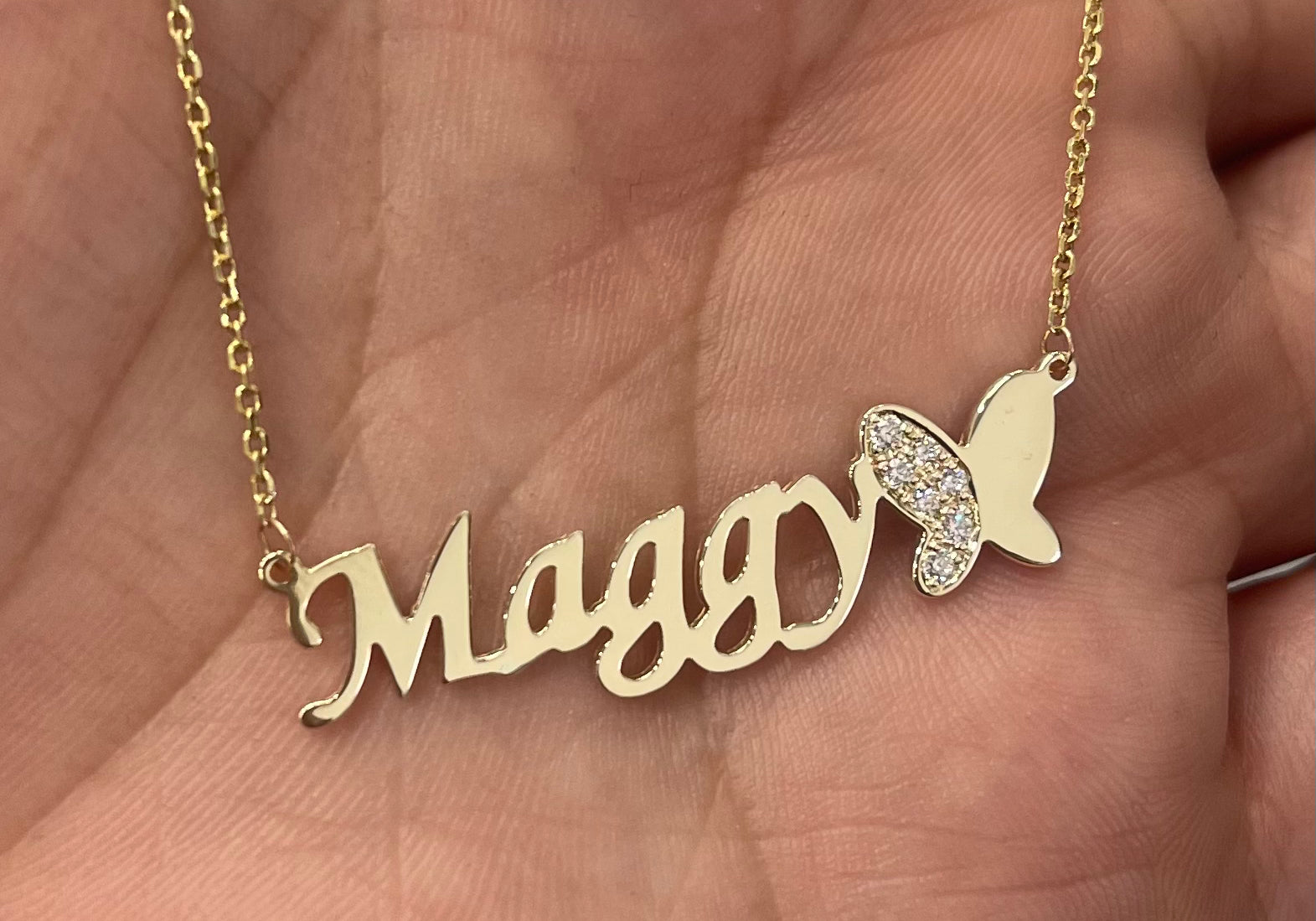 Butterfly Diamond Name Necklace Solid Gold