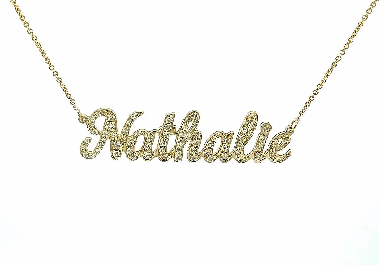 Pave Diamond Name Necklace Solid Gold