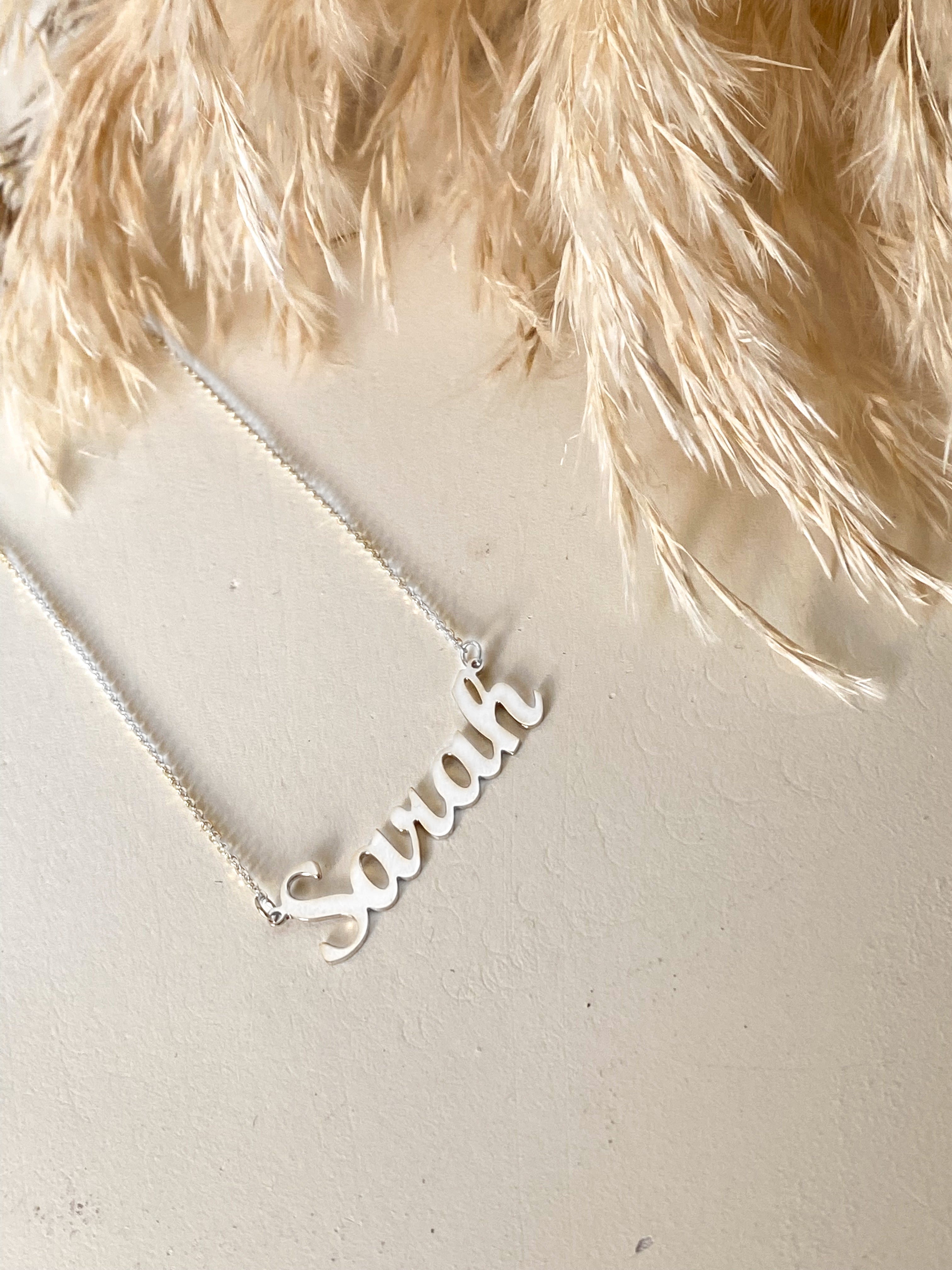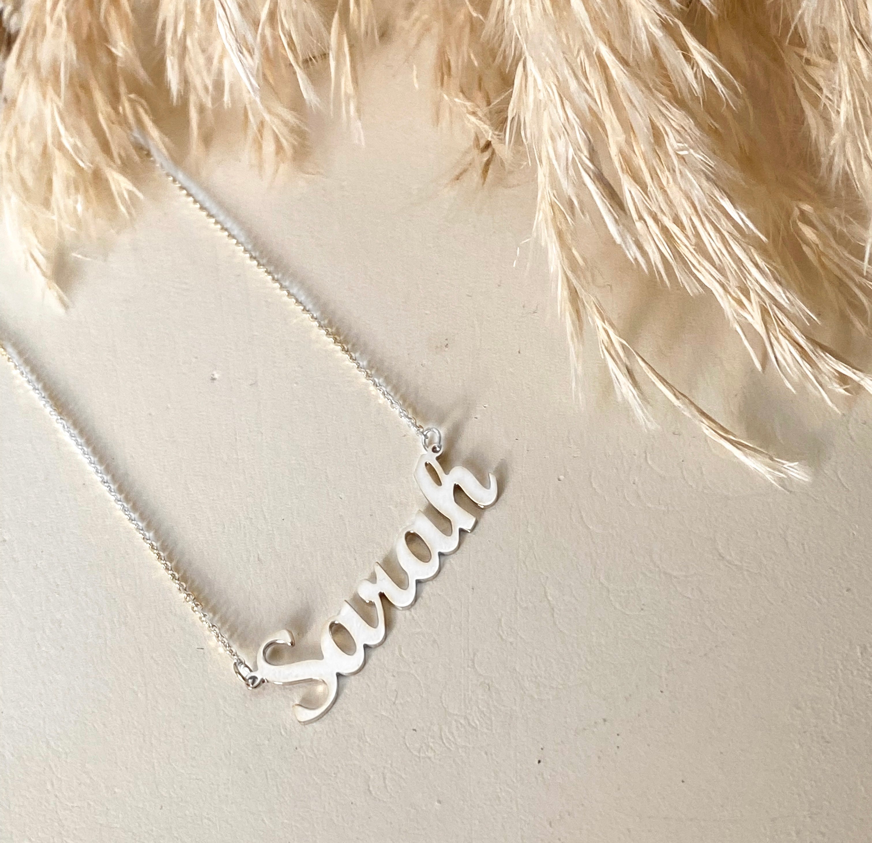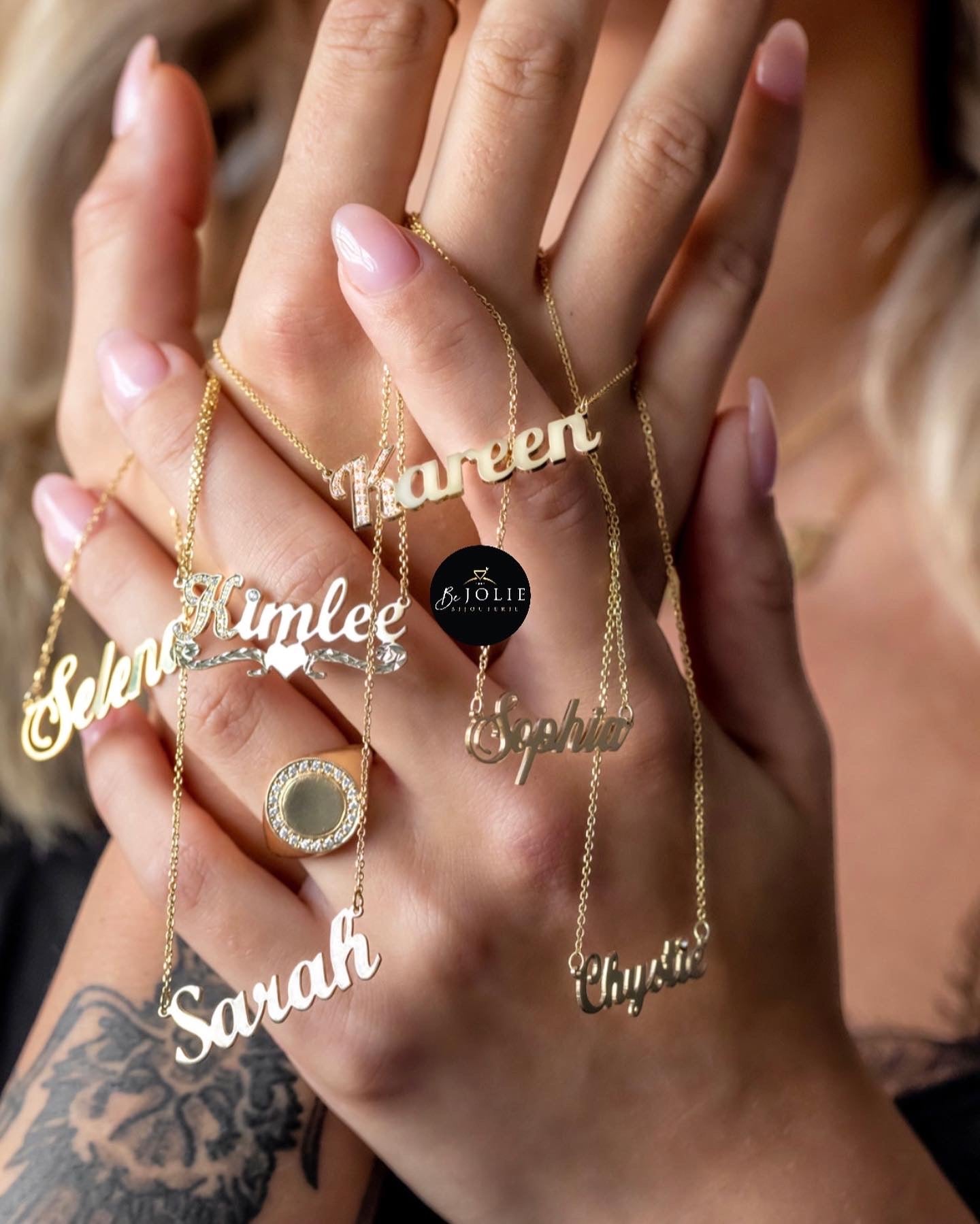 Be Jolie; Be Pretty, our name necklace is the perfect way personalize your jewelry and make it unique to you. By having your name or a special word on a necklace, it can add an extra special touch to your style and allow you to express yourself in a meaningful way. The option to choose from sterling silver to gold plated and chain lengths gives you the freedom to create a piece that perfectly fits your taste and preference
