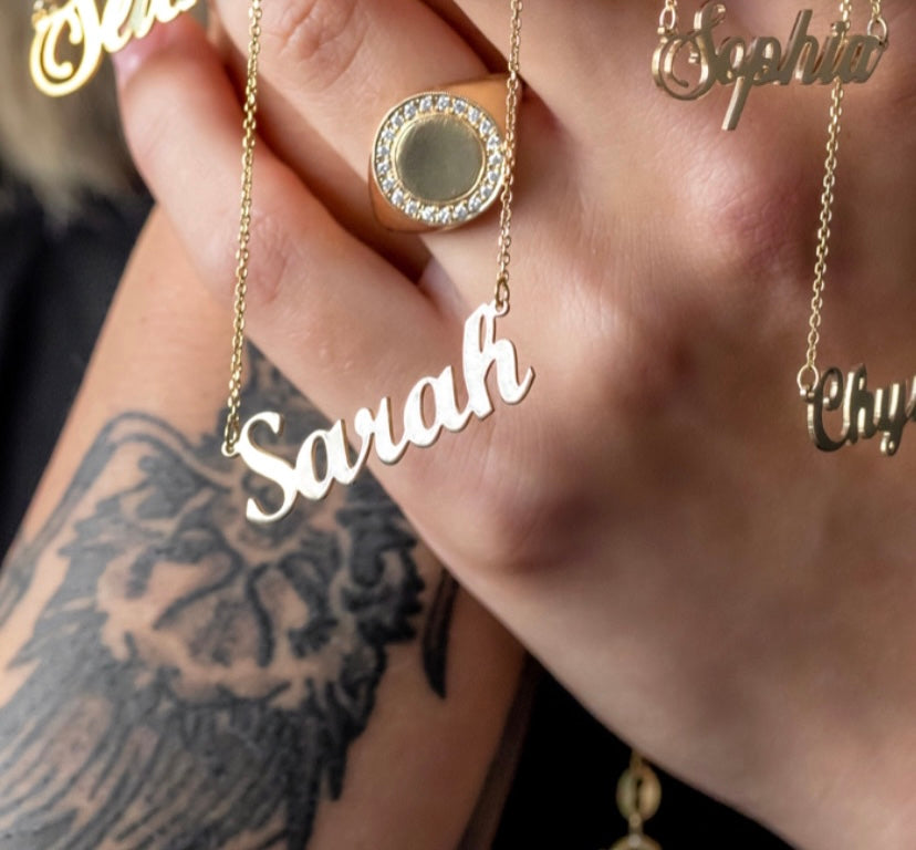 Yes, we specialize in personalized jewelry, including name necklaces and custom engagement rings. You can customize pieces with specific names, initials, or designs to create a unique item.