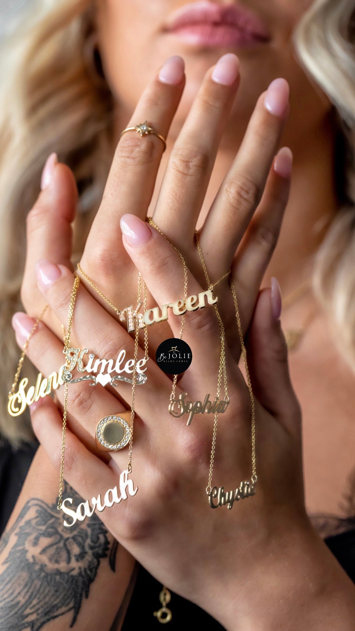 Be Jolie; Be Pretty, our name necklace is the perfect way personalize your jewelry and make it unique to you. By having your name or a special word on a necklace, it can add an extra special touch to your style and allow you to express yourself in a meaningful way. The option to choose from sterling silver to gold plated and chain lengths gives you the freedom to create a piece that perfectly fits your taste and preference
