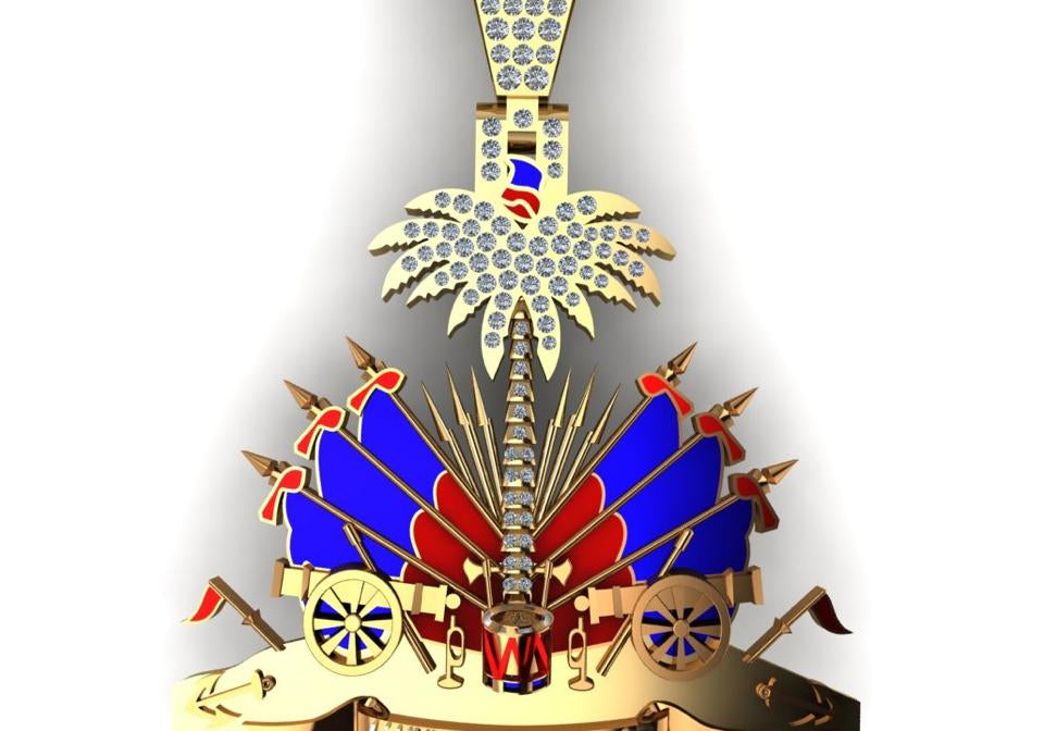 Haiti Flag Gold Pendant Diamonds