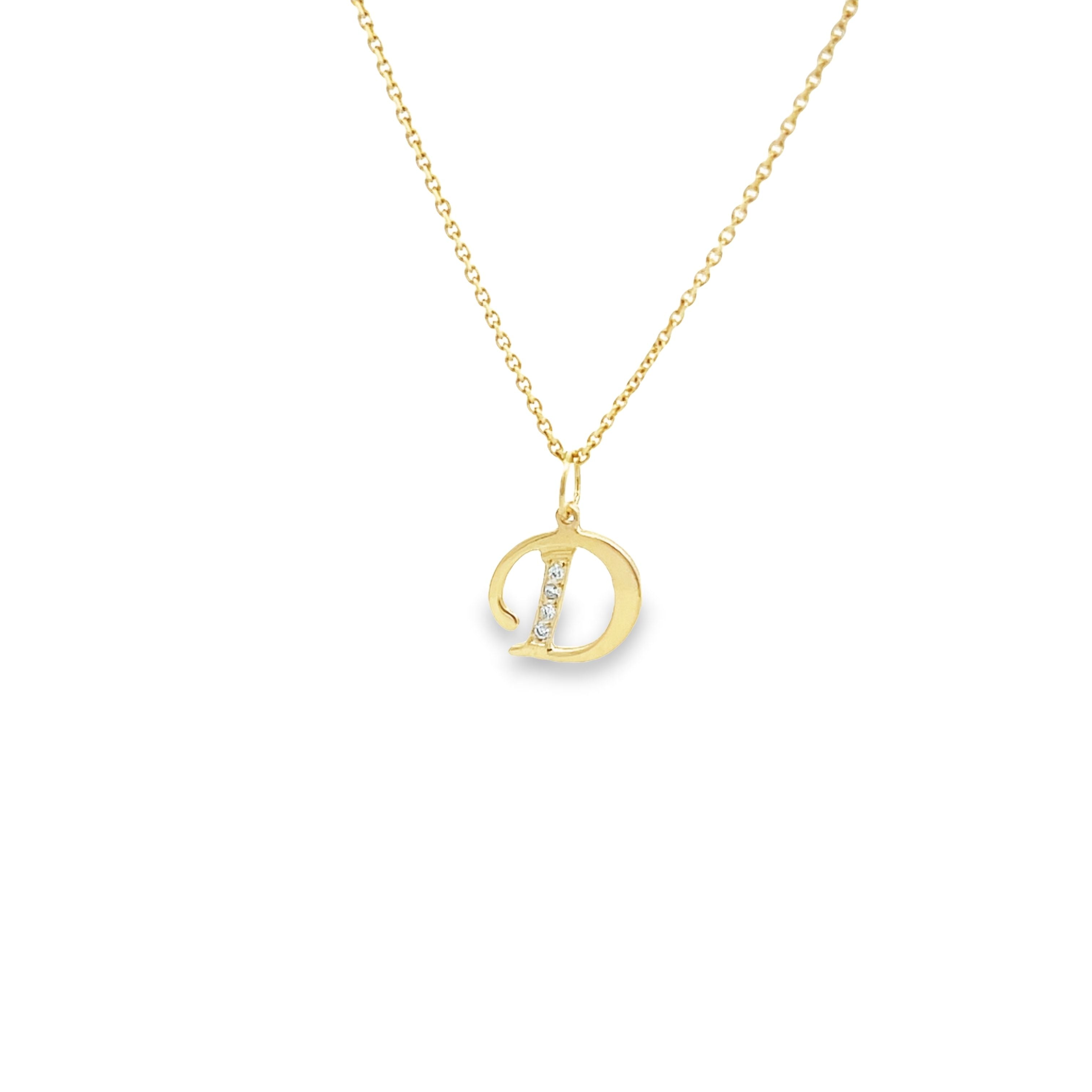 Make a statement with this gorgeous dainty 10K gold initial pendant. The sleek design is adorned with 4 sparkling diamonds to add extra sparkle and shine. Your unique letter will be a beautiful addition to any look.