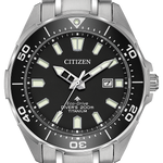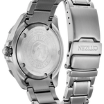 CITIZEN®'s PROMASTER Diver is the perfect ISO compliant timepiece for the bold seeking the thrill of a deep-sea challenge. Built with diving in mind, this timepiece is tough and durable. With Eco-Drive technology, it is powered by light and never needs a battery, so you'll never need to open your caseback or compromise your dive again. Shown here in a Super Titanium™ case and bracelet, the PROMASTER Diver features a one-way rotating elapsed-time bezel, a screw-back case and screw-down crown, and an anti-reflective crystal. Water resistant up to 200 metres.