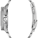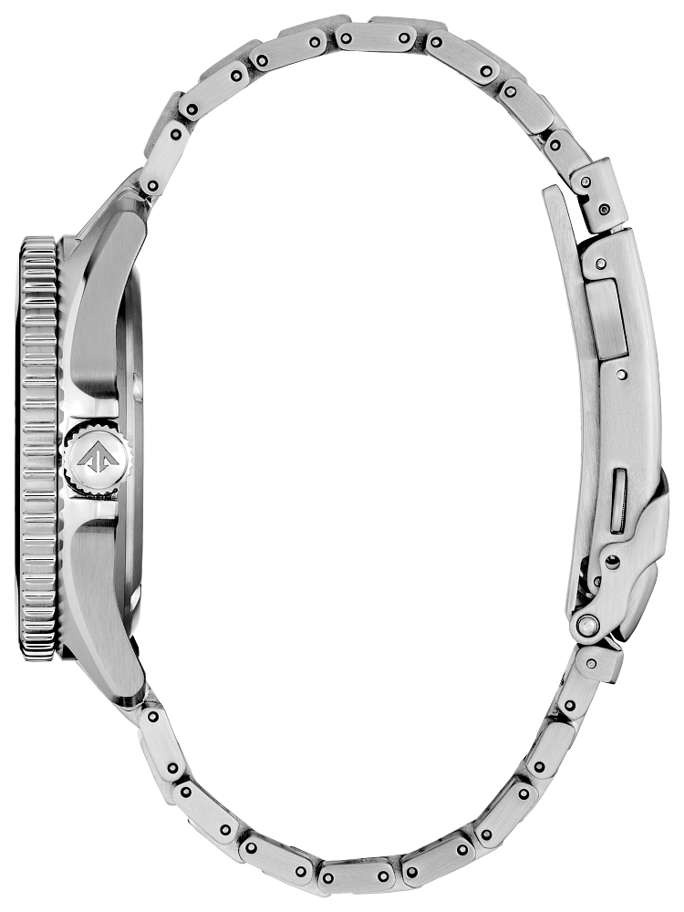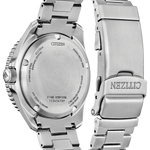 Good looks meet dive-ready functionality in the latest Promaster Dive timepiece. Comfortable on the wrist at 41mm in gold-tone stainless steel, this handsome tool watch is secured to the wrist via a matching triple-link bracelet and stylised in wear via a green unidirectional bezel. The gradient green dial hosts the highly visible applied hour markers, with plenty of lume and a unique handset easily showcases the time no matter the lighting conditions. A subtle date window at the 3 o'clock position provides daily utility. Featuring our Eco-Drive technology – sustainably powered by light, any light. Never needs a battery. This high-performance watch includes a wetsuit extender that doubles as a tool-less microadjust, is ISO compliant and water resistant up to 200 meters, and comes in an exclusive dive tank box. Calibre number E168.