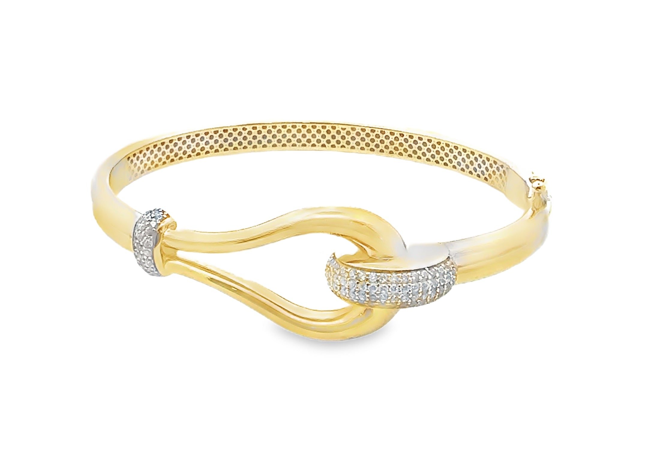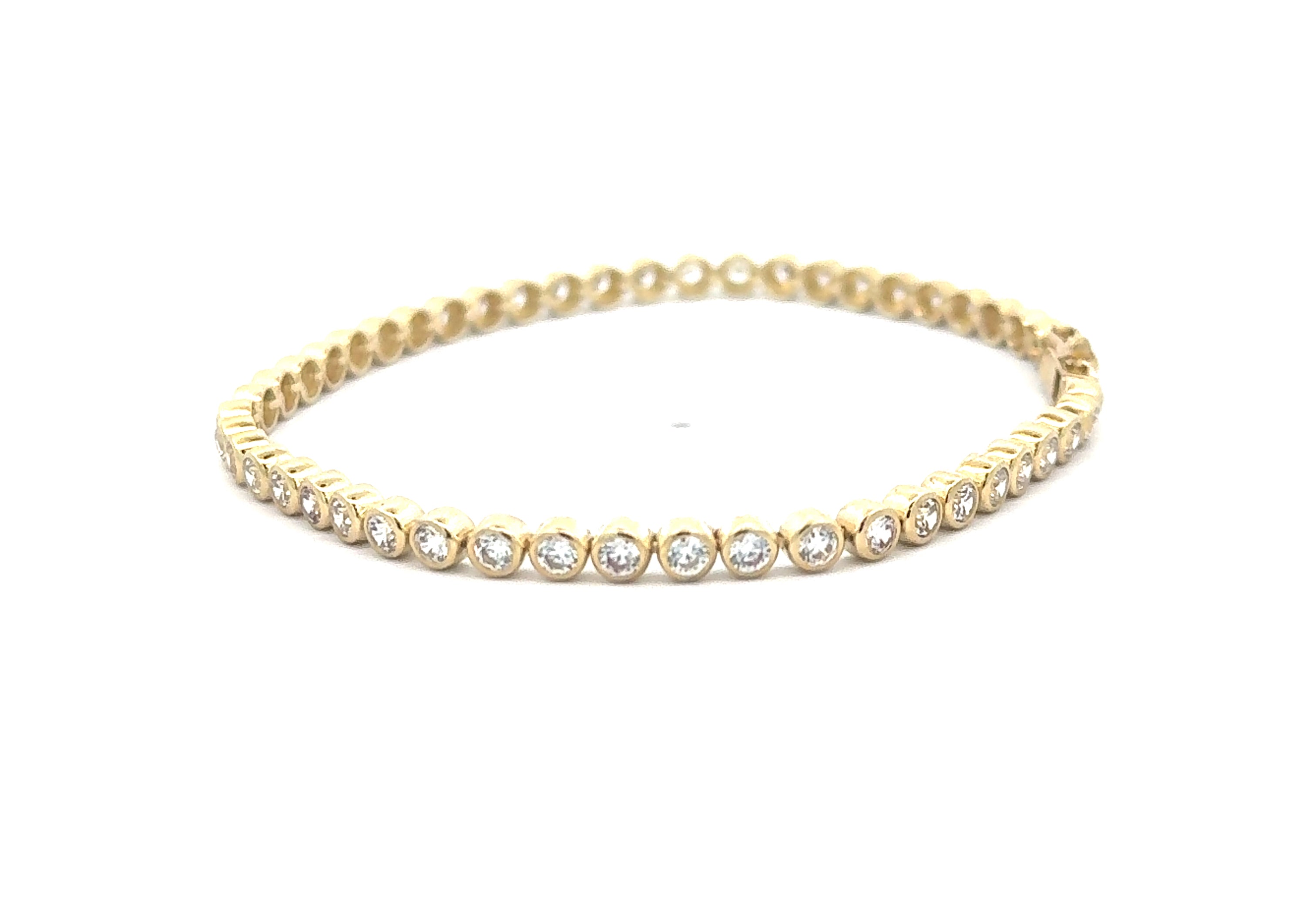Yellow Gold Bangle Adorned with Round Brilliant Diamonds- 10K