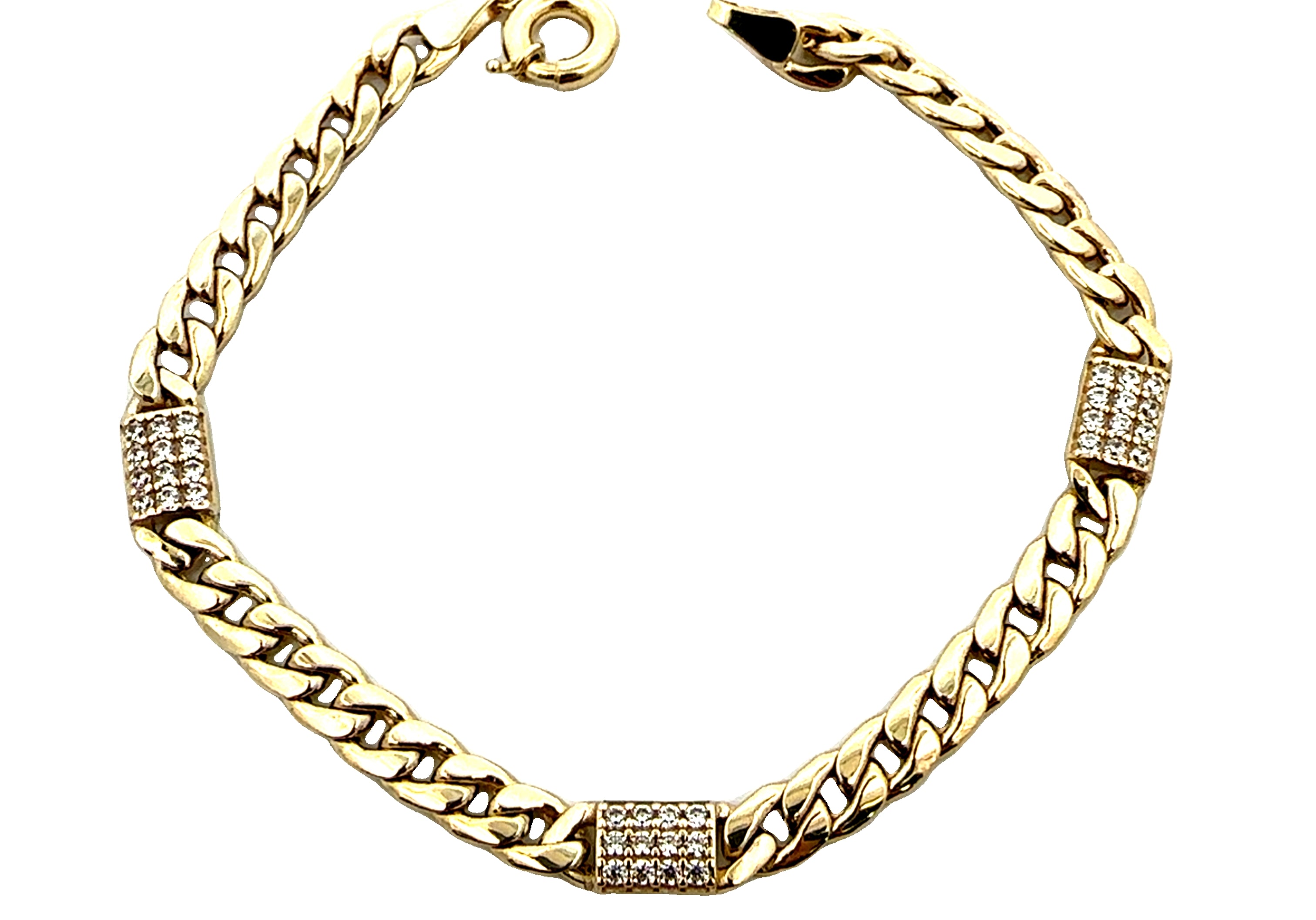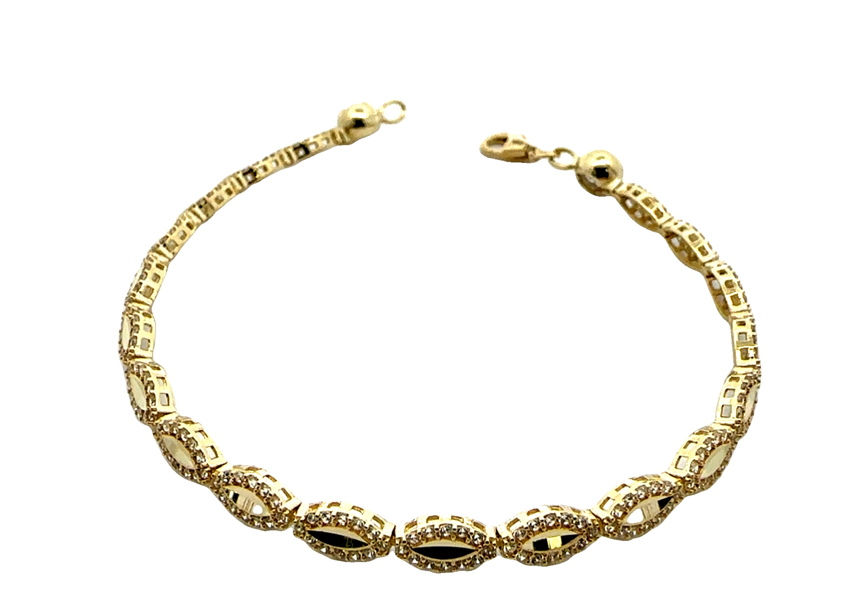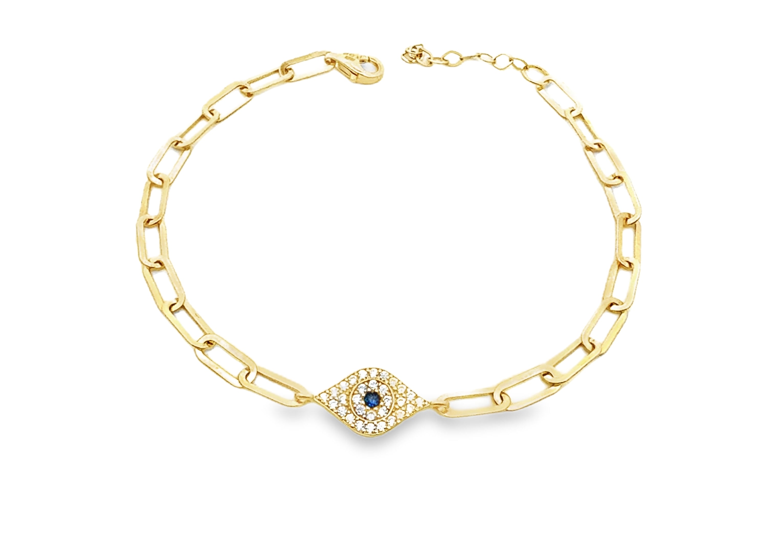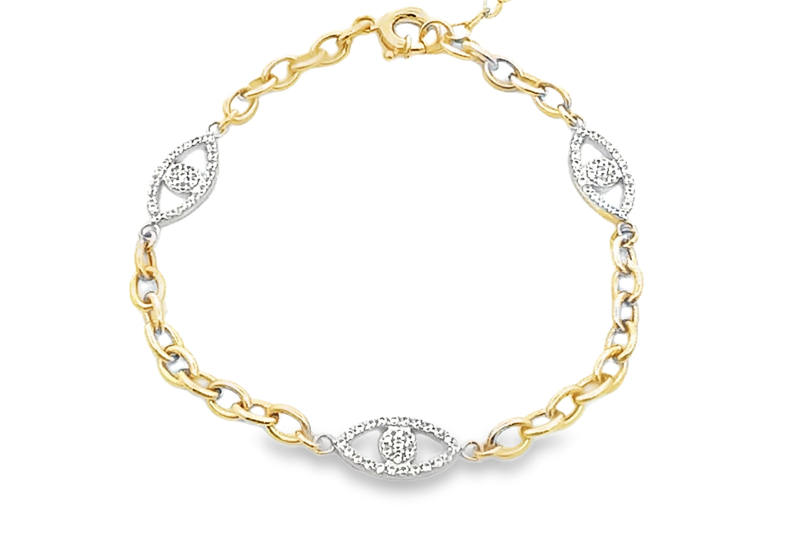 10K Gold Link Evil Eye CZ Bracelet- Ladies