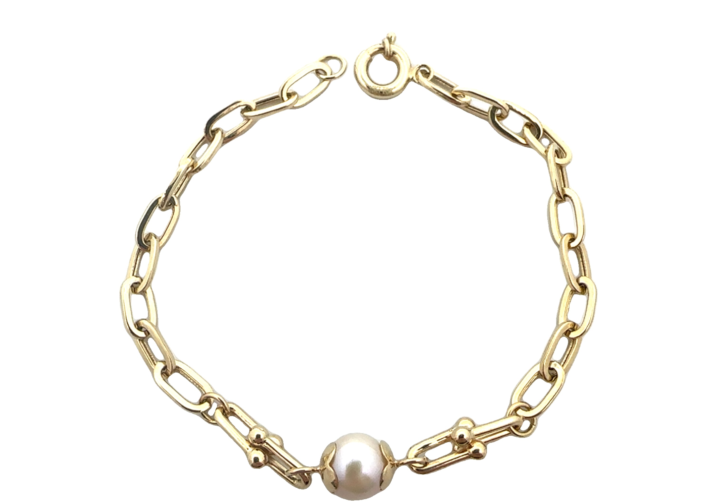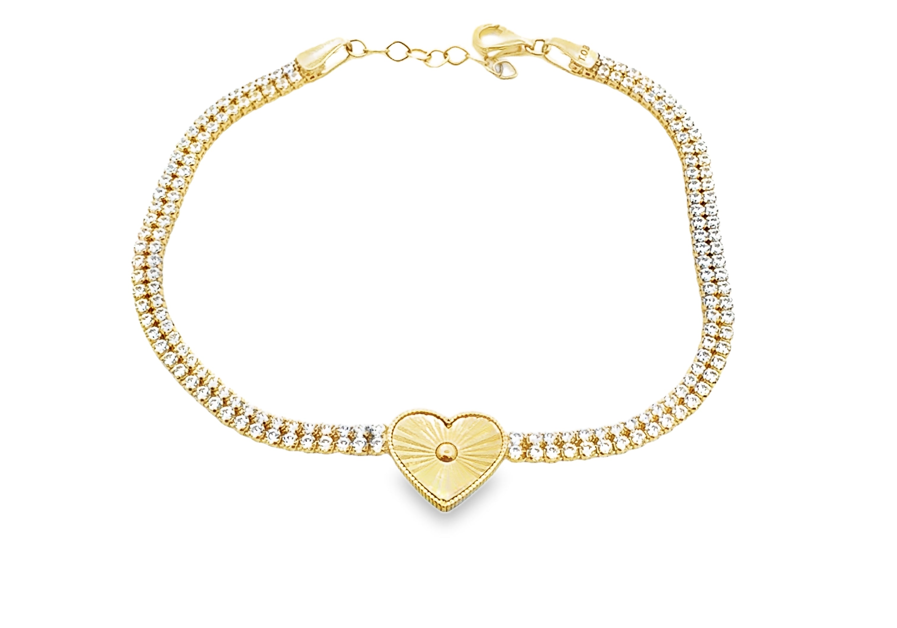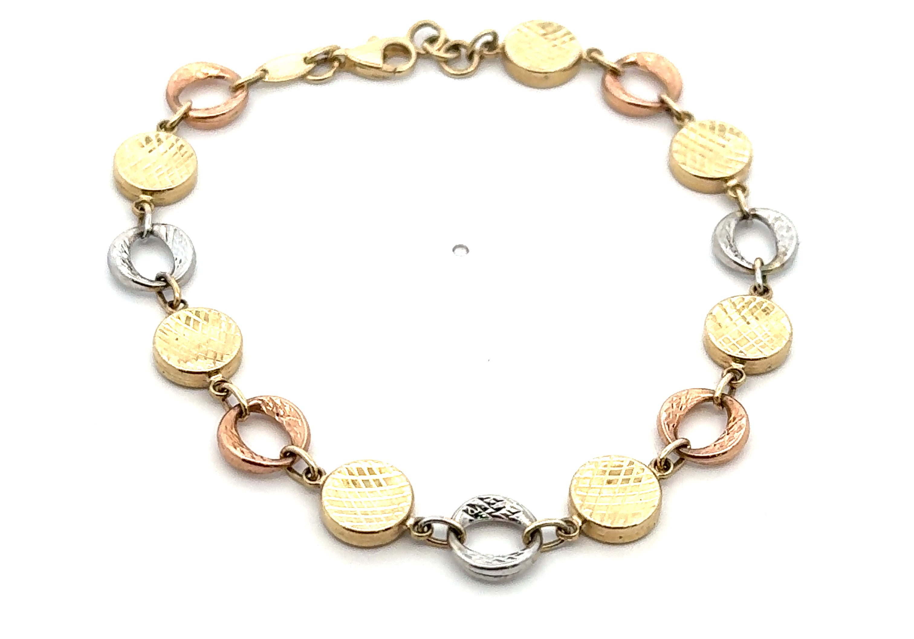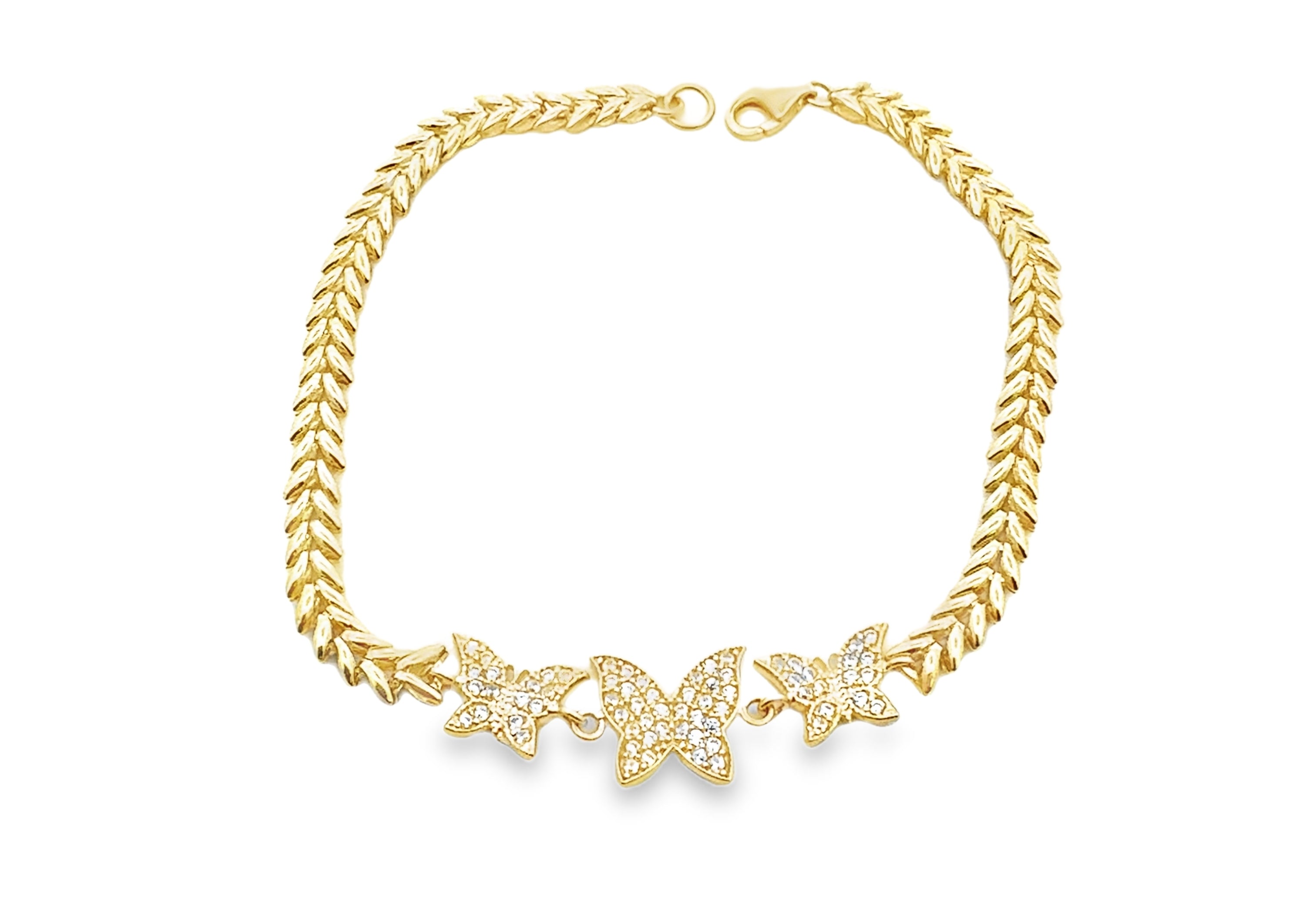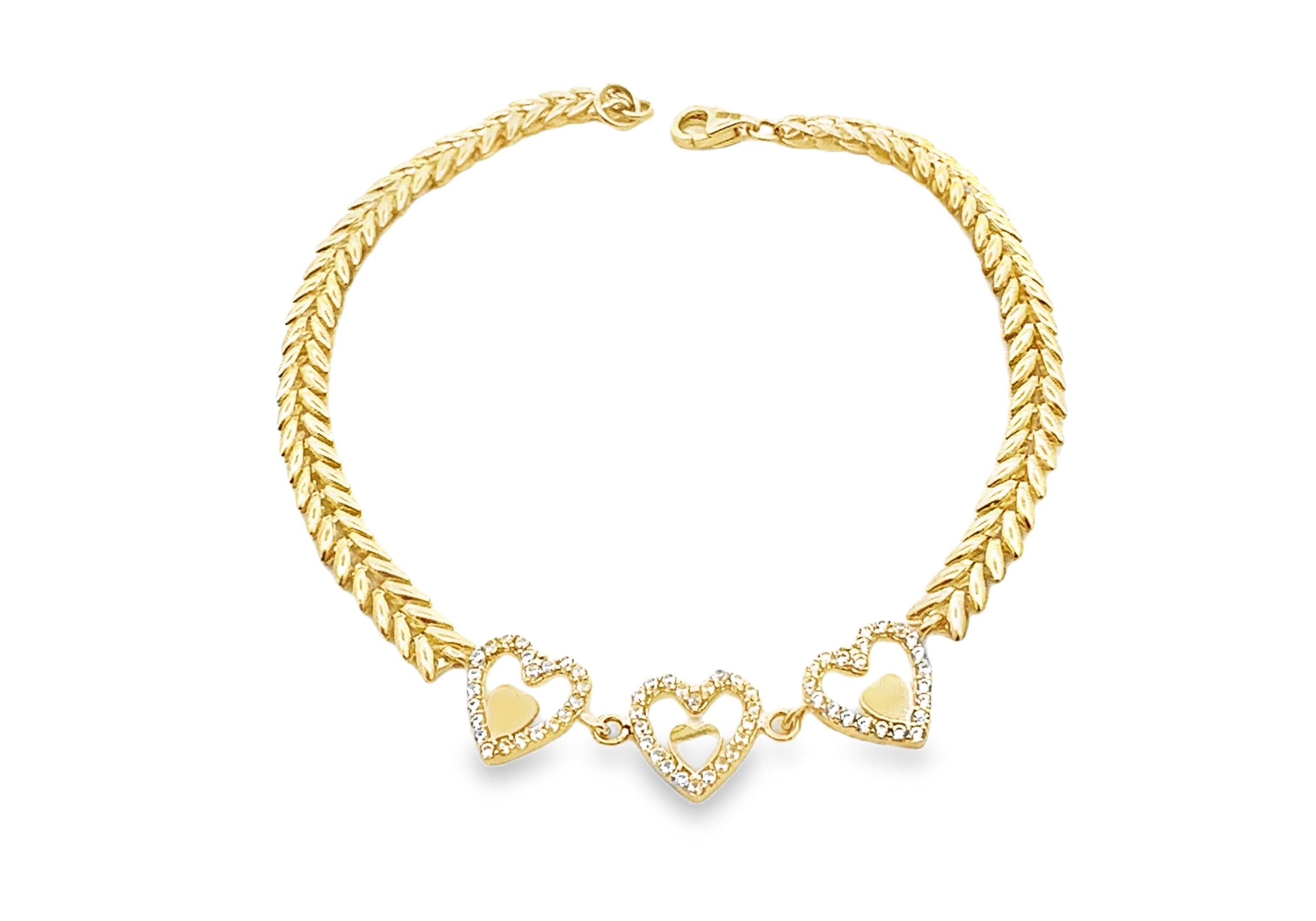 10K Gold Link Evil Eye CZ Bracelet- Ladies