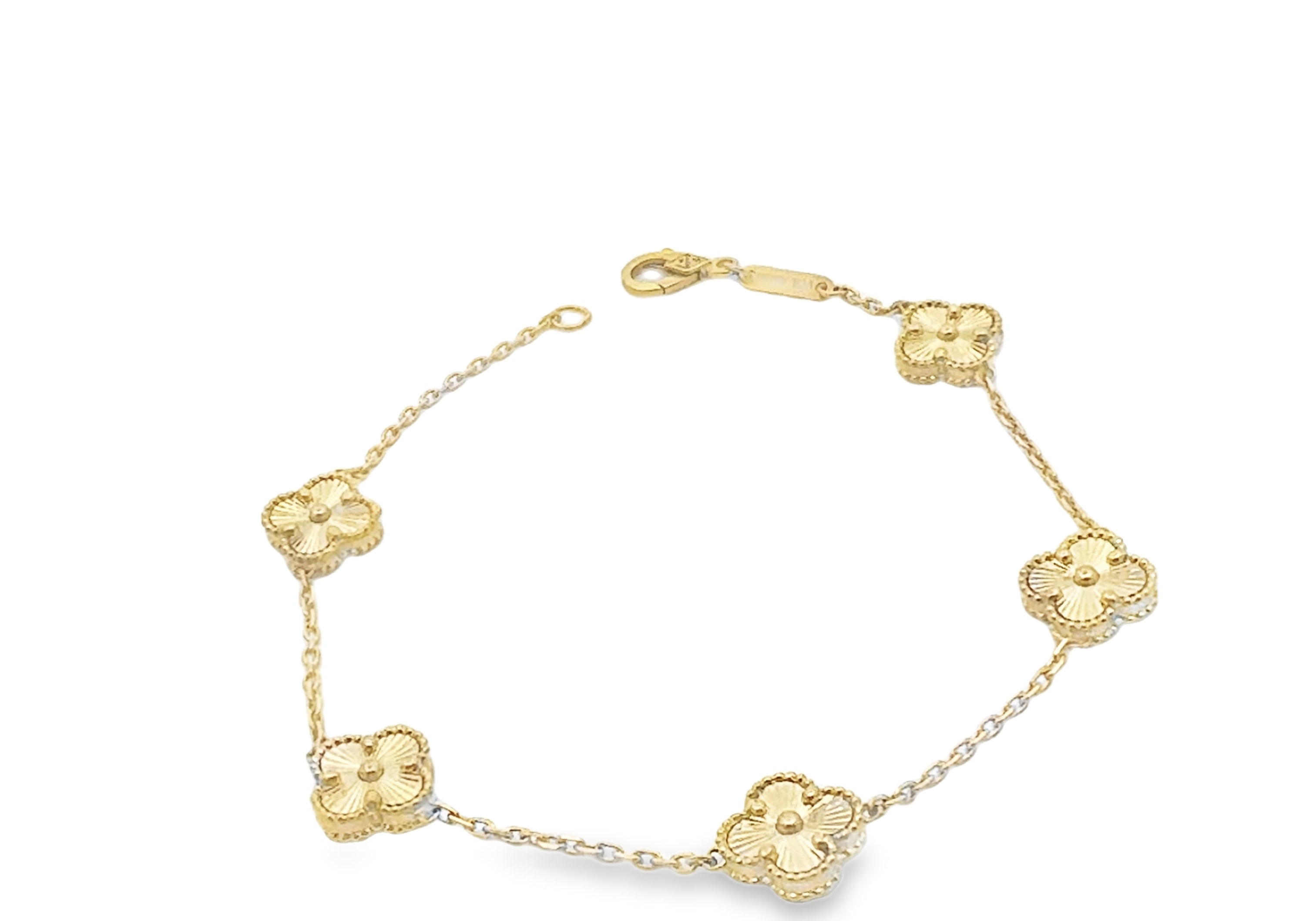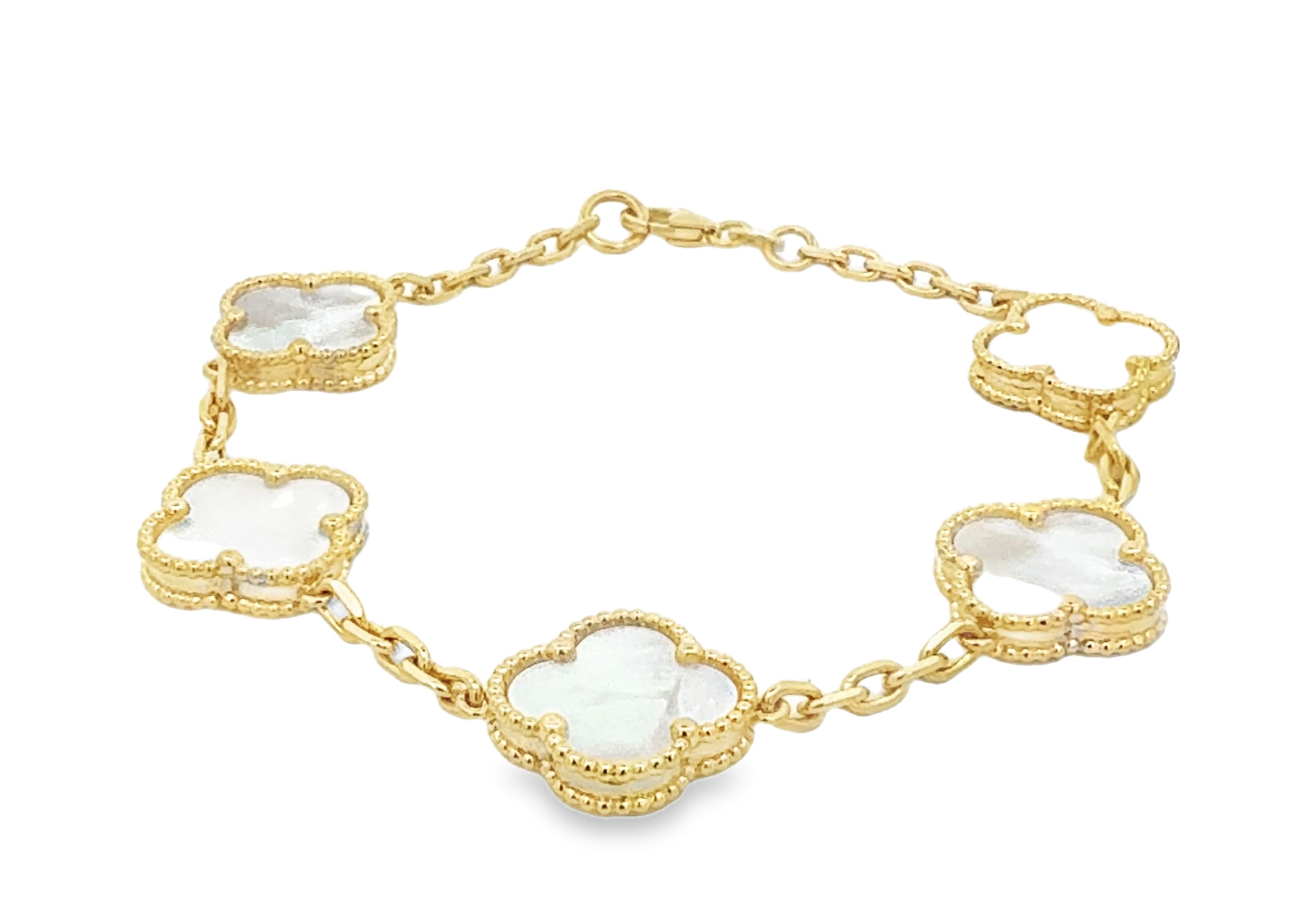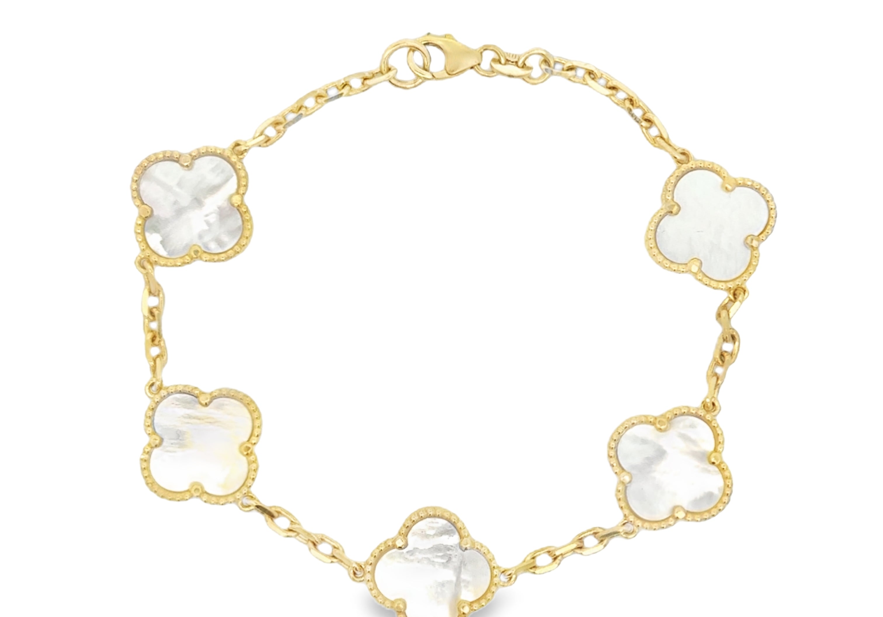 10K Gold Large White Mother of Pearl Clover Bracelet