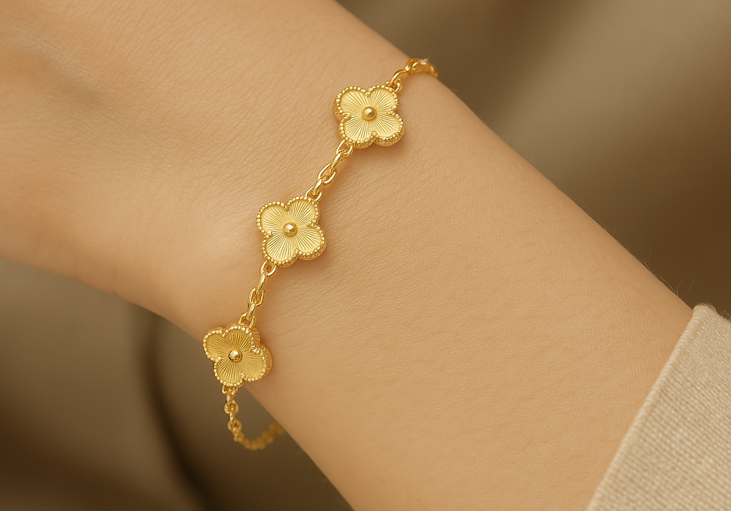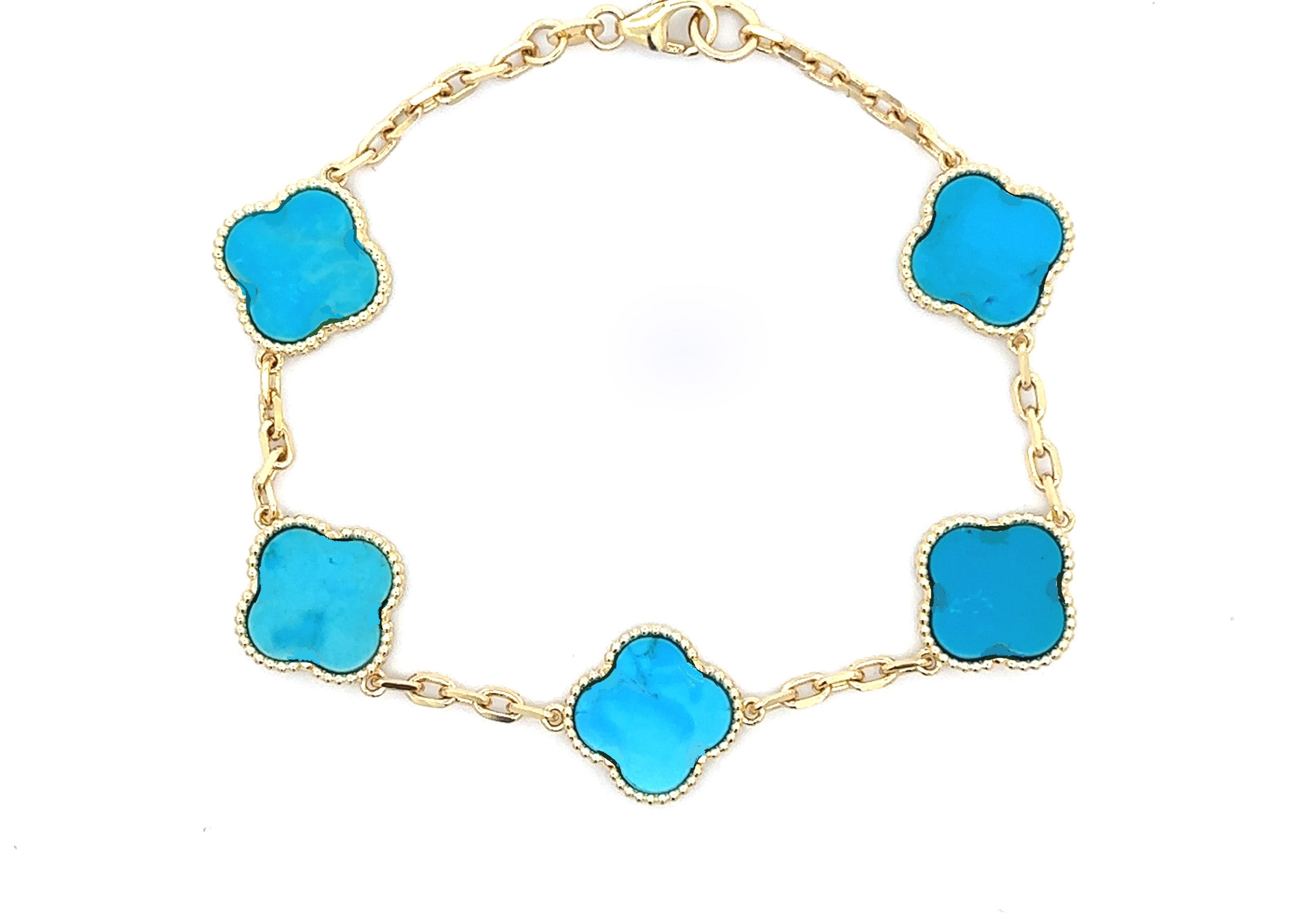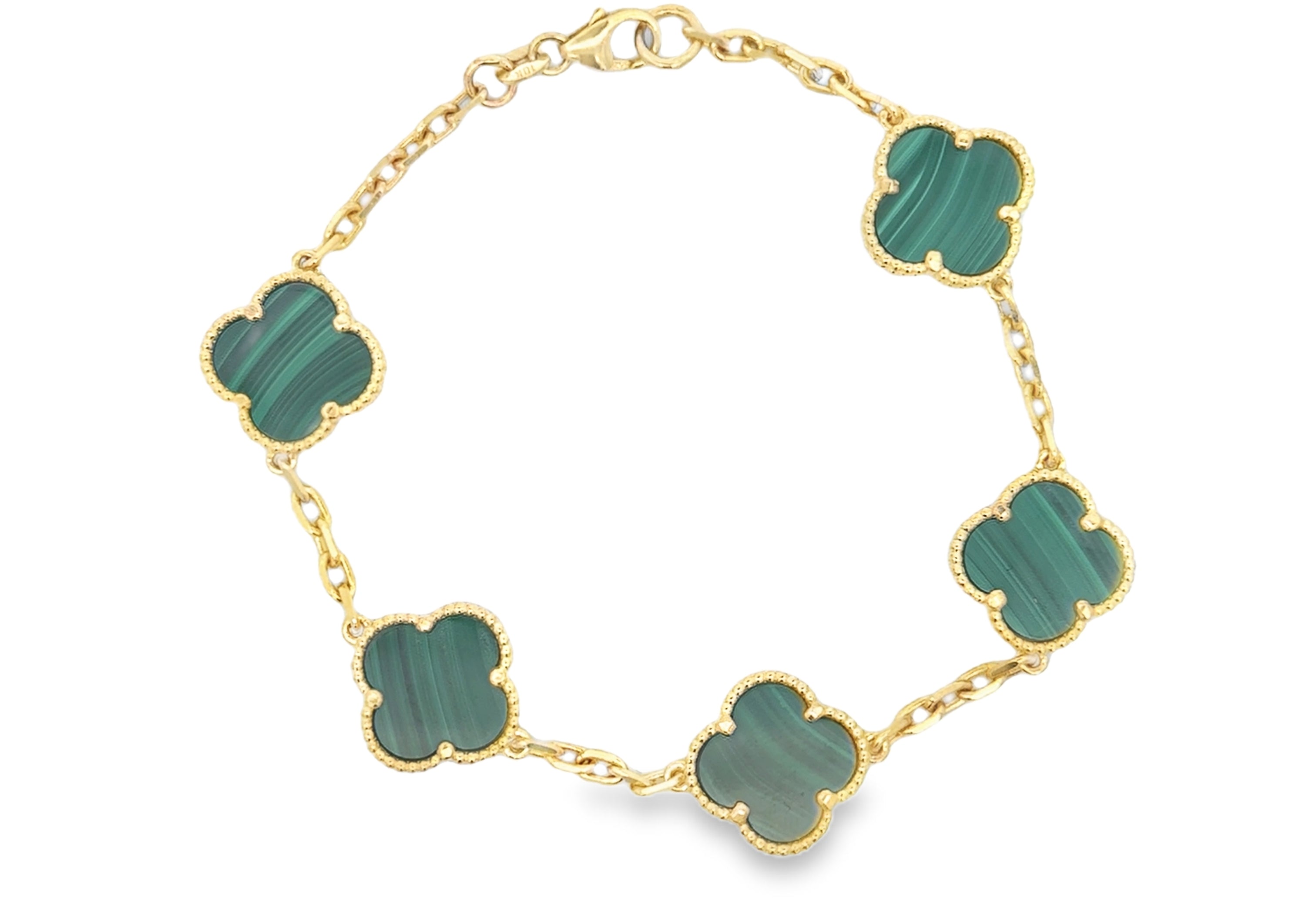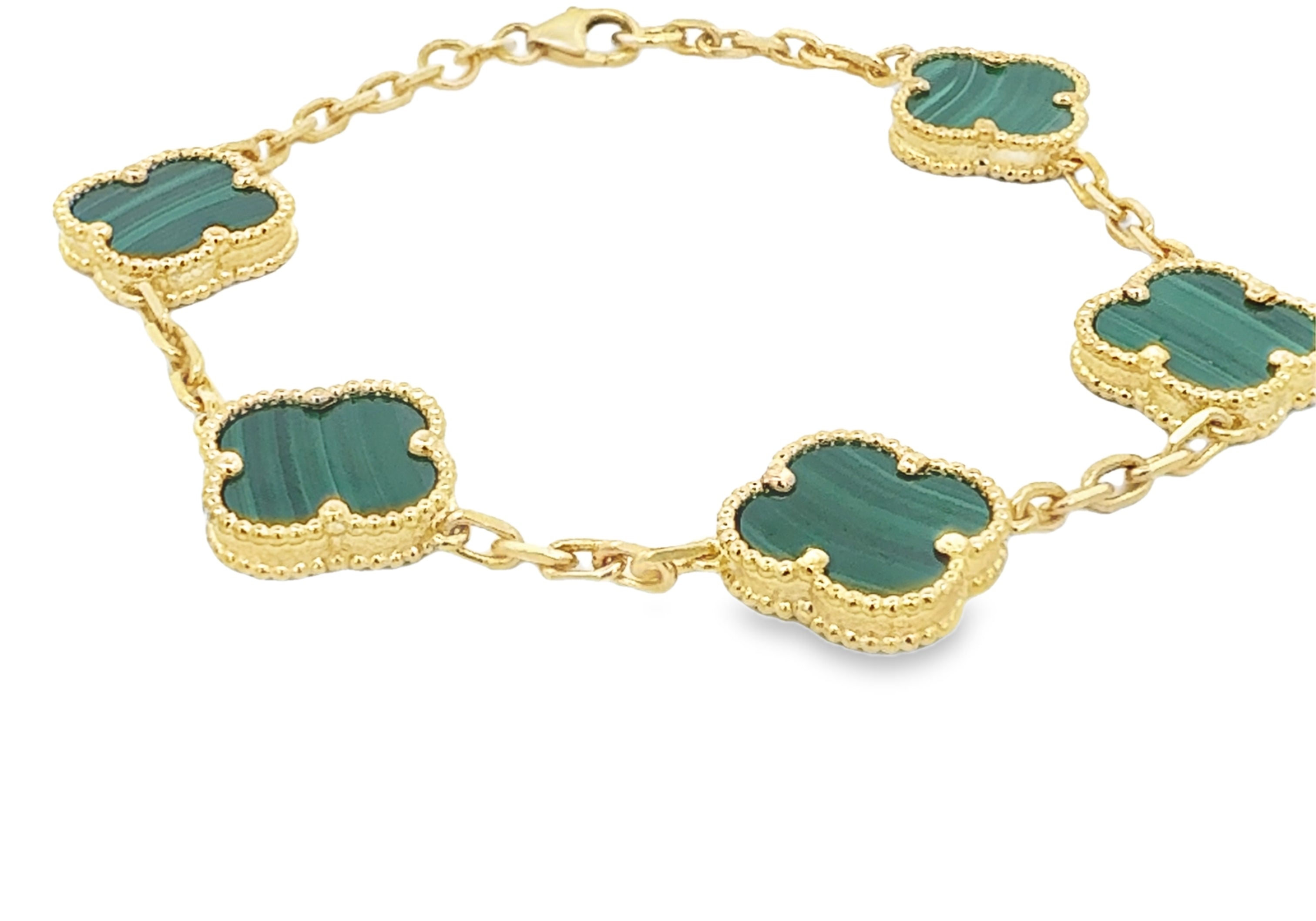 10K Gold Large White Mother of Pearl Clover Bracelet