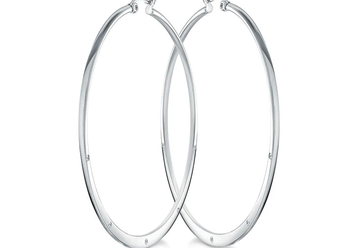 S.STEEL 60MM-GRADUATED WHITE-CZ FLAT-HOOP EARRINGS