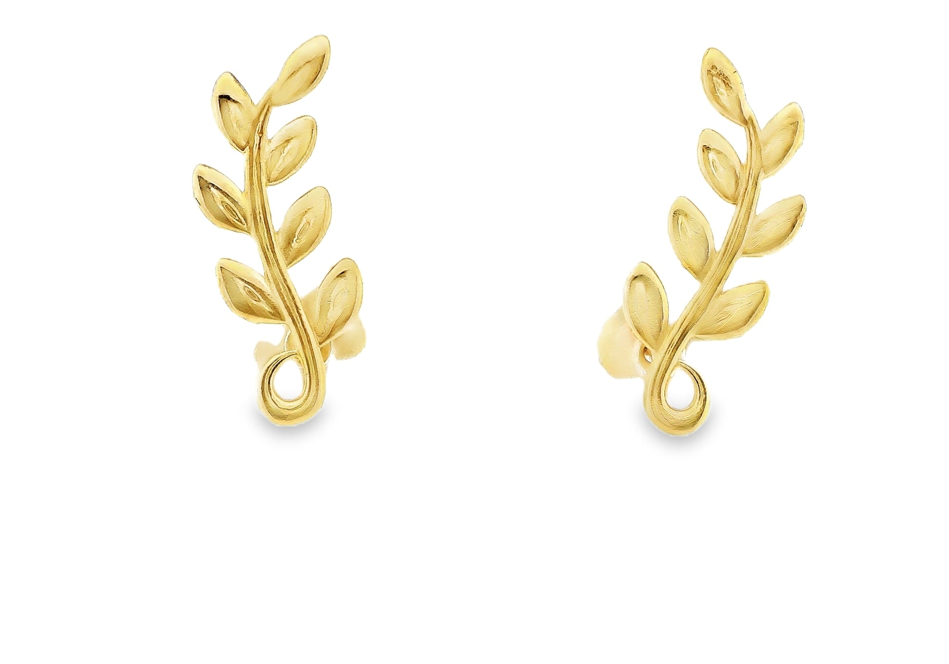 Olive Leaf Vertical Climber Earrings 18K Gold