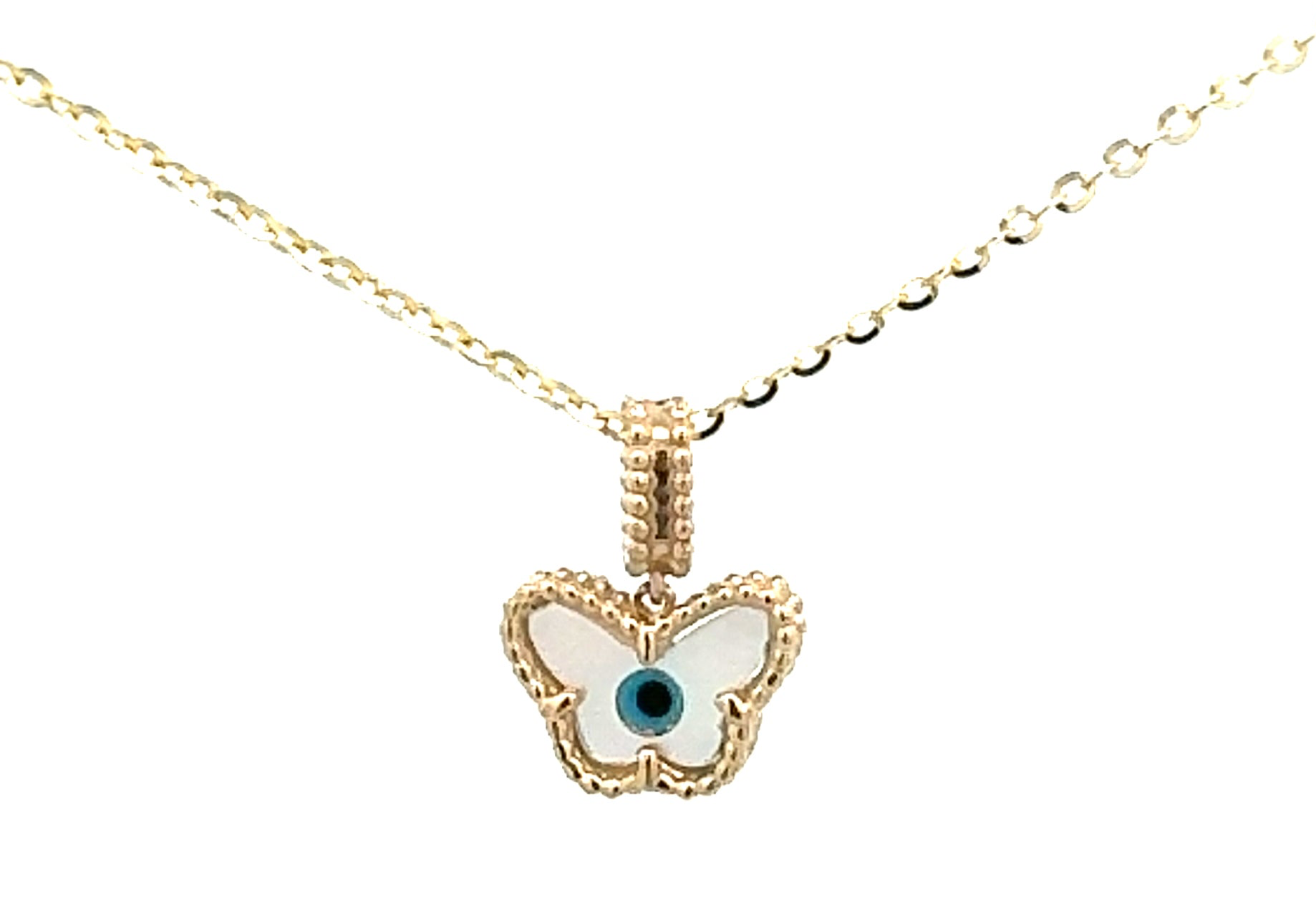 Butterfly Evil Eye Mother Of Pearl Necklace Gold