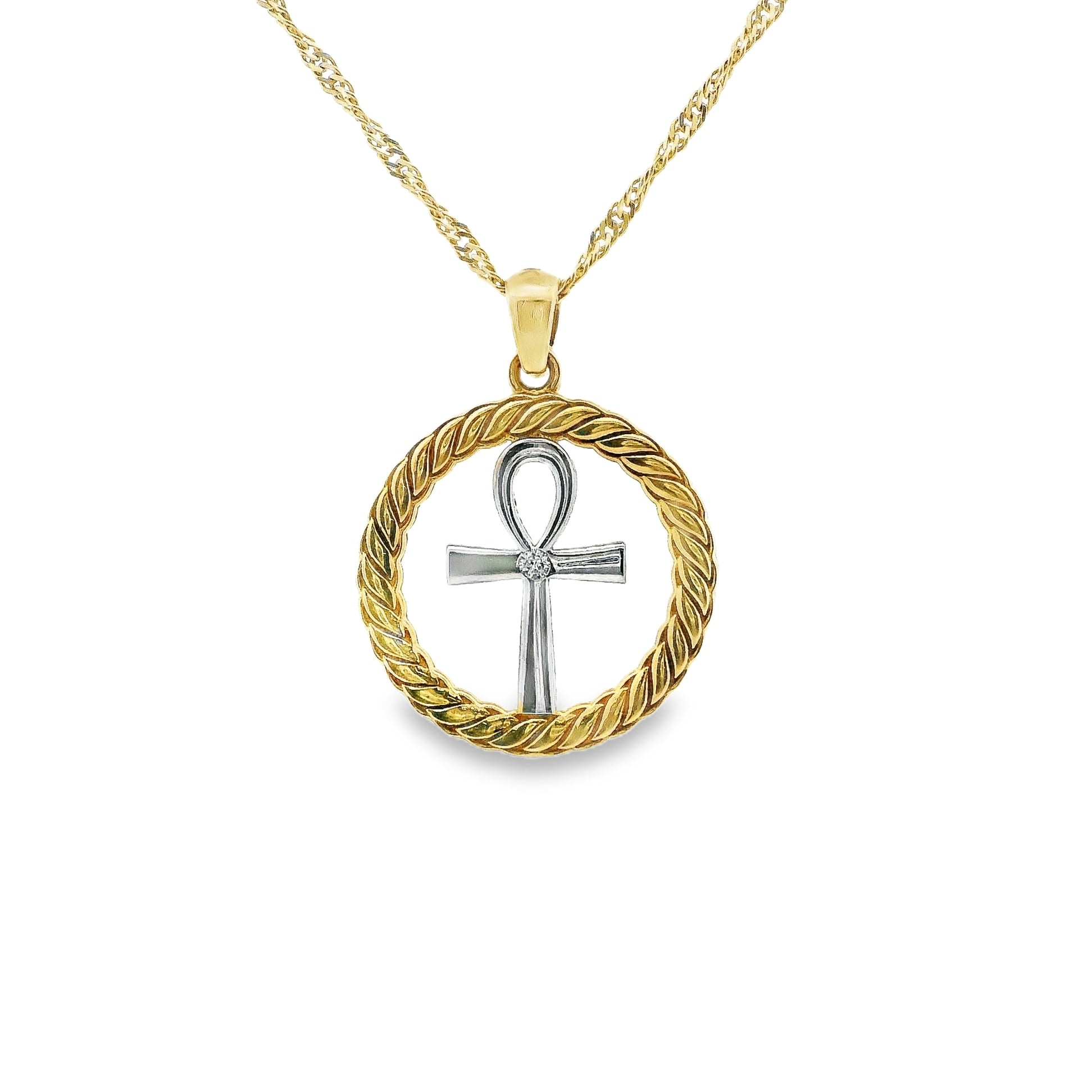 Ankh Cross Pendant Two-Tone 10K Gold -Ankra