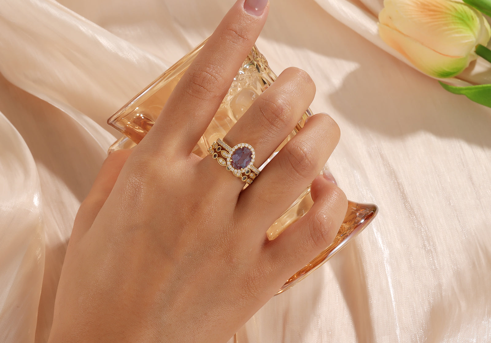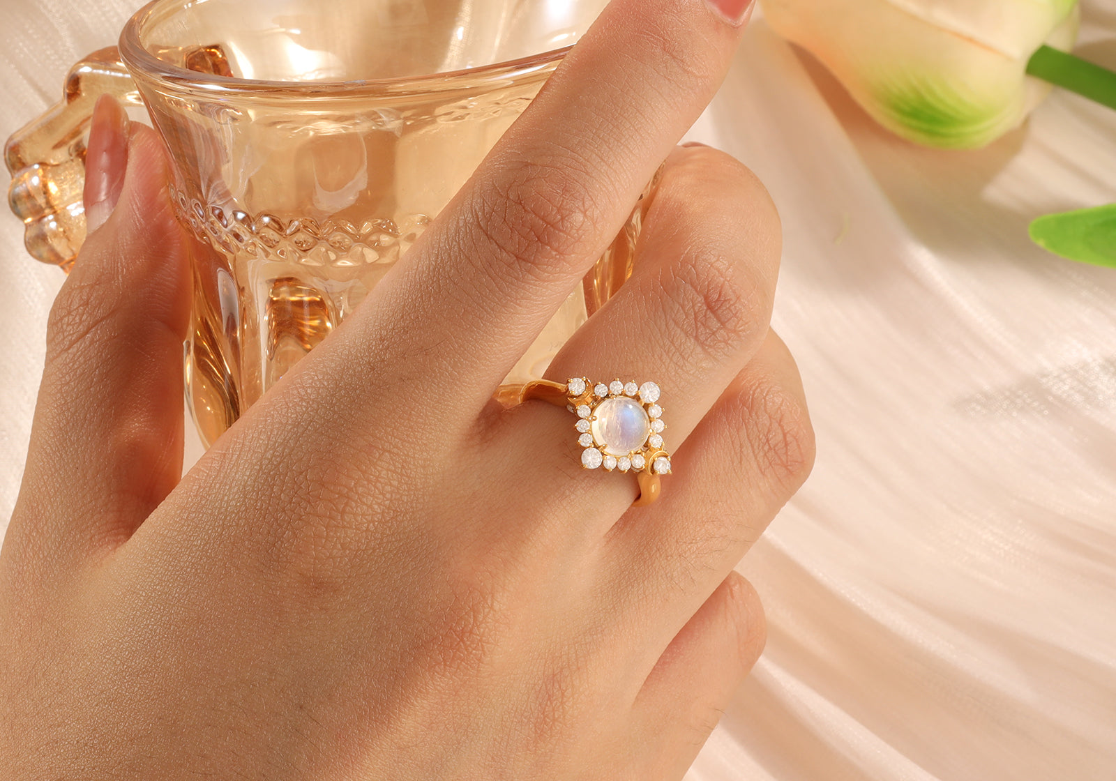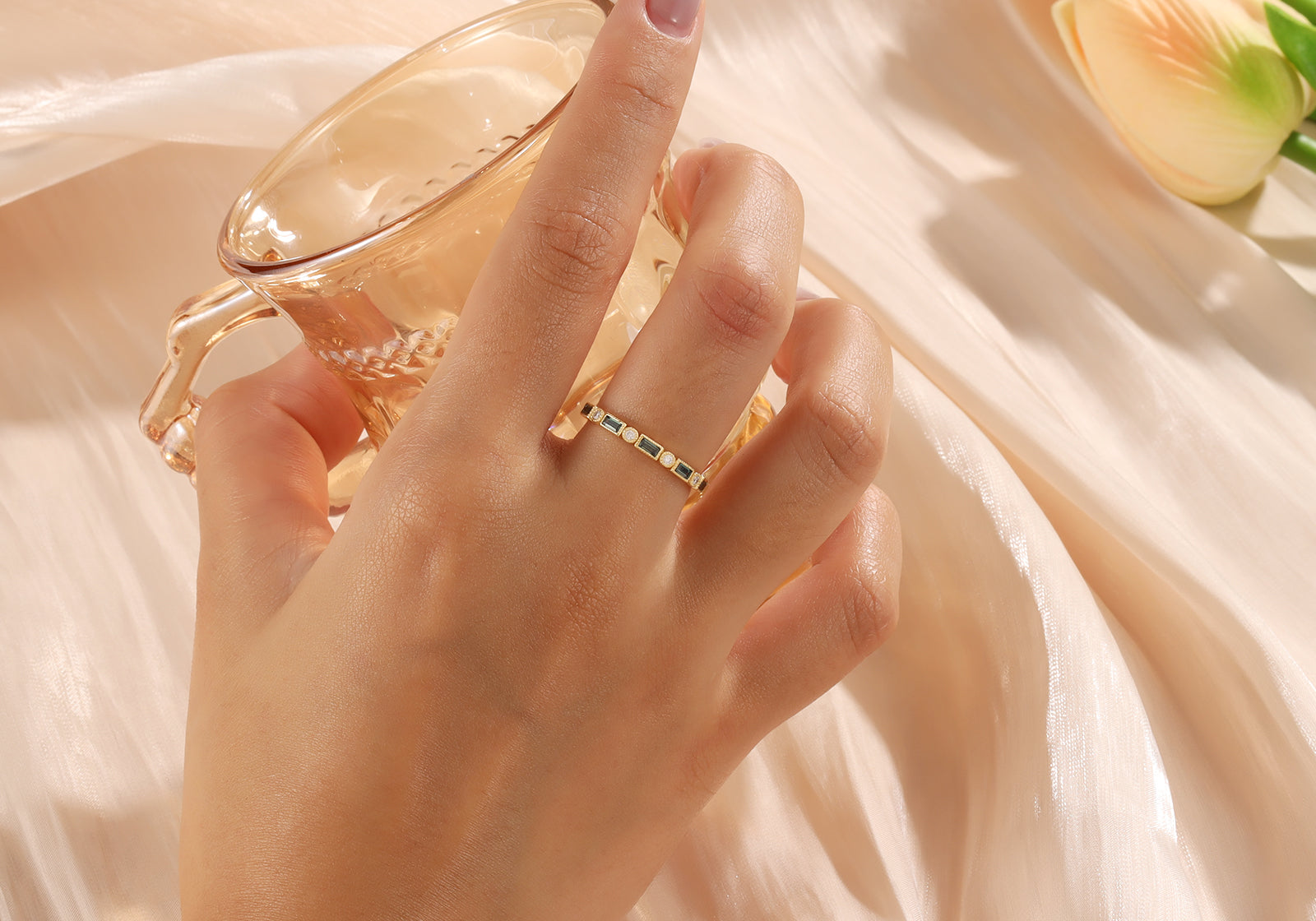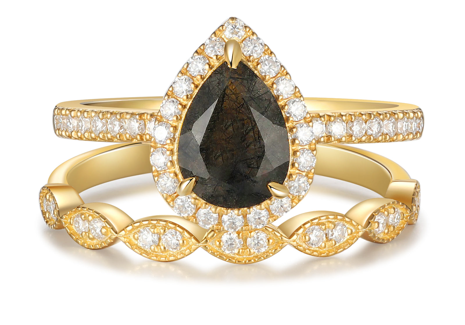 Natural Black Rutilated Quartz Ring 14 & 18K Gold